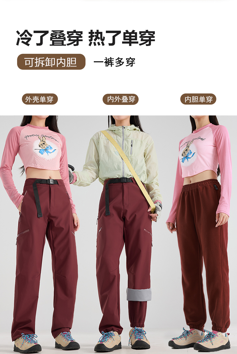 SIIJJEYY枝辑 男女同款户外三合一可拆卸双面摇粒绒内胆冲锋裤 单裤/内胆/3合1冲锋裤 8色可选