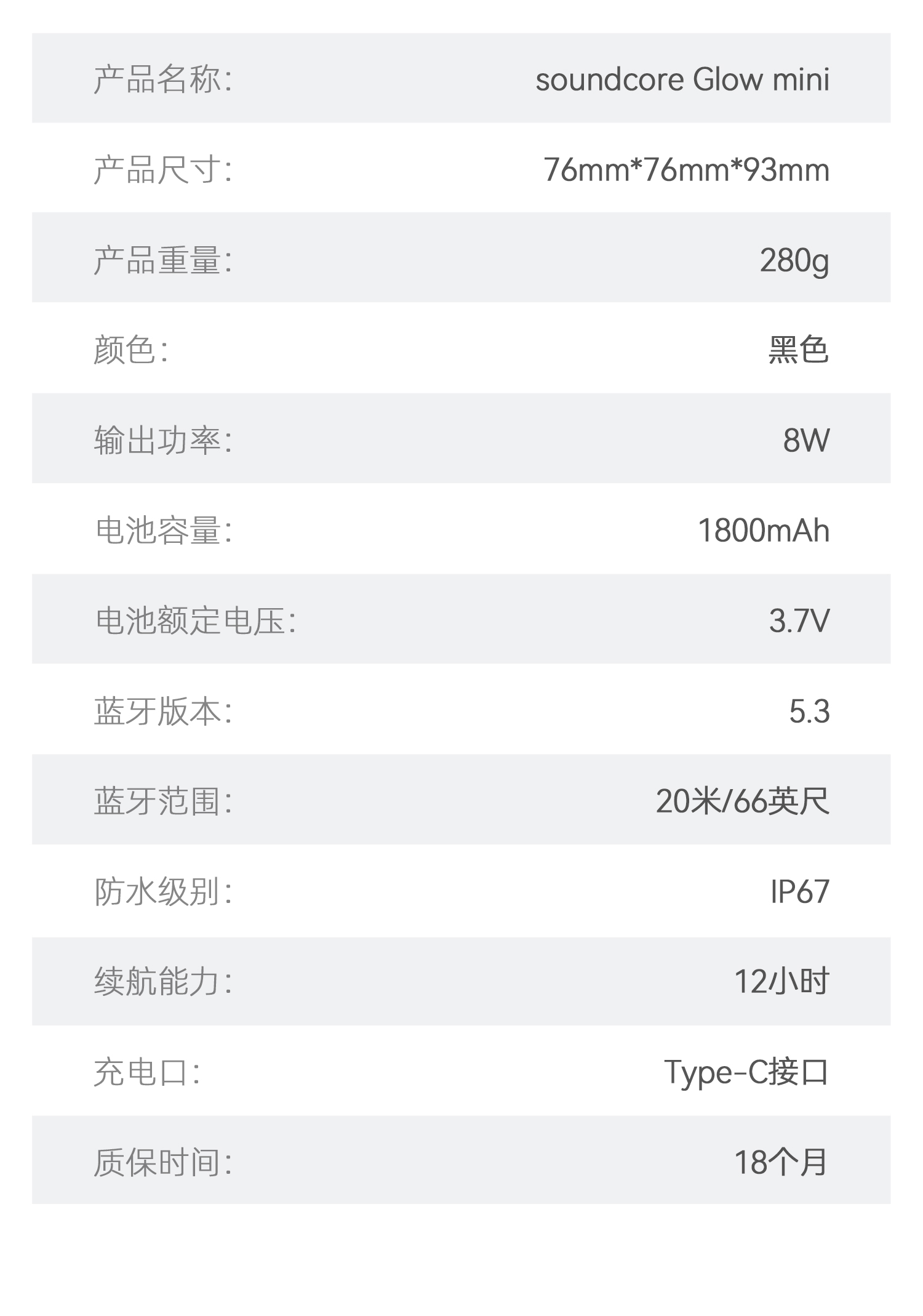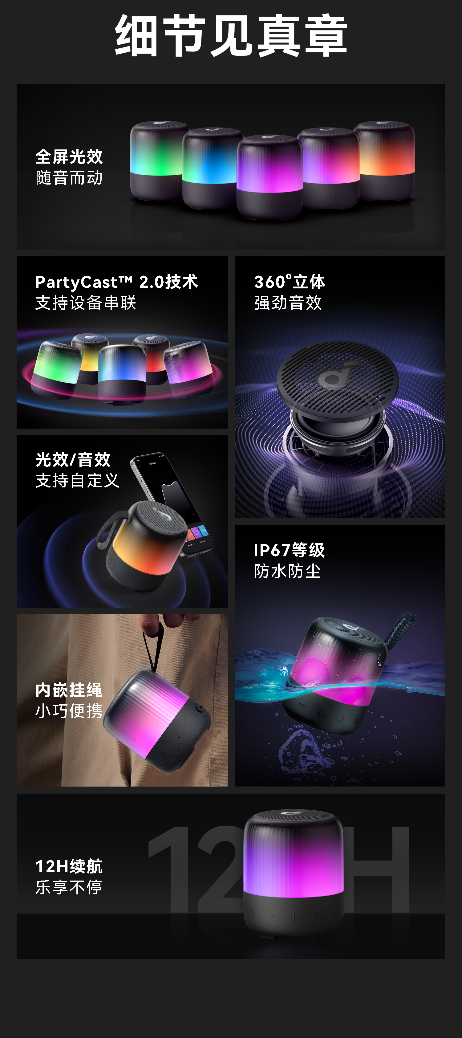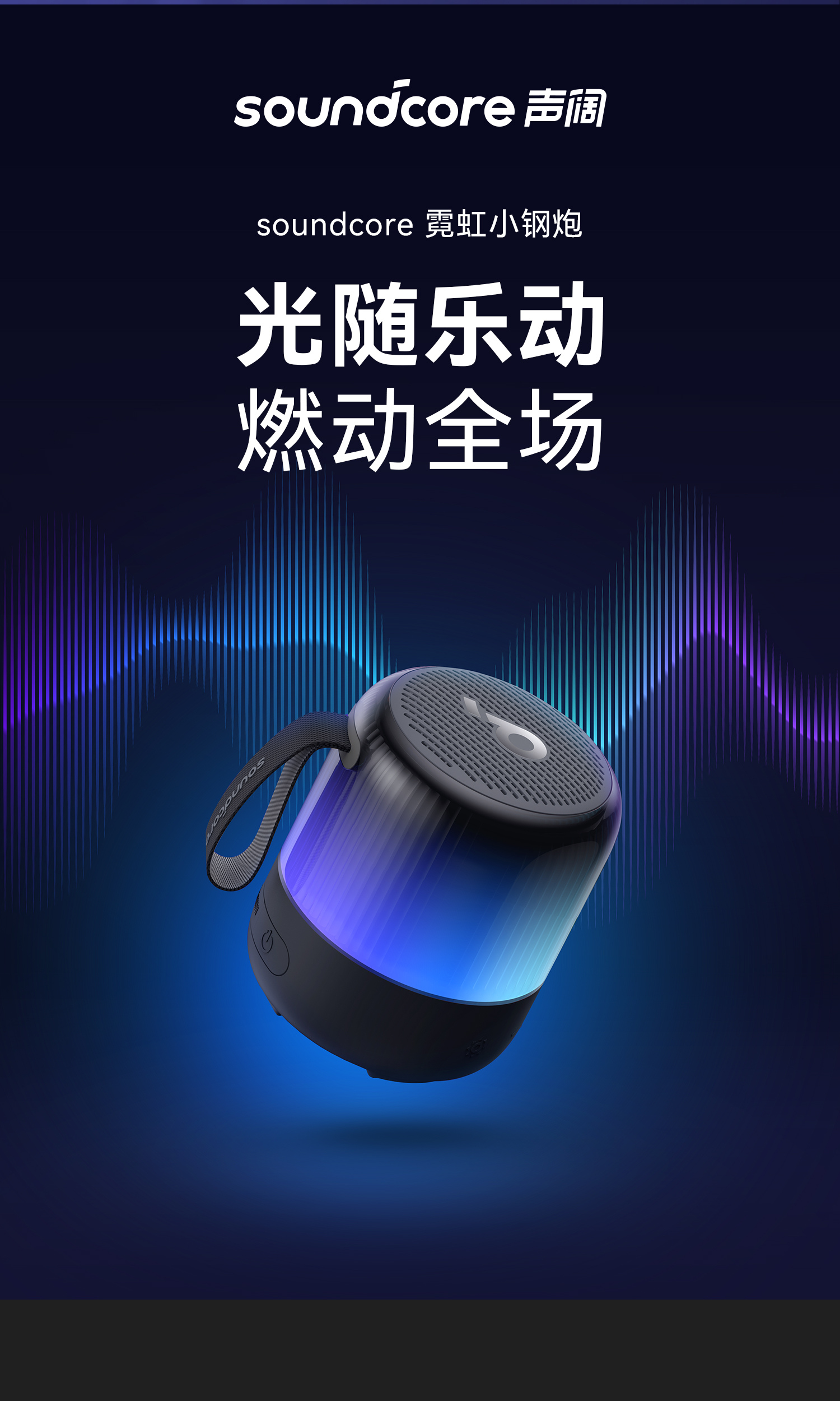 【热销】Soundcore声阔 Glow mini 霓虹小钢炮蓝牙音箱 A3136
