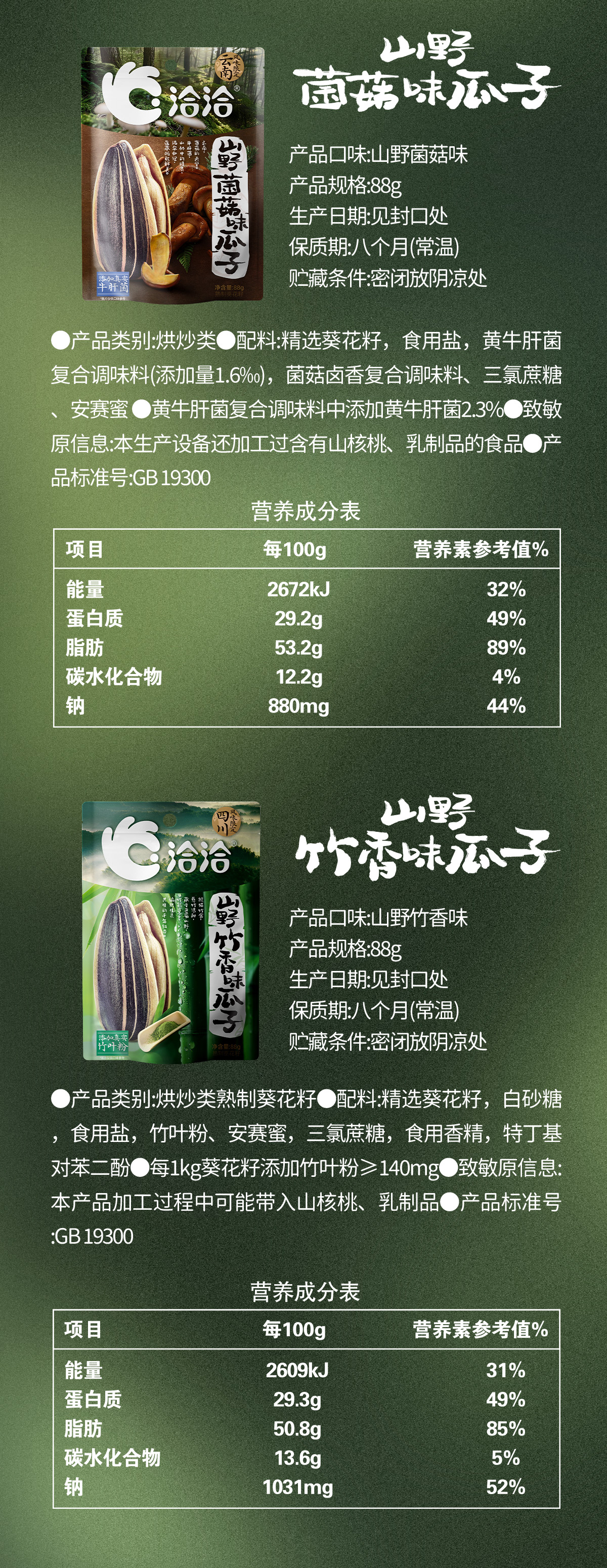 【长期集采】洽洽山野酸汤味/菌菇味/竹香味瓜子88g