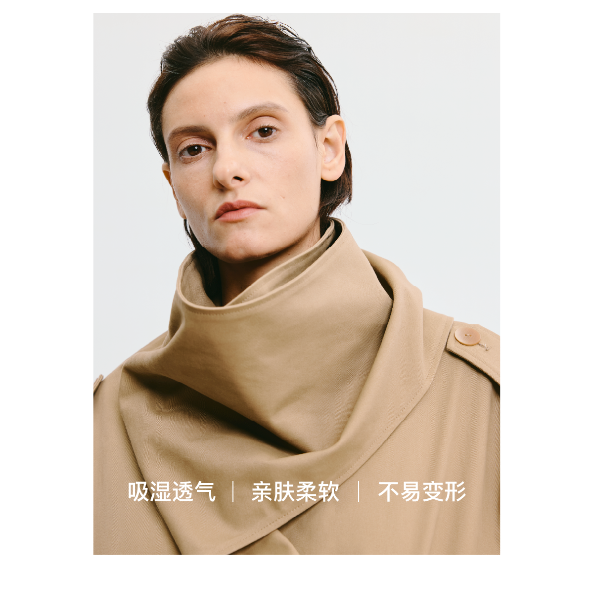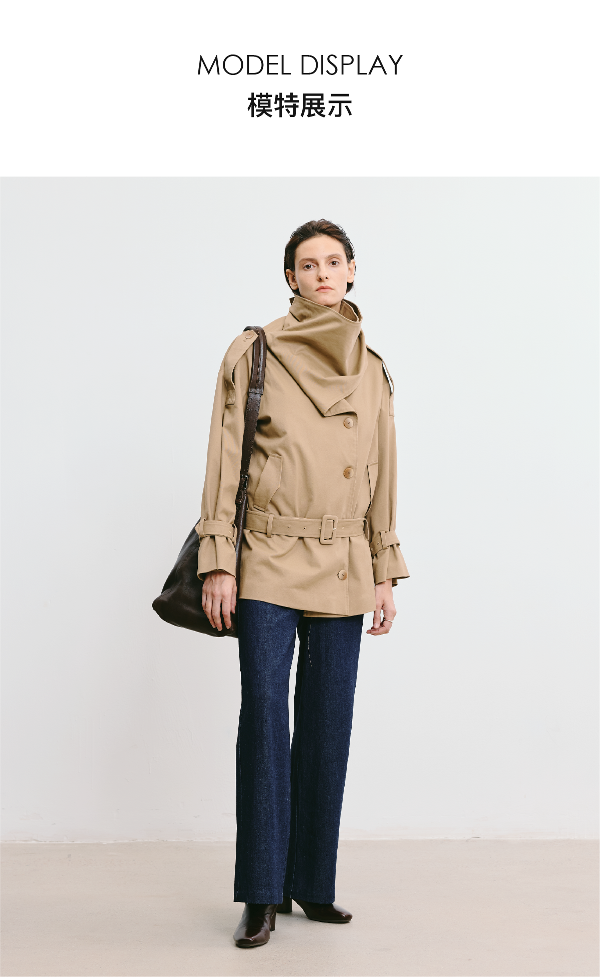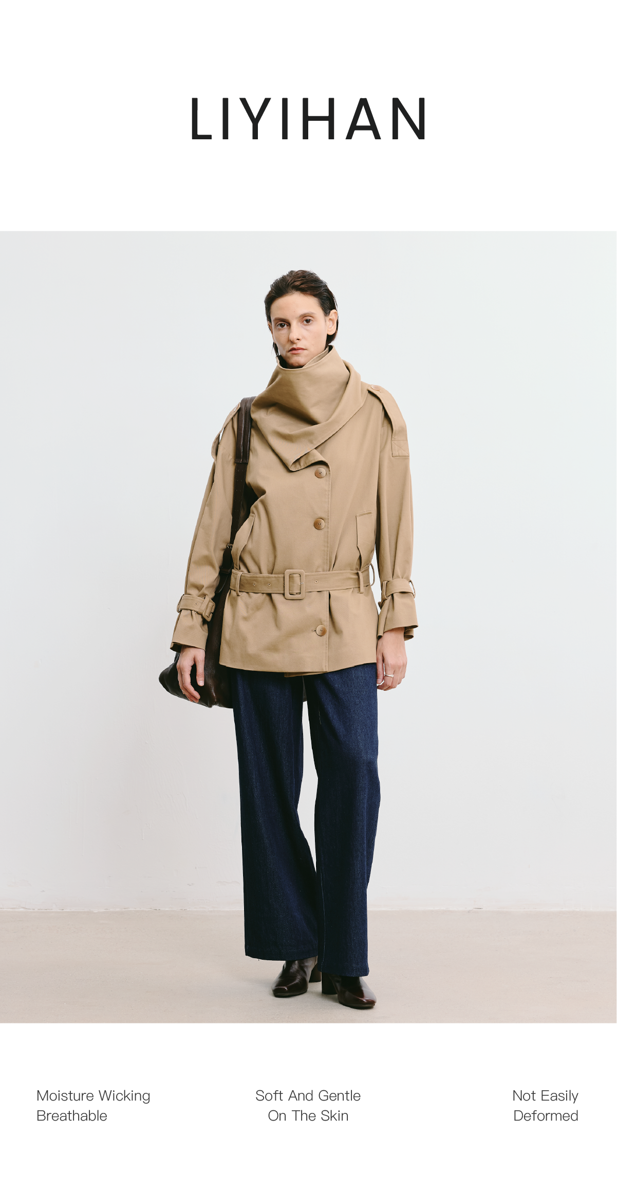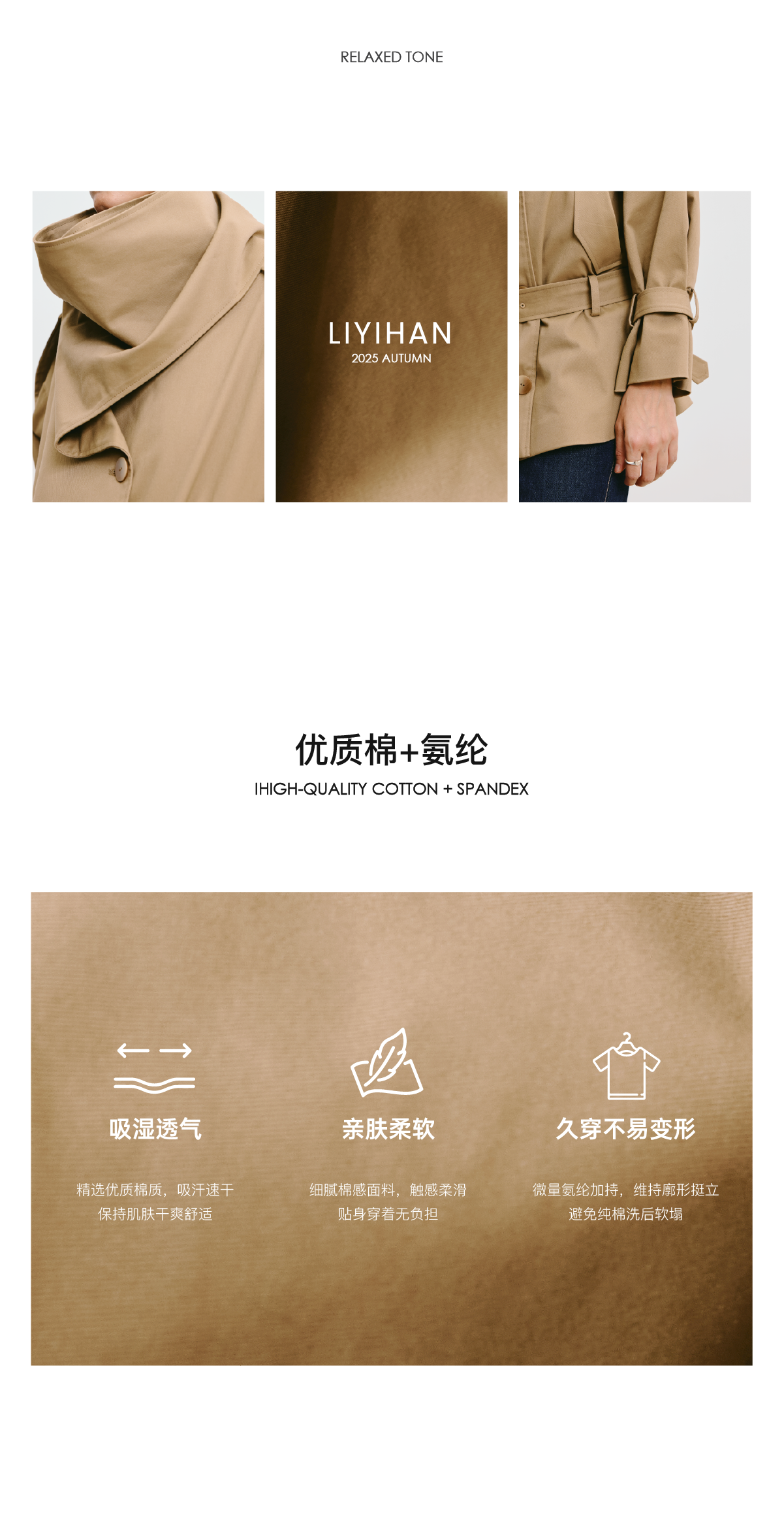 LIYIHAN 2025秋季新款通勤棉质卡其色短款风衣外套女小众设计感