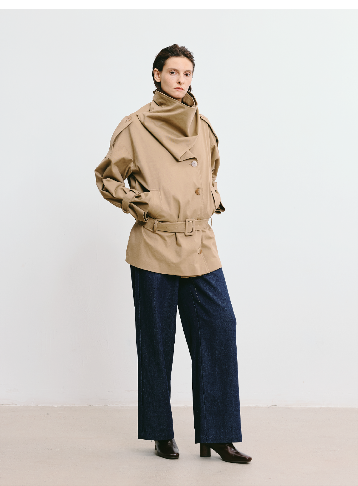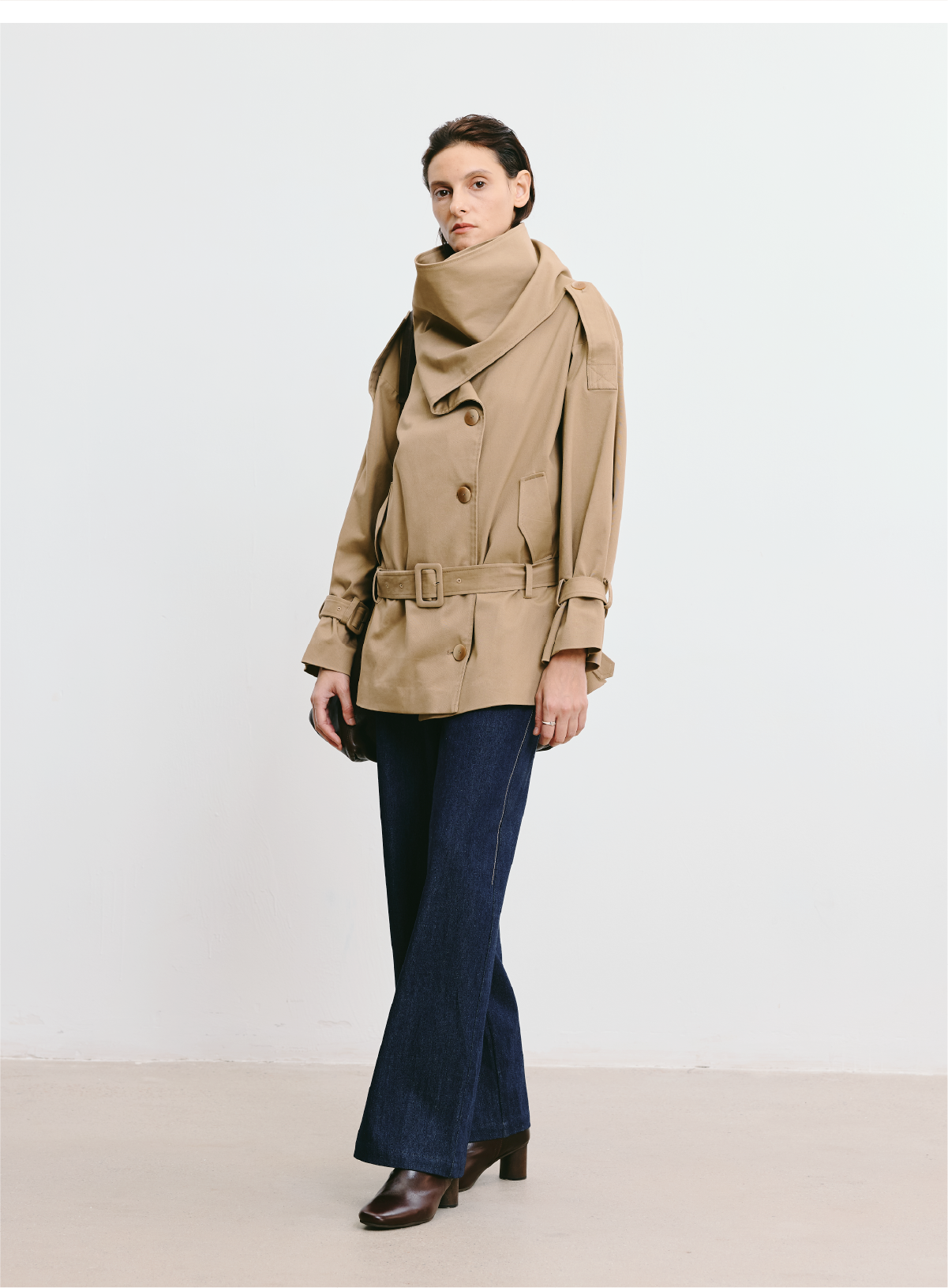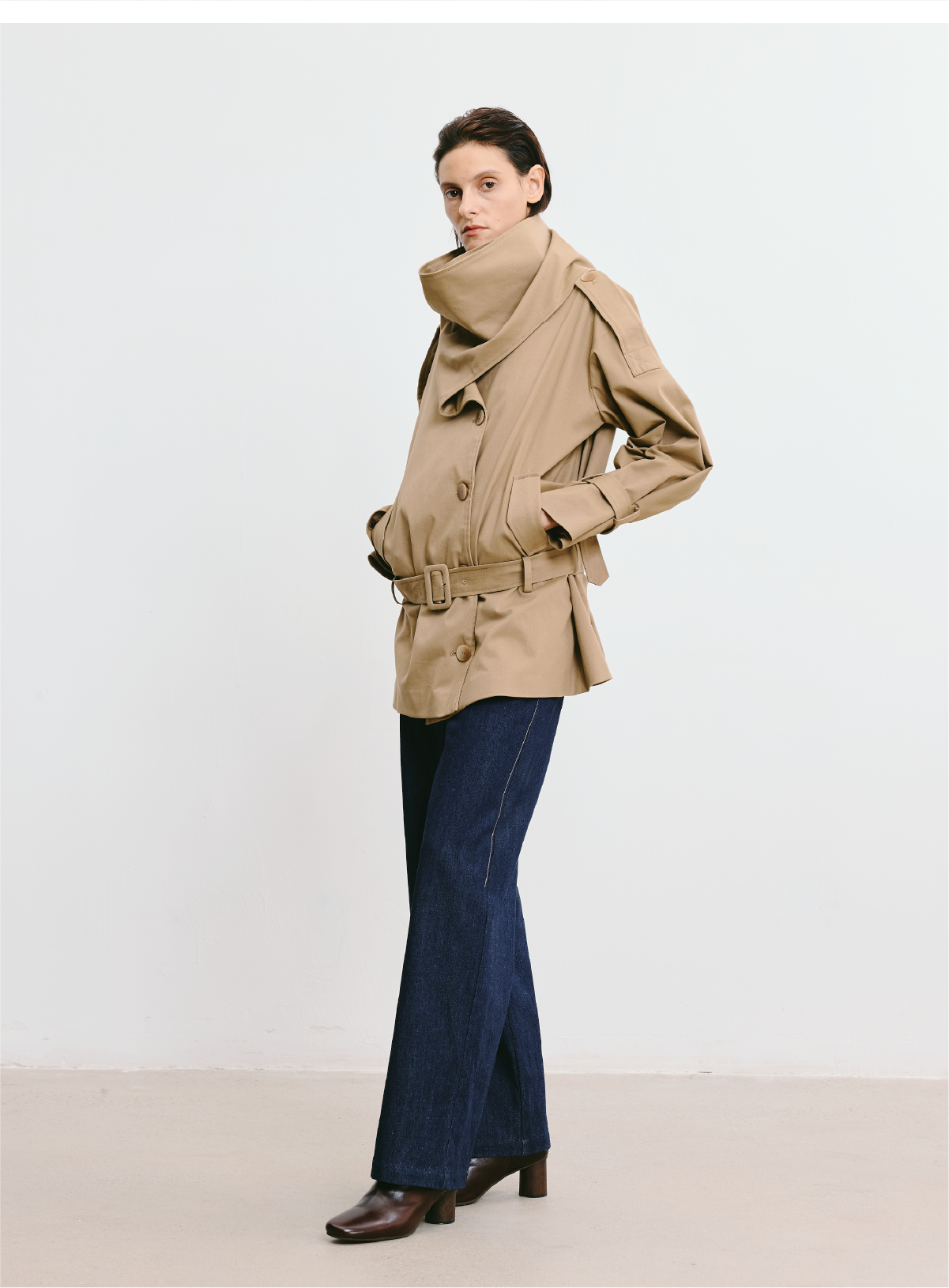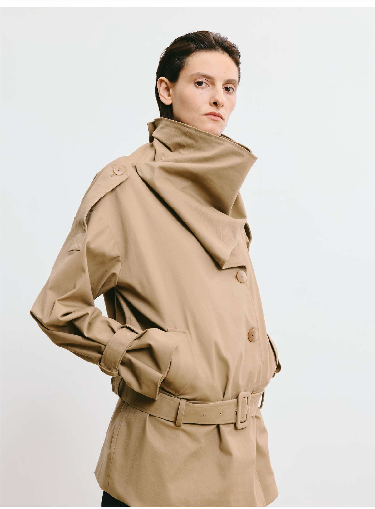 LIYIHAN 2025秋季新款通勤棉质卡其色短款风衣外套女小众设计感