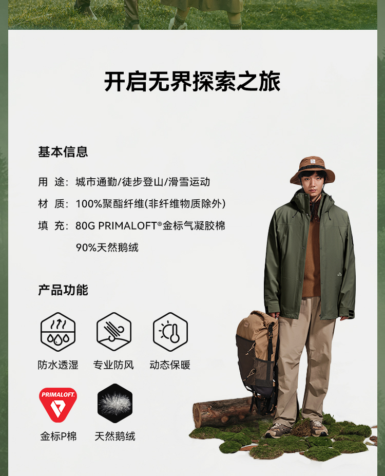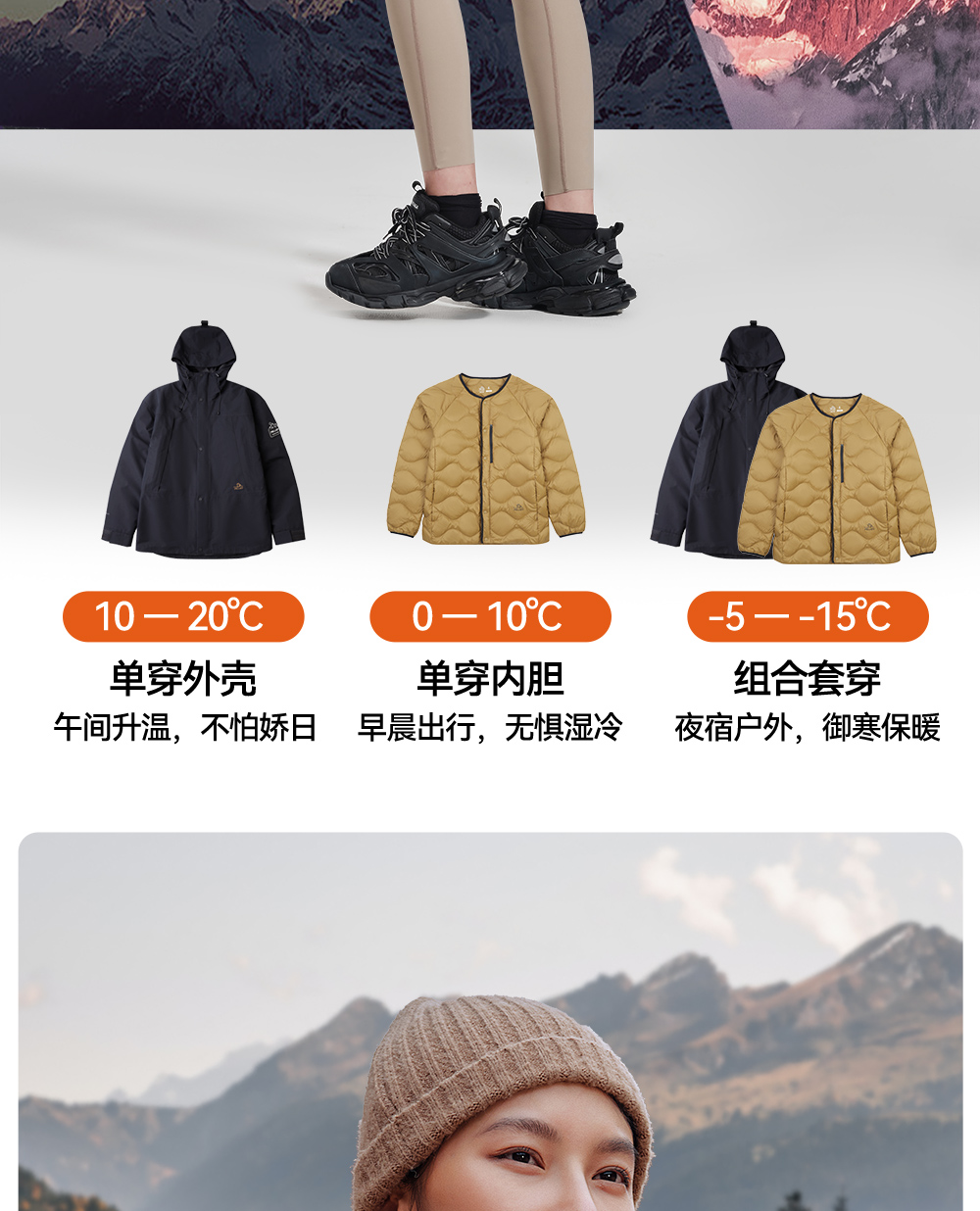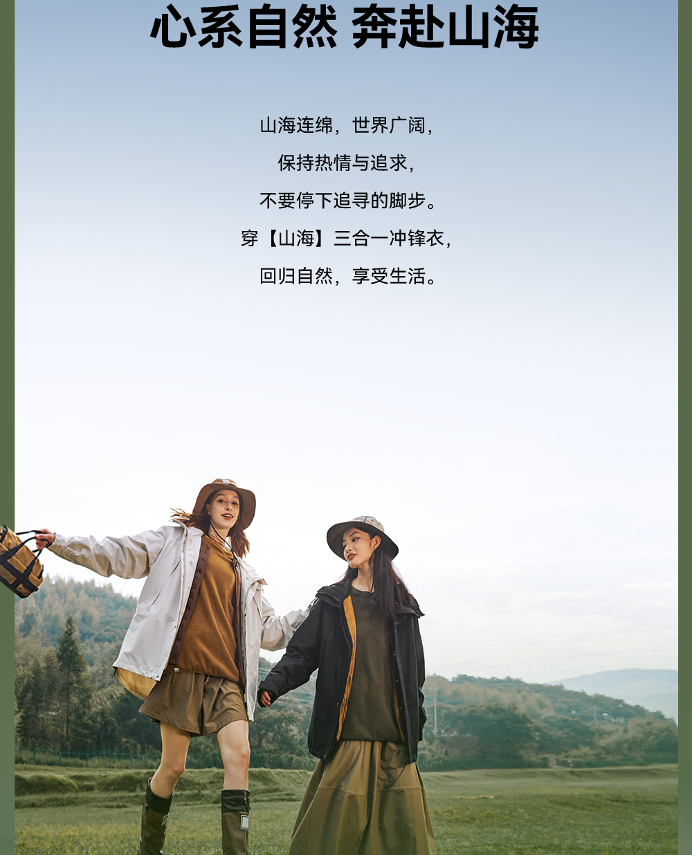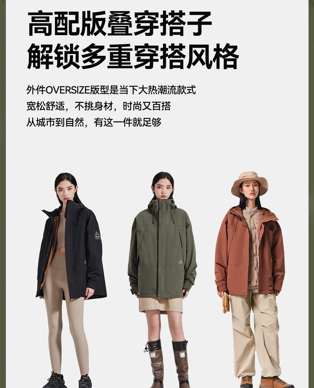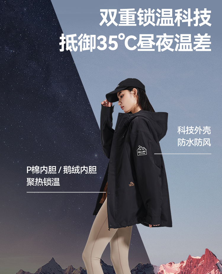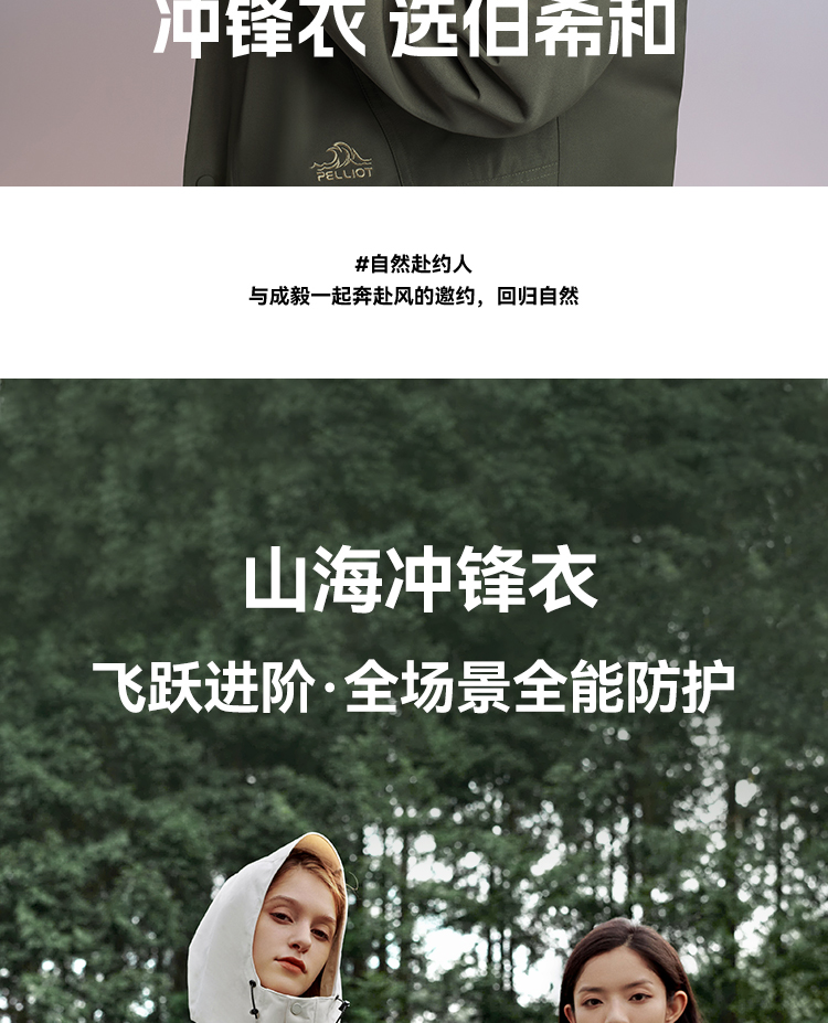 【成毅同款】伯希和山海户外露营冲锋衣女三合一防风登山服外套男