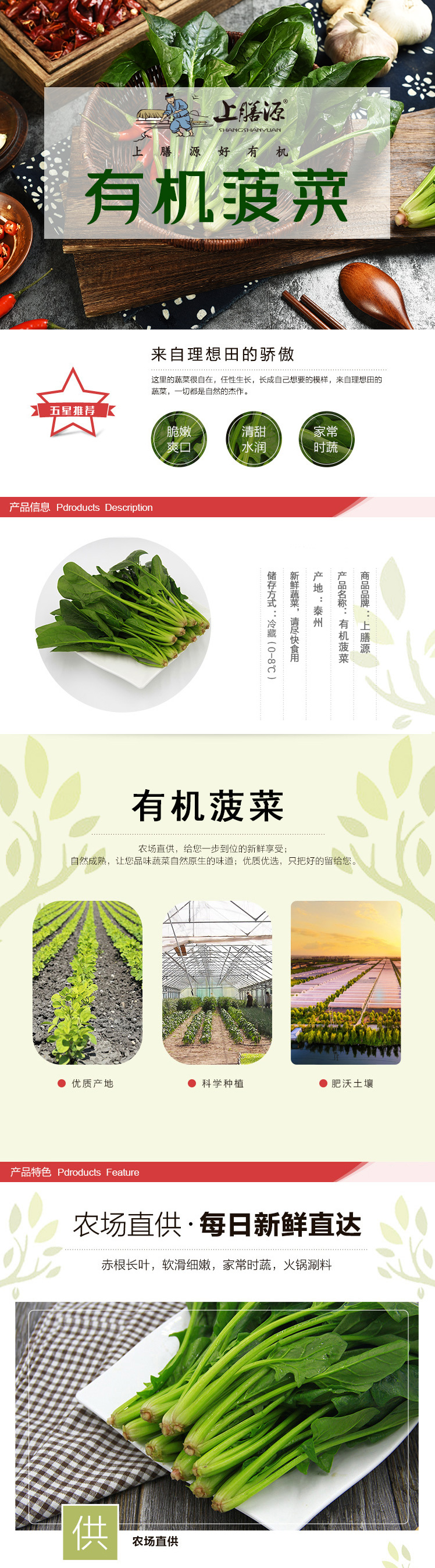 【下单后2-3天发货】上膳源有机菠菜
