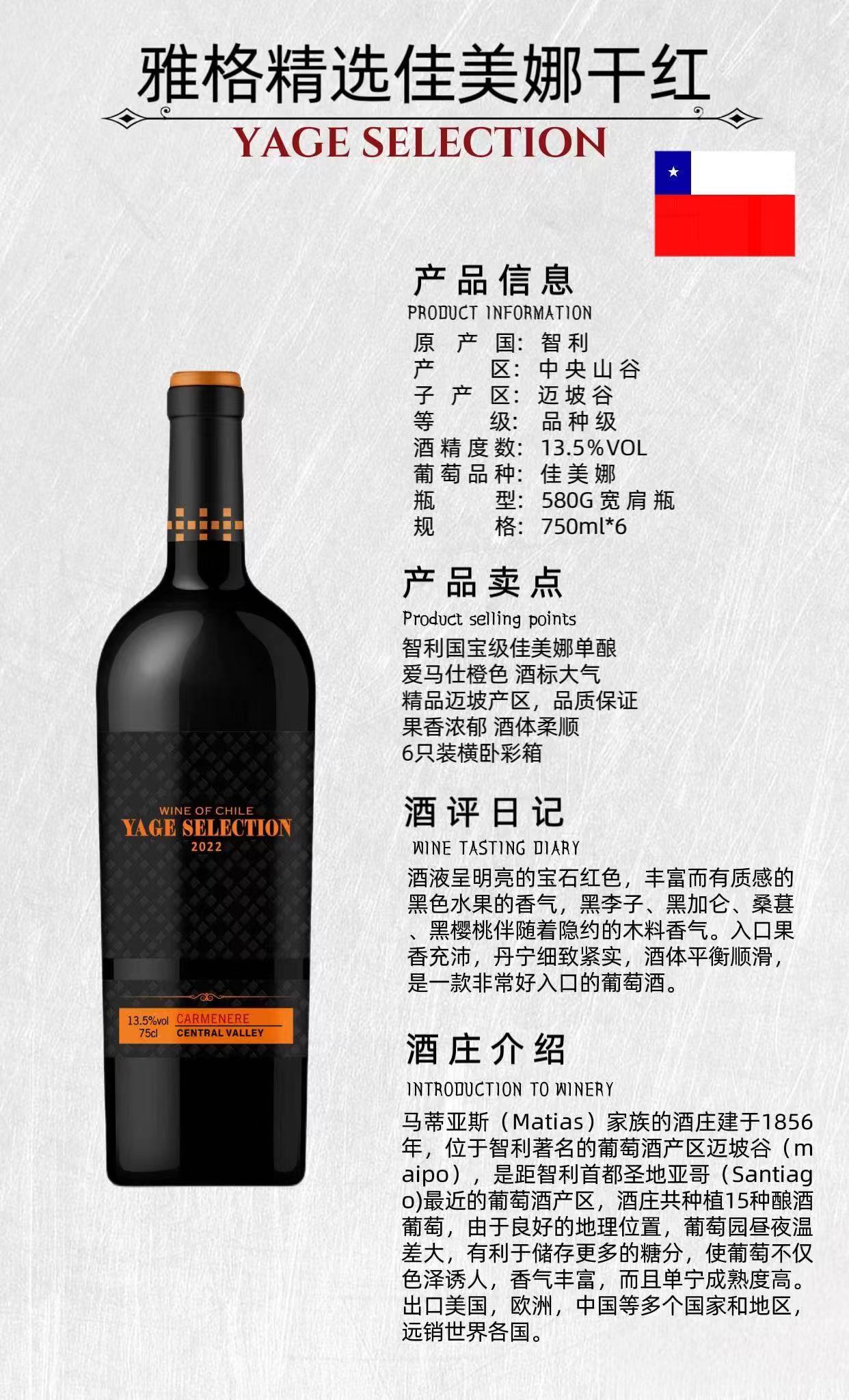 智利中央山谷精选佳美娜干红葡萄酒六支装750ml*6