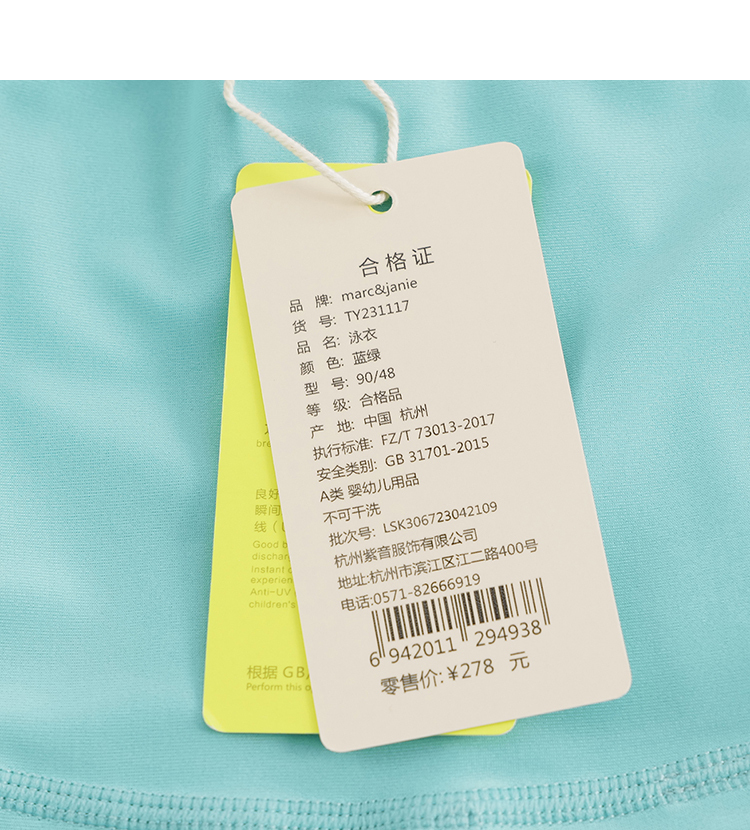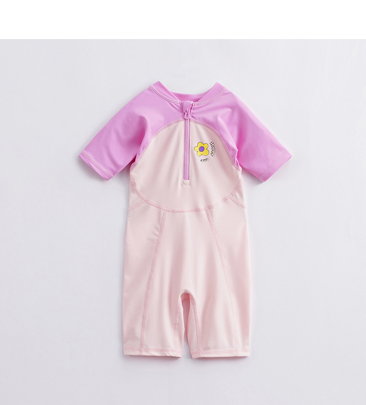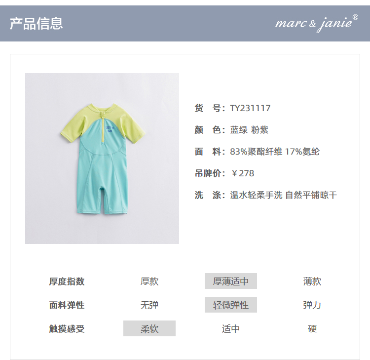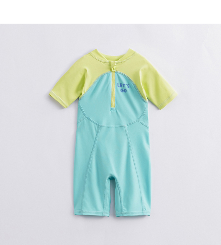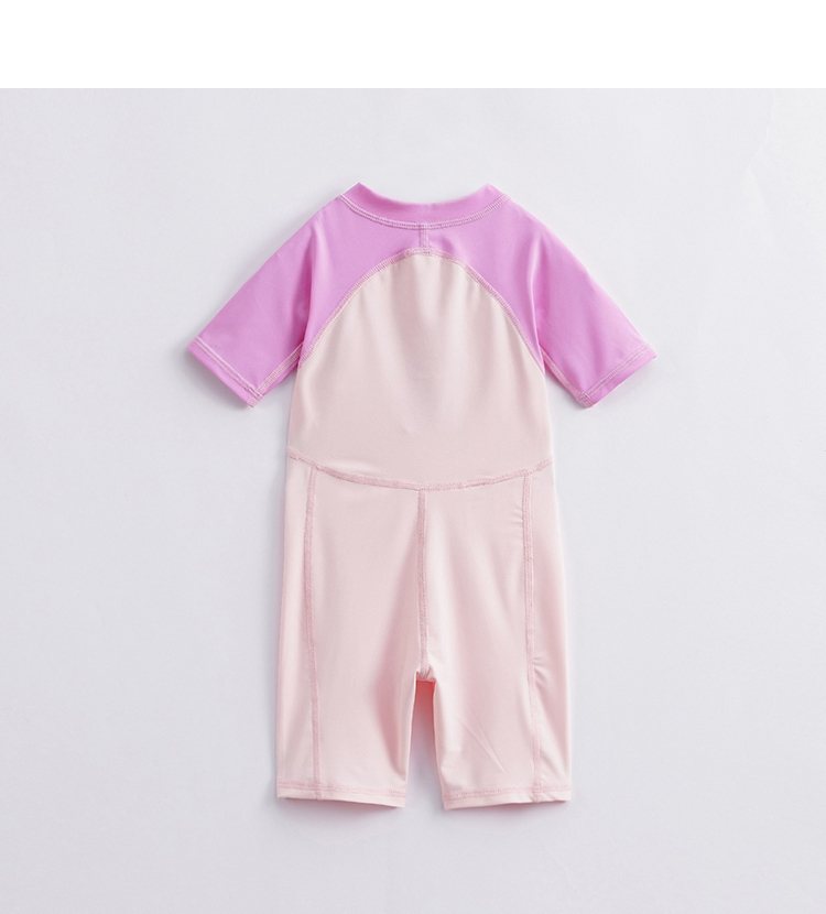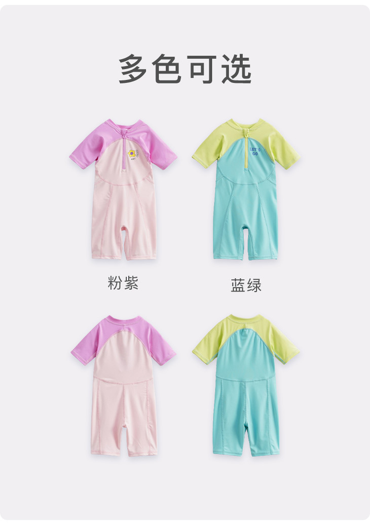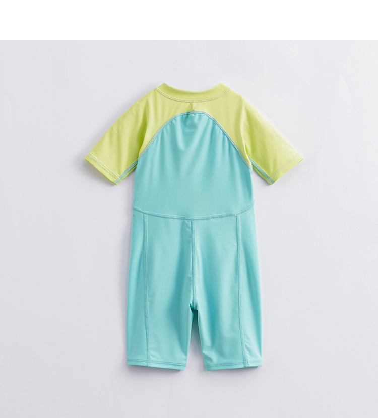 【凉感防晒】马克珍妮夏装 男女童拼色游泳衣短袖连体泳衣231117