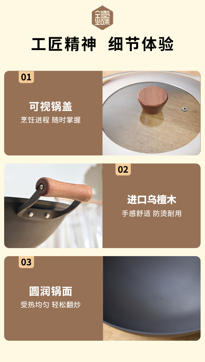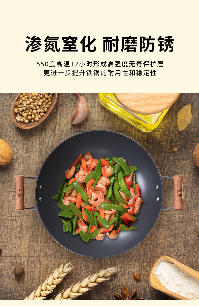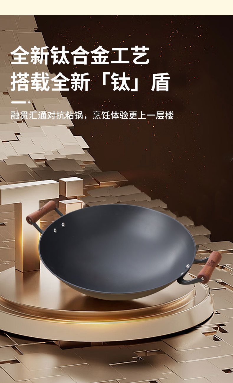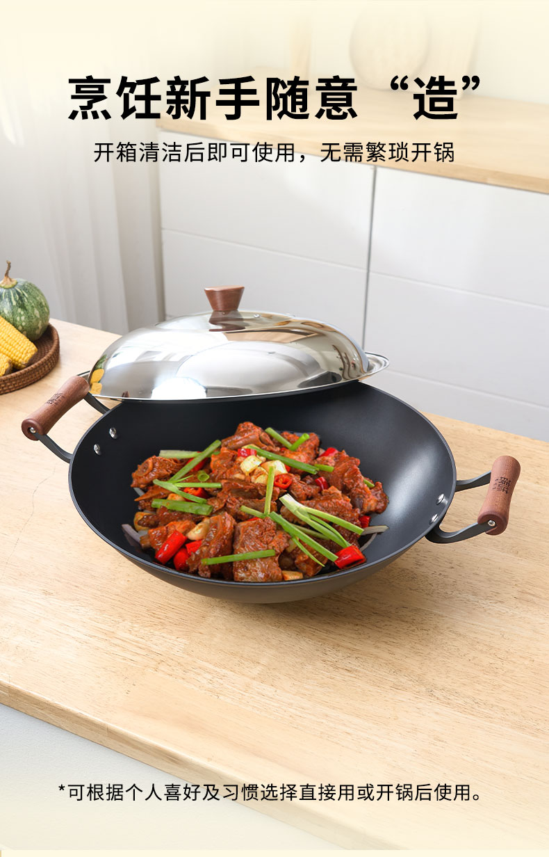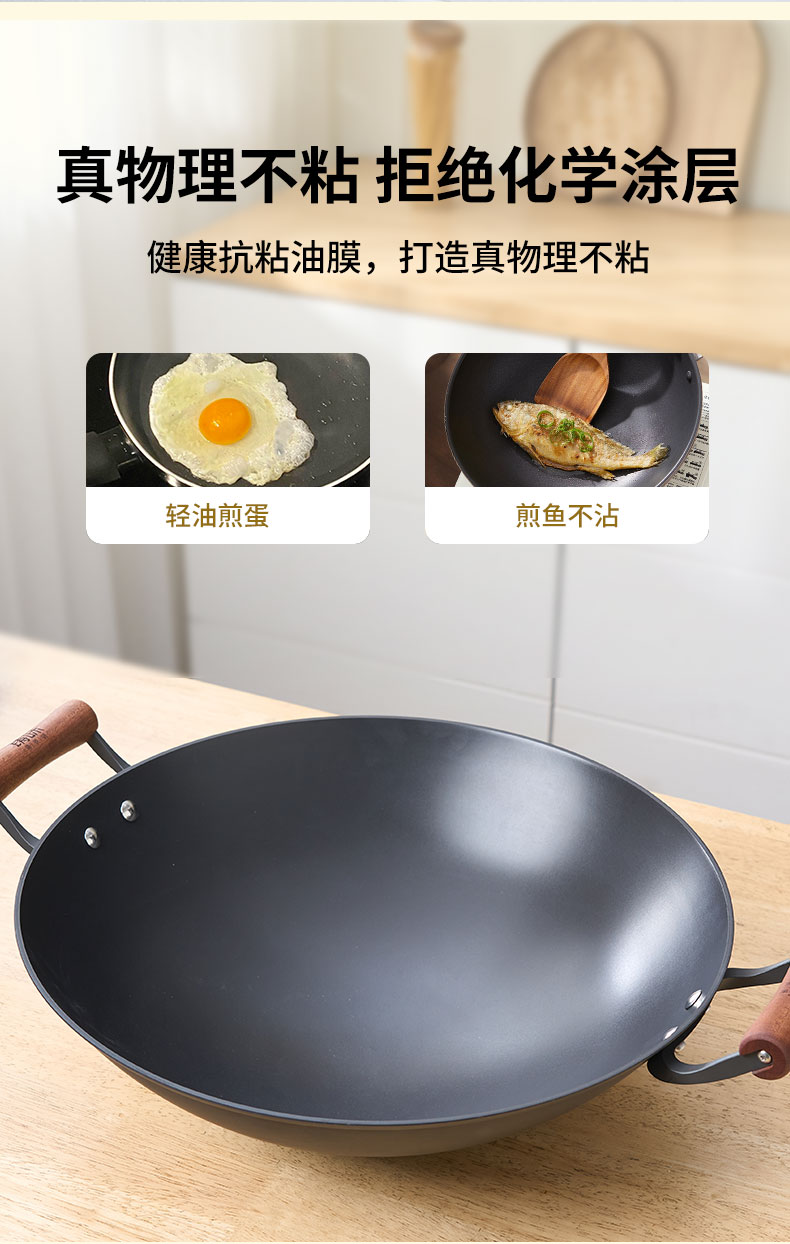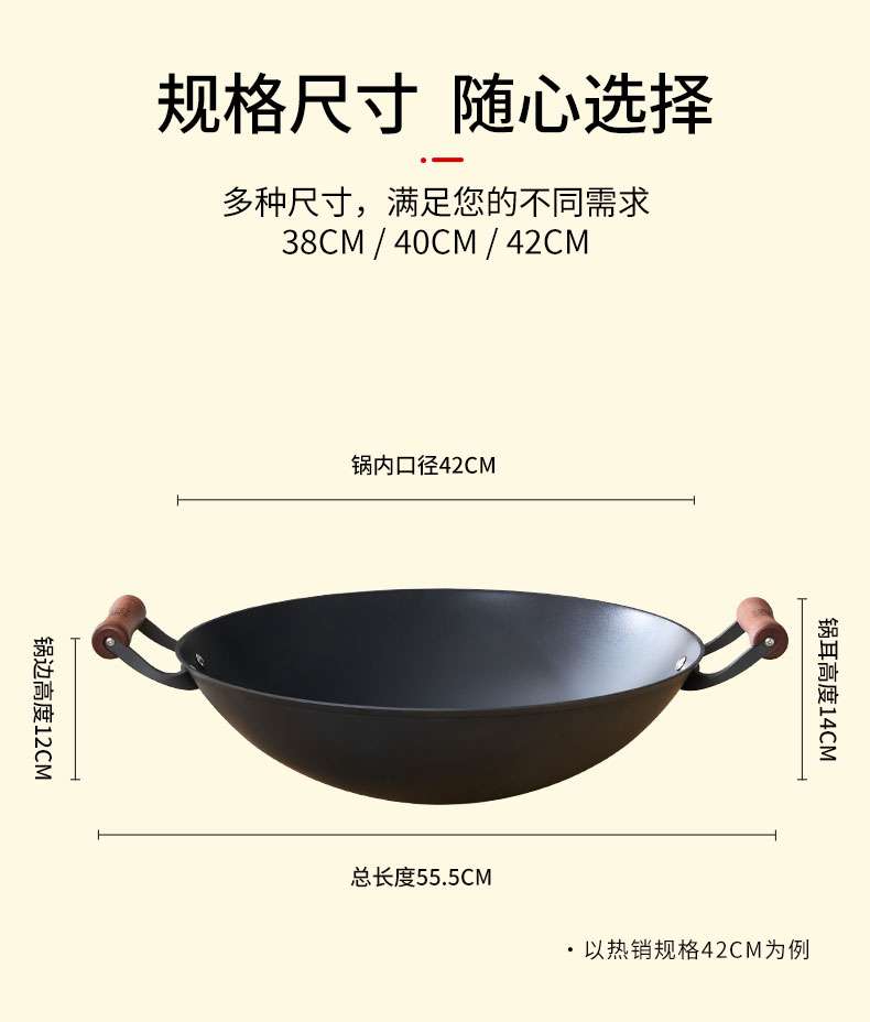 【珍有米】铸味钛铁 | 38-42cm双耳无涂层生铁炒锅燃气炉电磁炉松弛感家居
