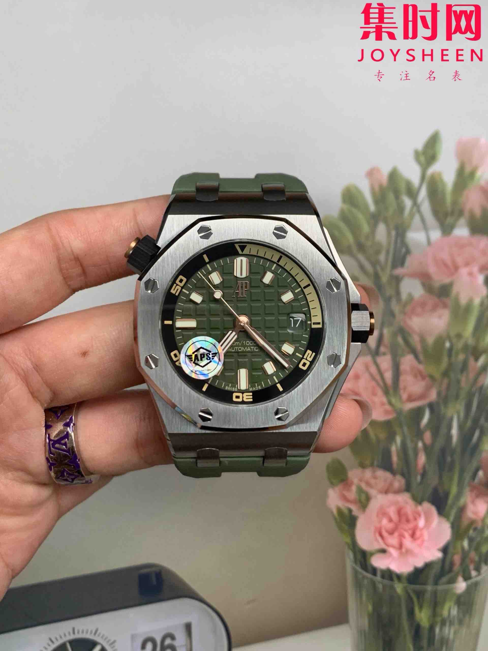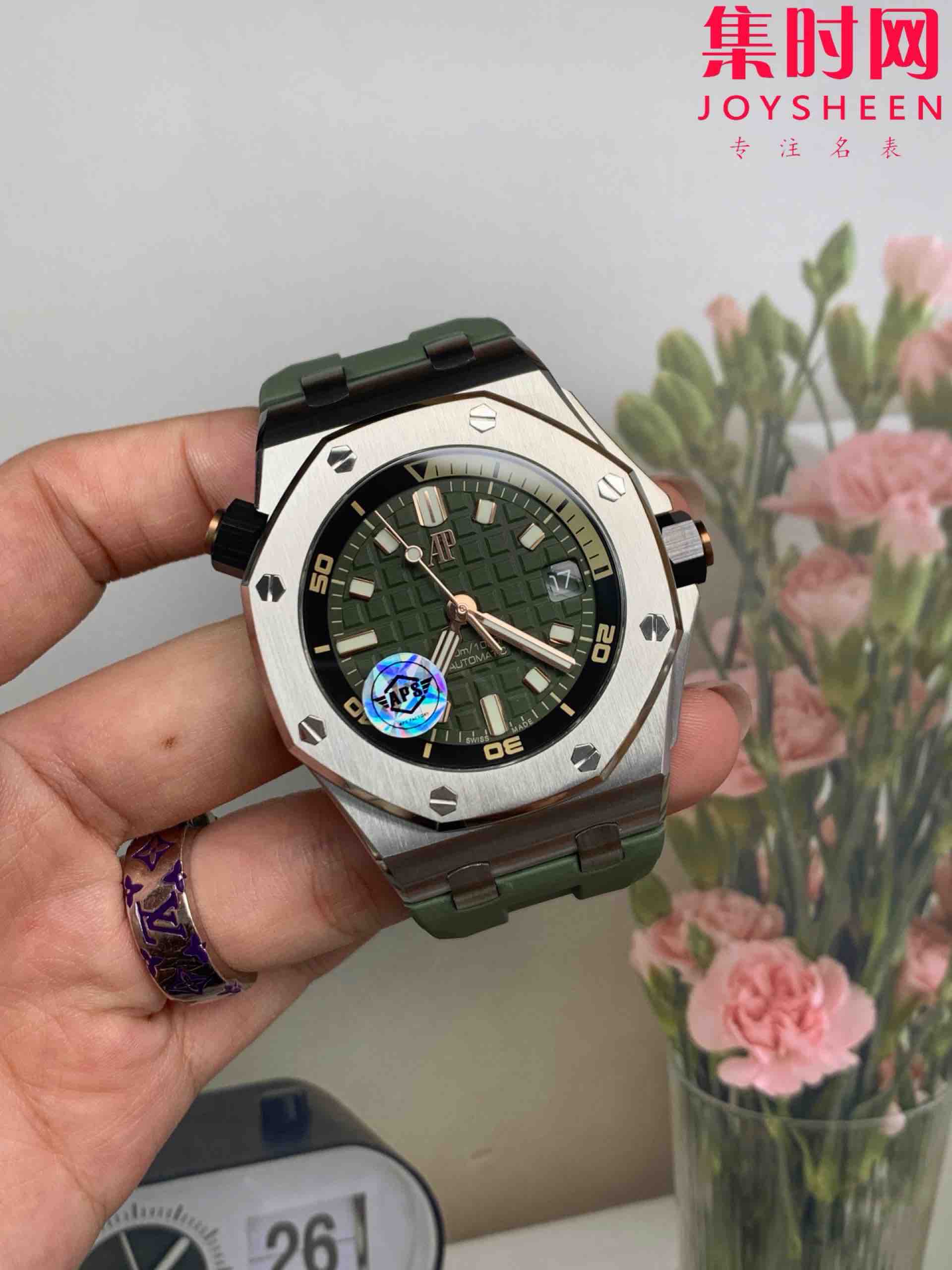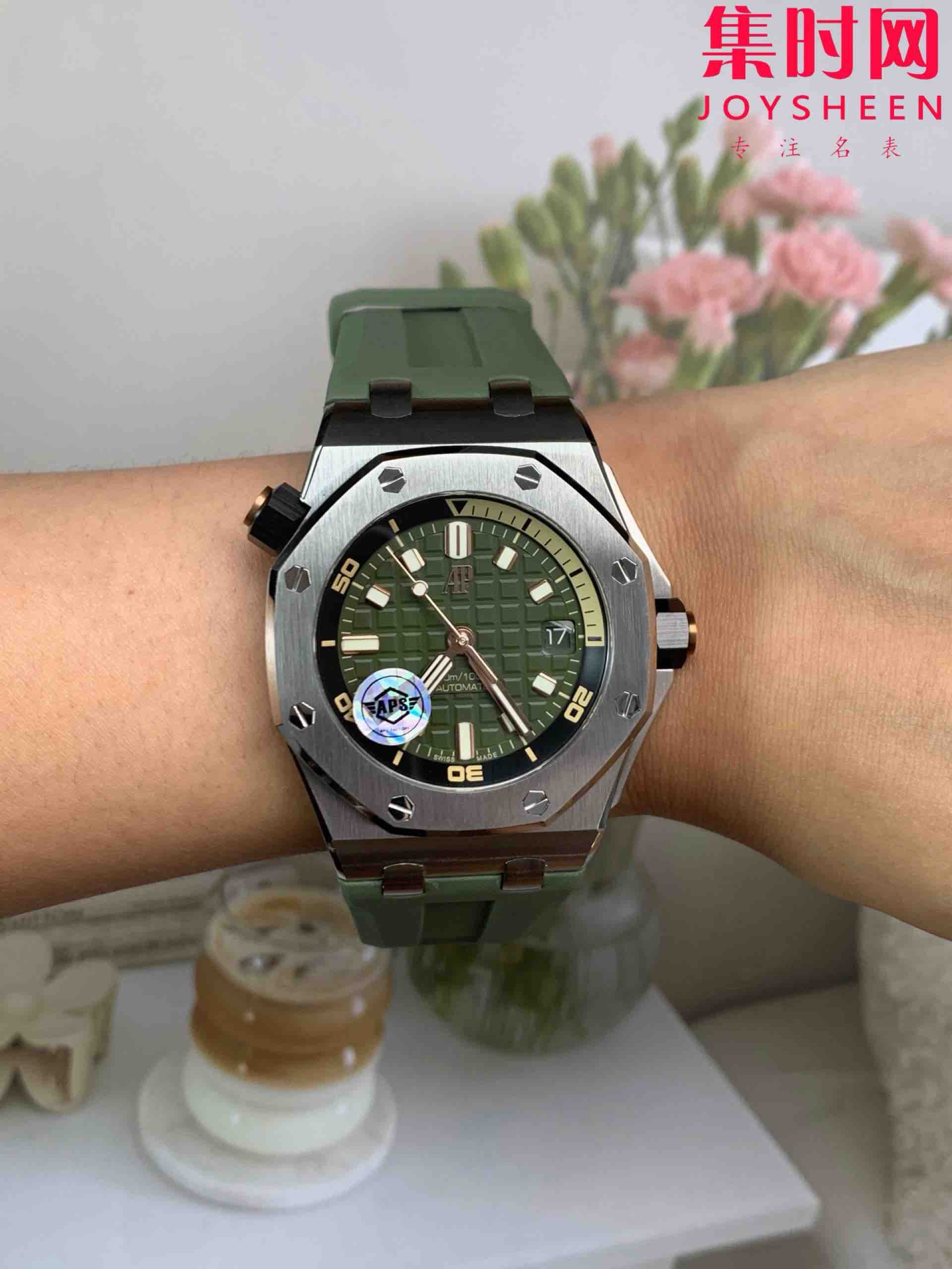 APS爱彼皇家橡树15720ST系列 牛油果绿 男士腕表 搭载全新定制一体机Cal.4308全自动机械机芯,表盘尺寸42x14.2mm, 不惜高成本开发一体机,原装开模,让高度更进一步!
