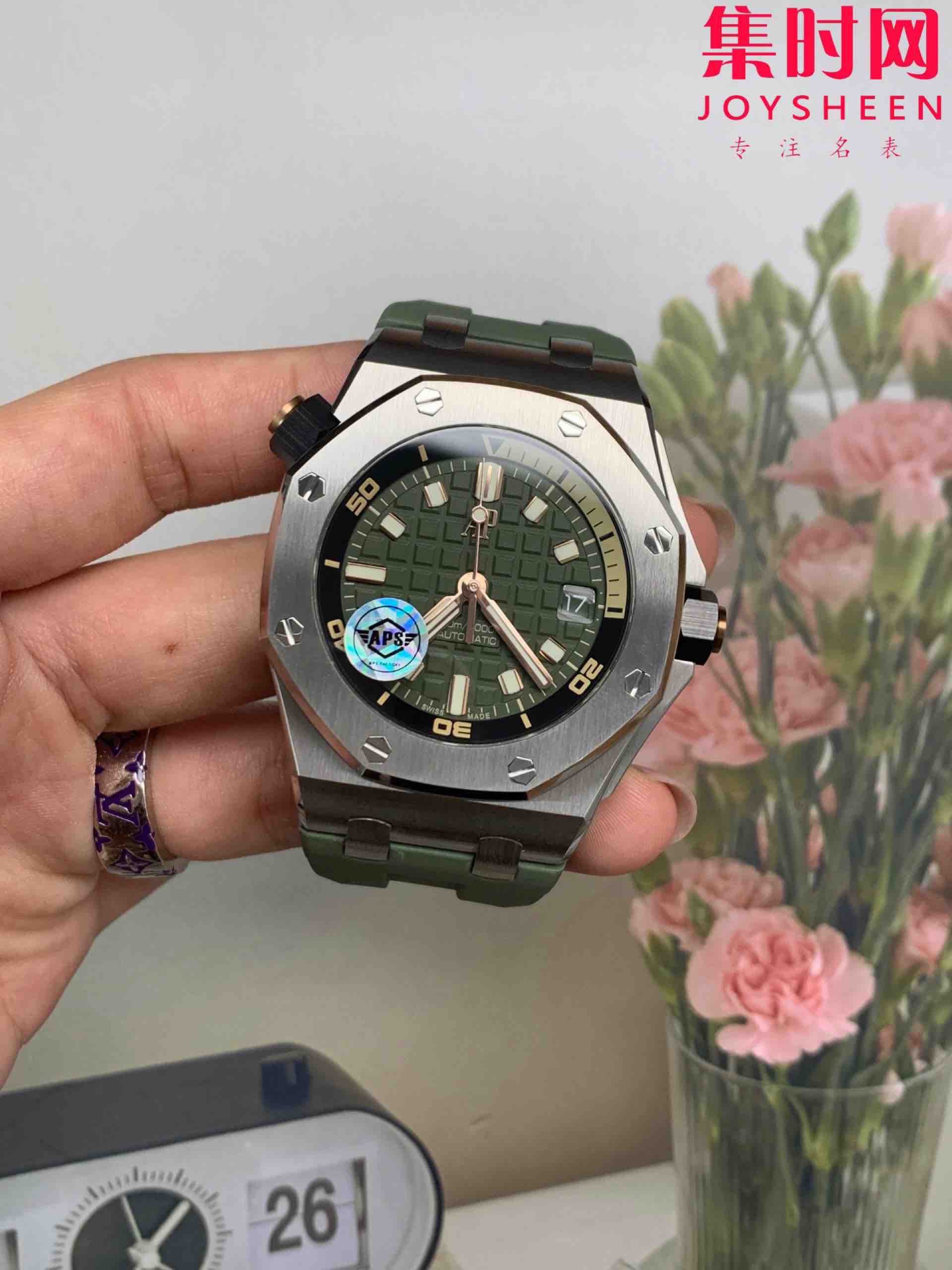 APS爱彼皇家橡树15720ST系列 牛油果绿 男士腕表 搭载全新定制一体机Cal.4308全自动机械机芯,表盘尺寸42x14.2mm, 不惜高成本开发一体机