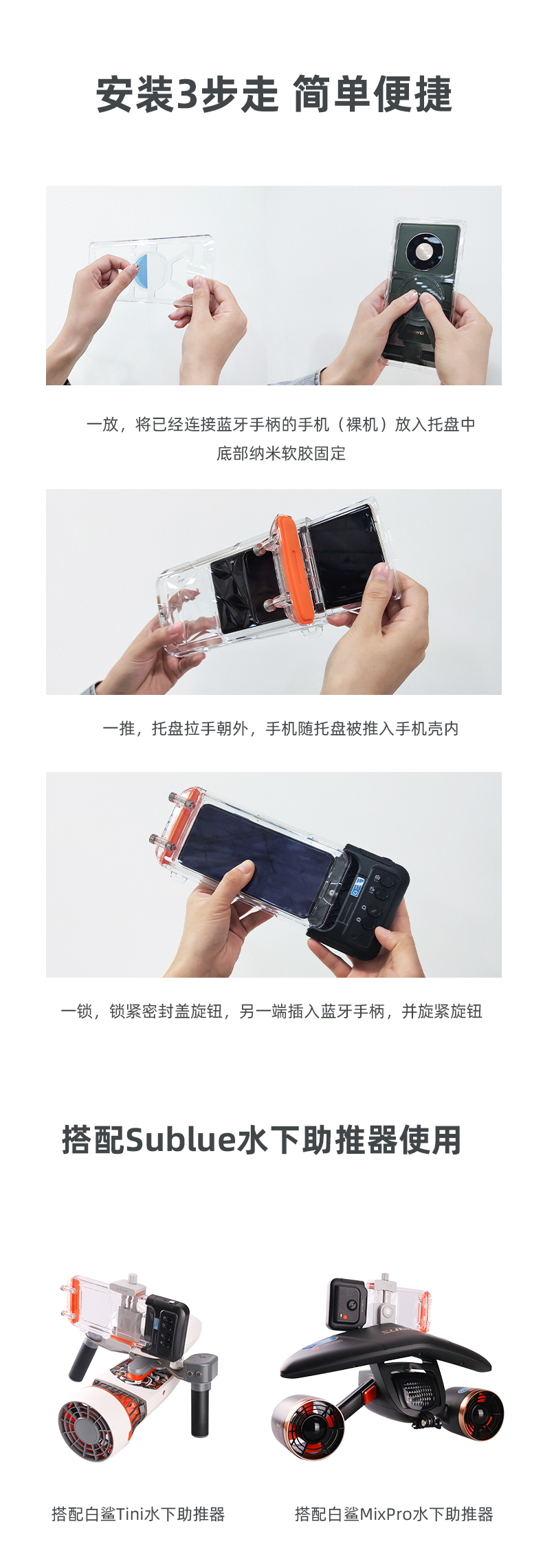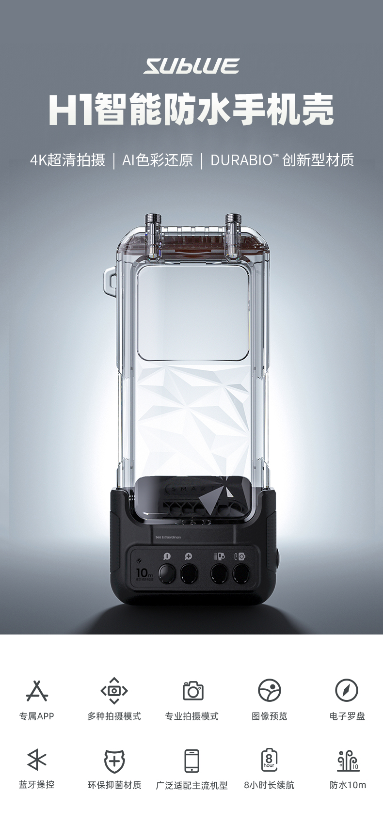 Sublue深之蓝H1+智能防水手机拍摄装备 运动防水拍摄 AI色彩 APP分享