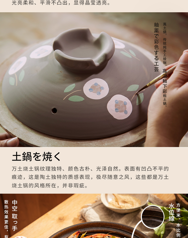 万土烧和风朝颜5号9寸中锅A3015紫金色