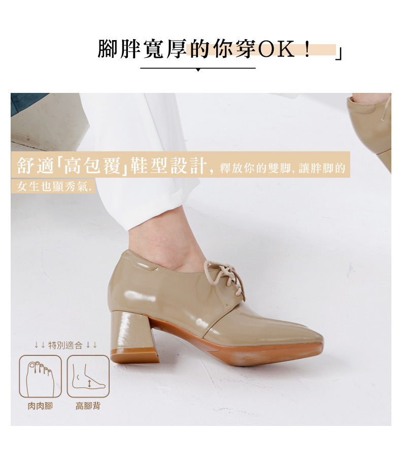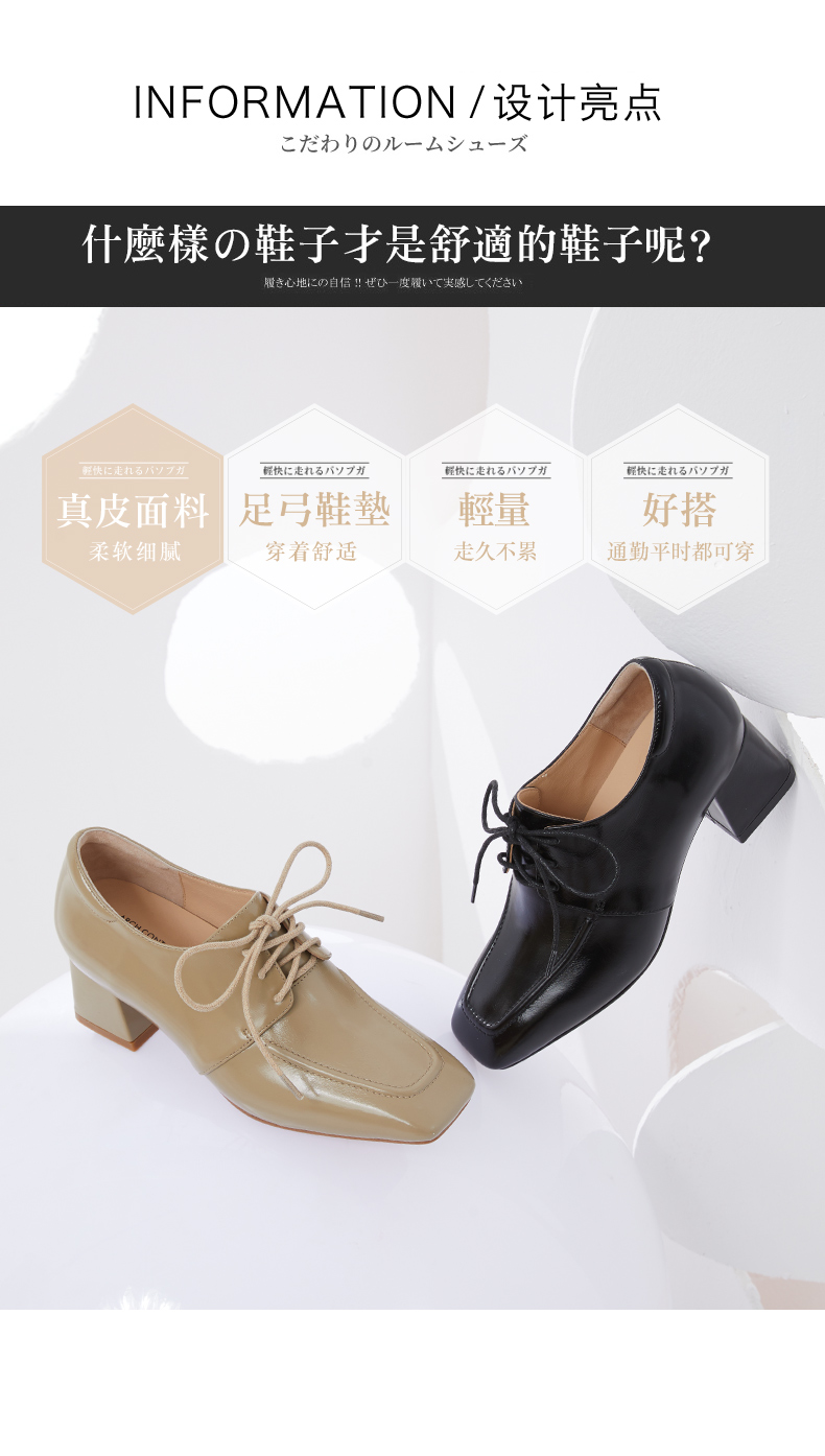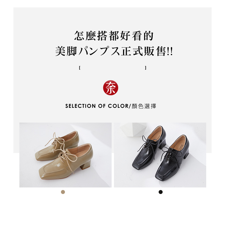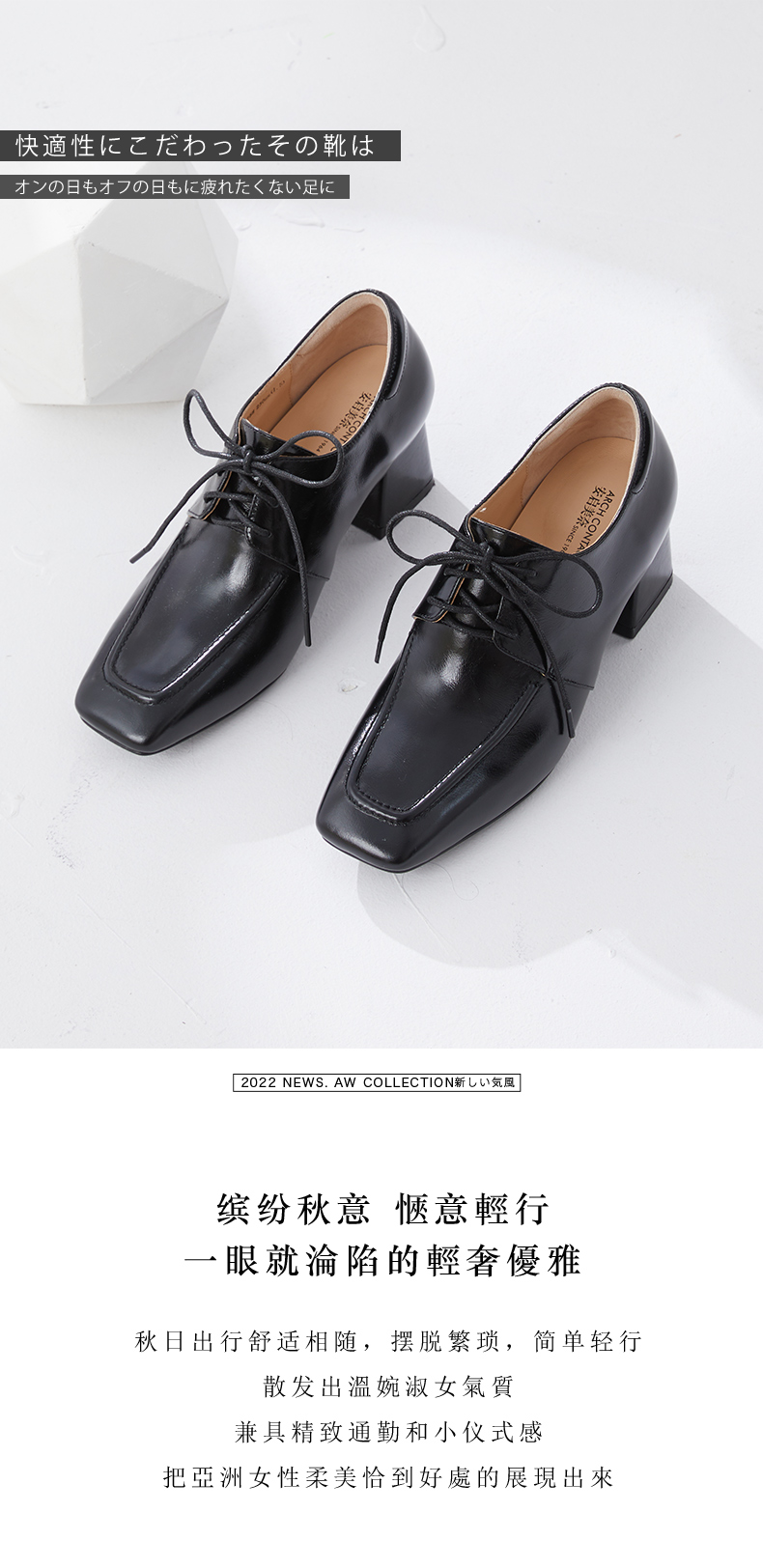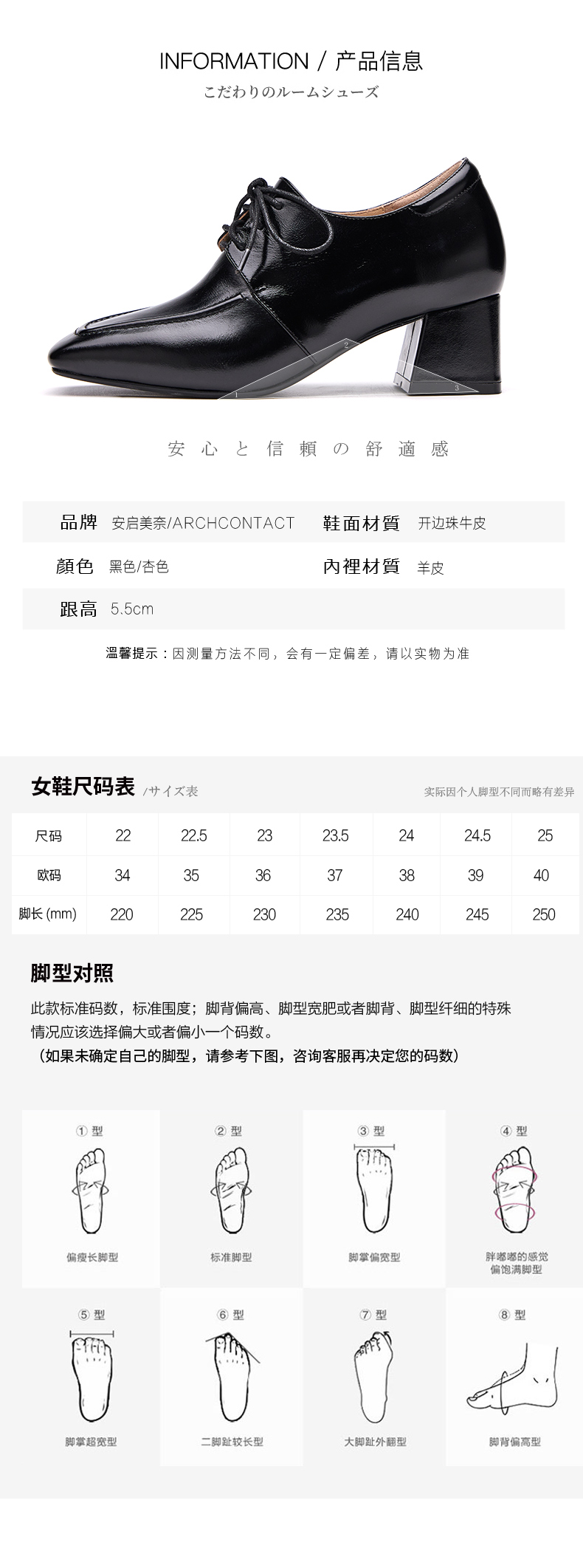 ARCHCONTACT安启美奈方头系带粗跟单鞋52758