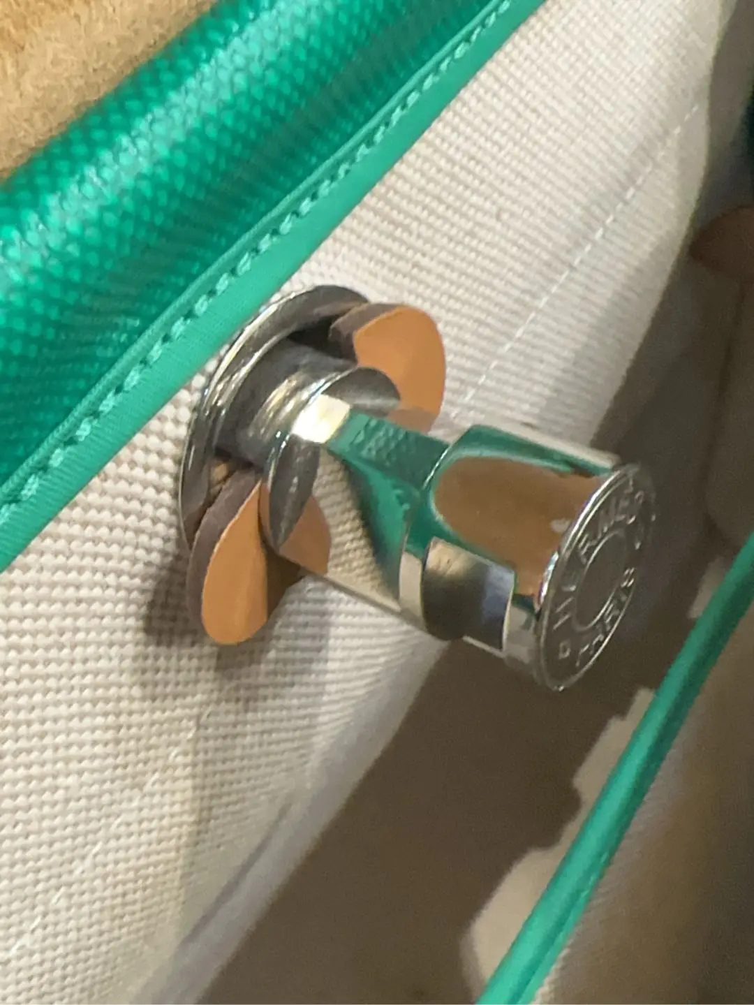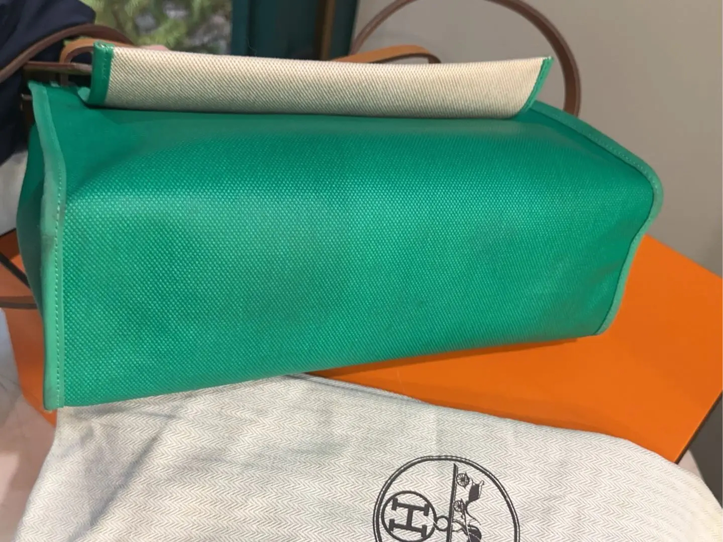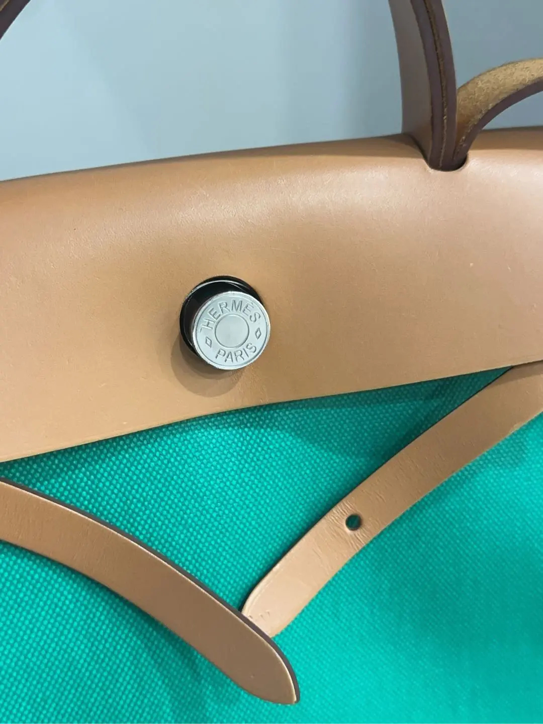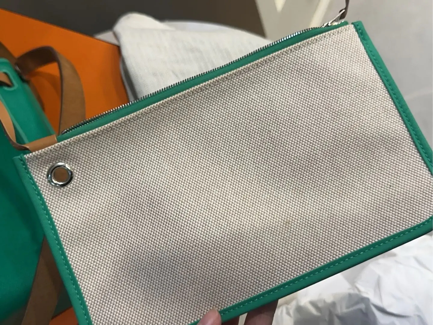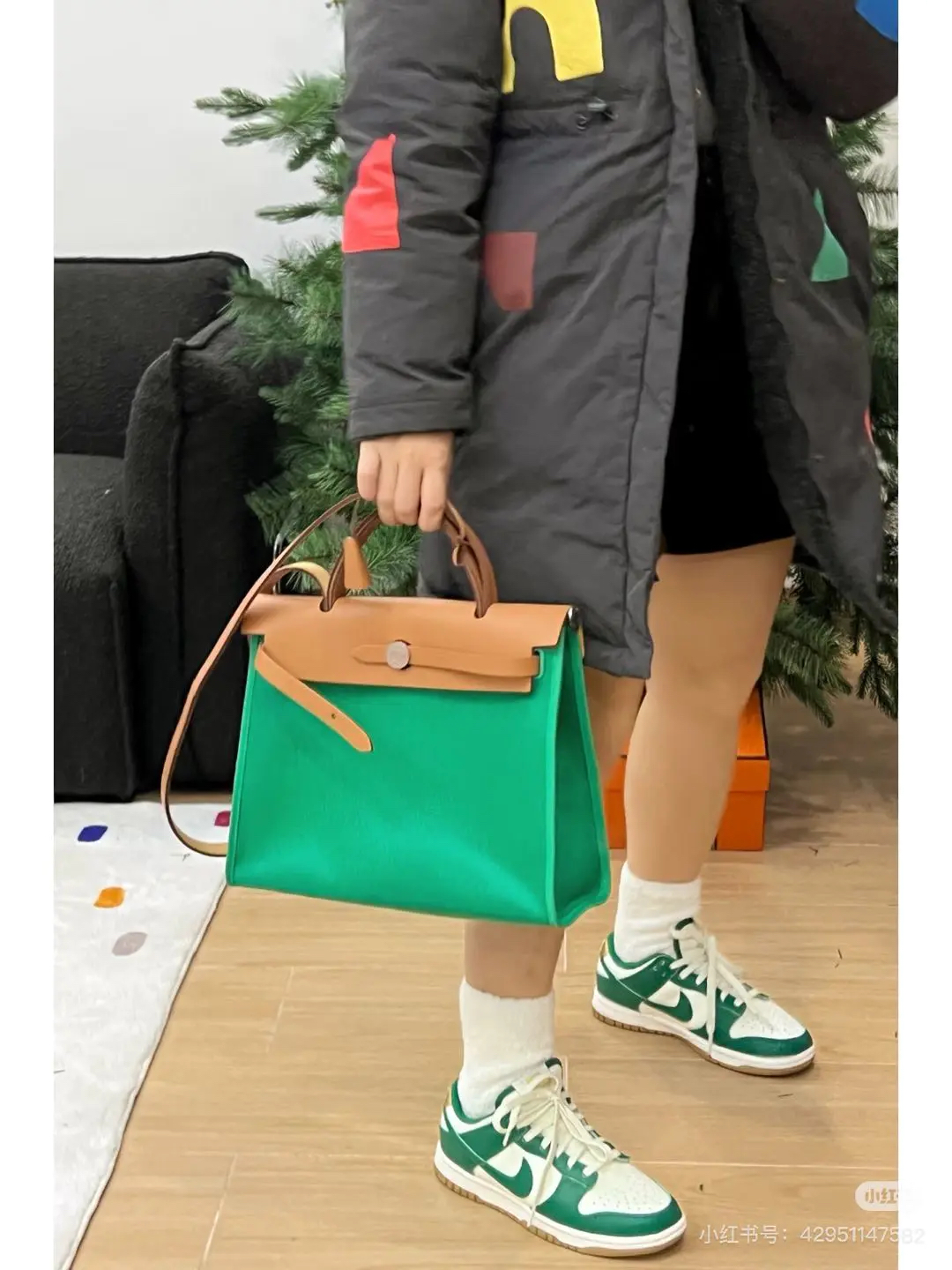 【商品详情】正品二手 爱马仕 Herbag 31 帆布拼皮 薄荷绿拼米色 斜挎包🥃97新 31*26 U刻 配件:吊牌 票 防尘袋 盒子。轻便舒适休闲。