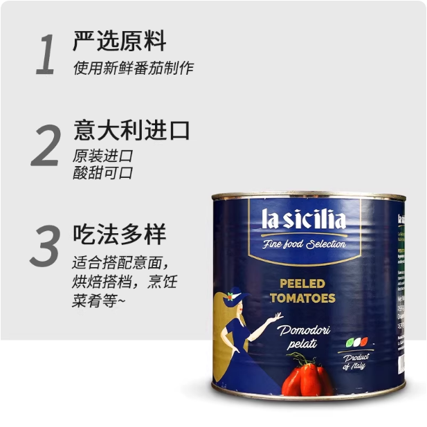 2.55kg 辣西西 去皮番茄罐头 原产国意大利 意大利面披萨沙拉原料番茄罐头