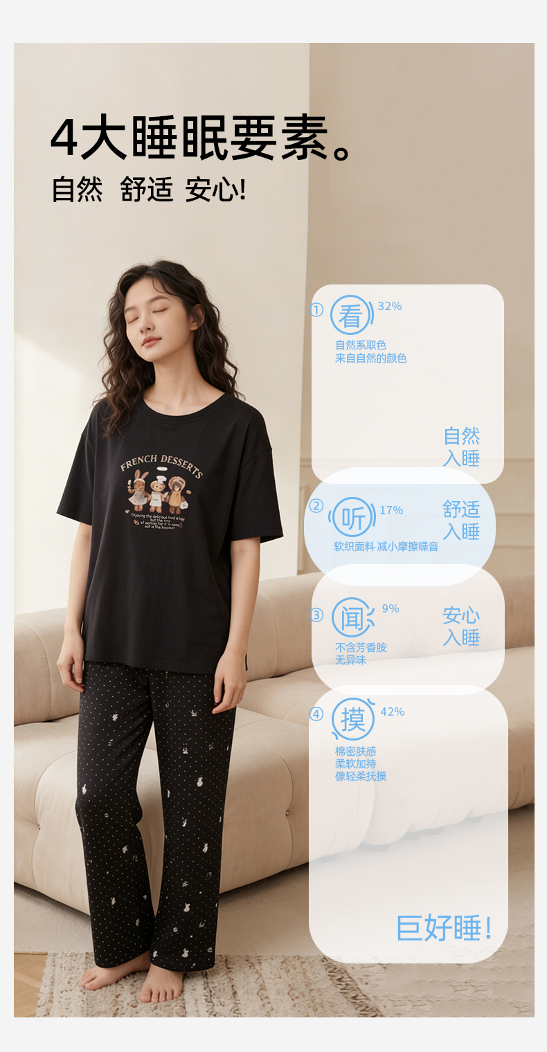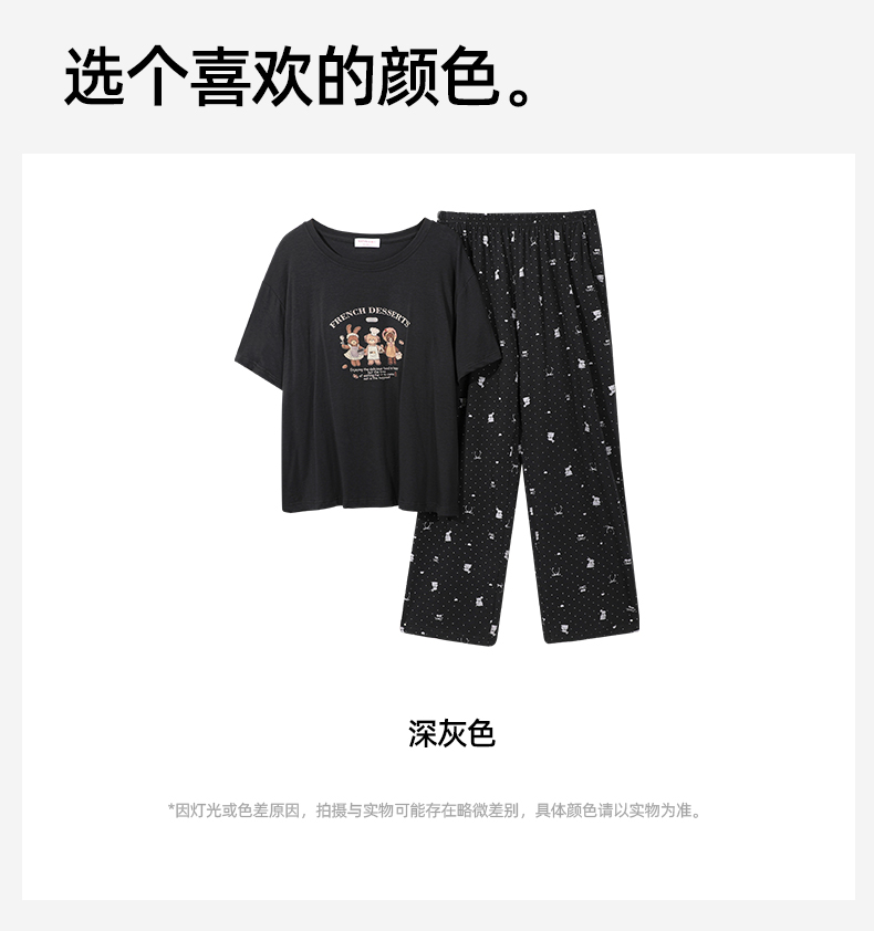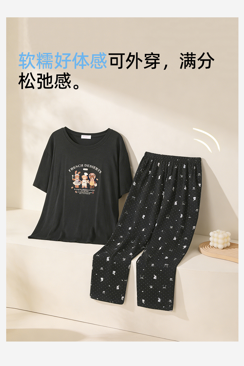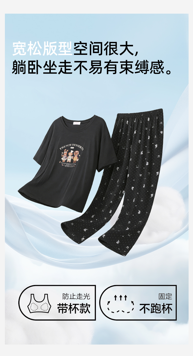 【带杯垫】熳洁儿 莱赛尔棉家居服短袖长裤套装免穿文胸韩系卡通26263201