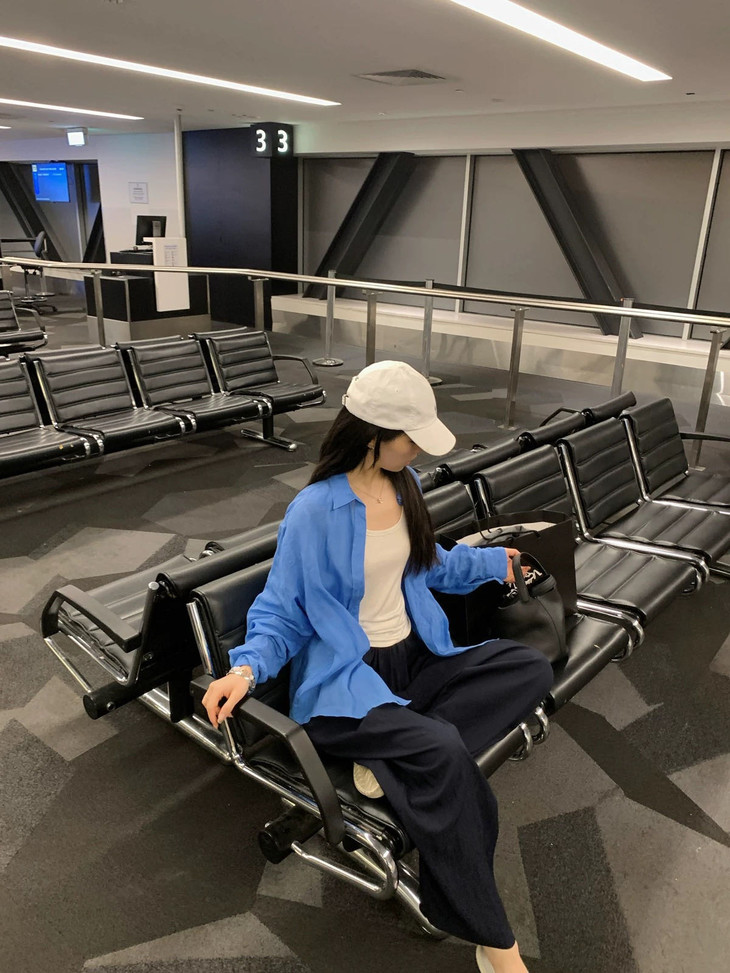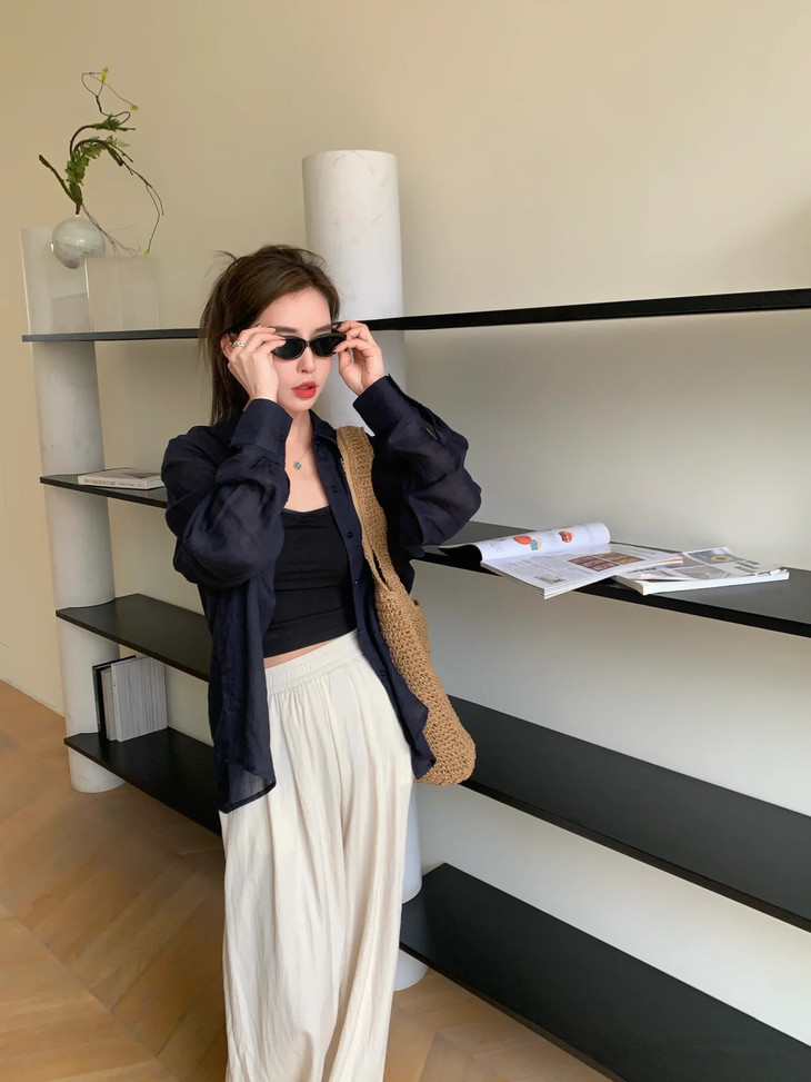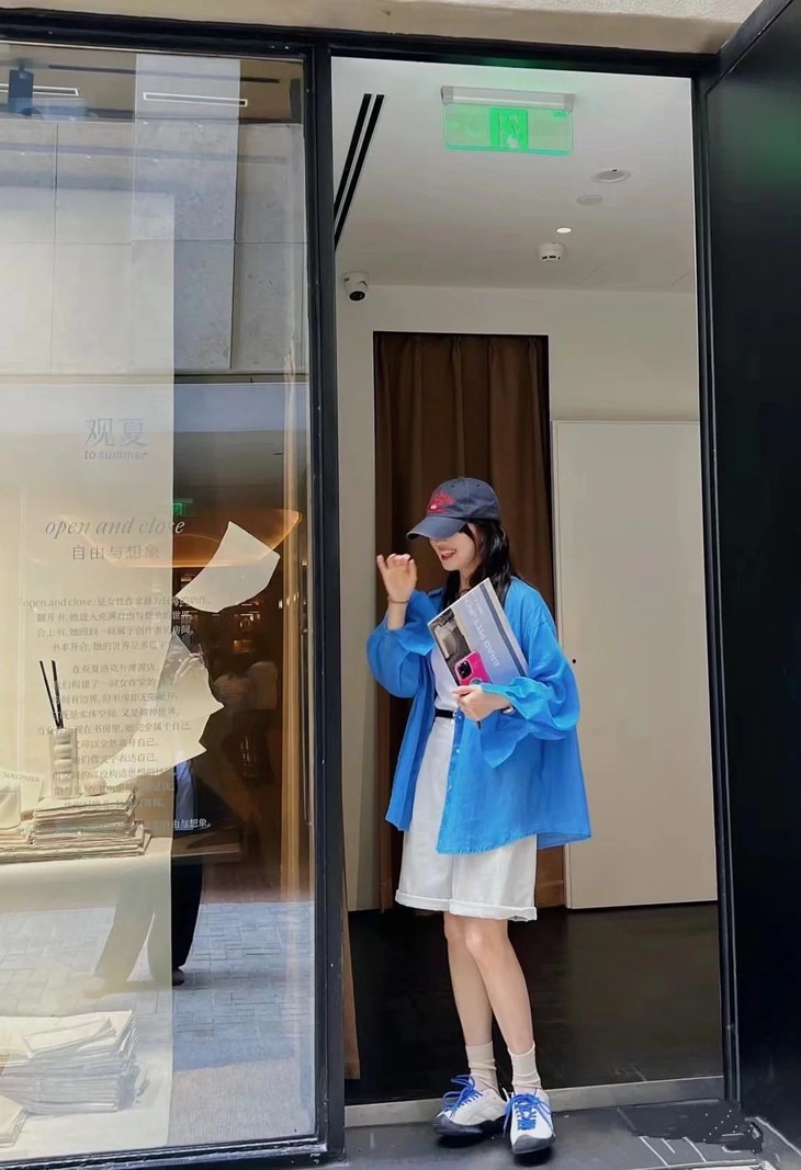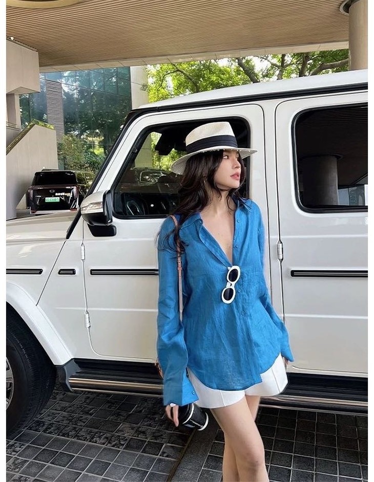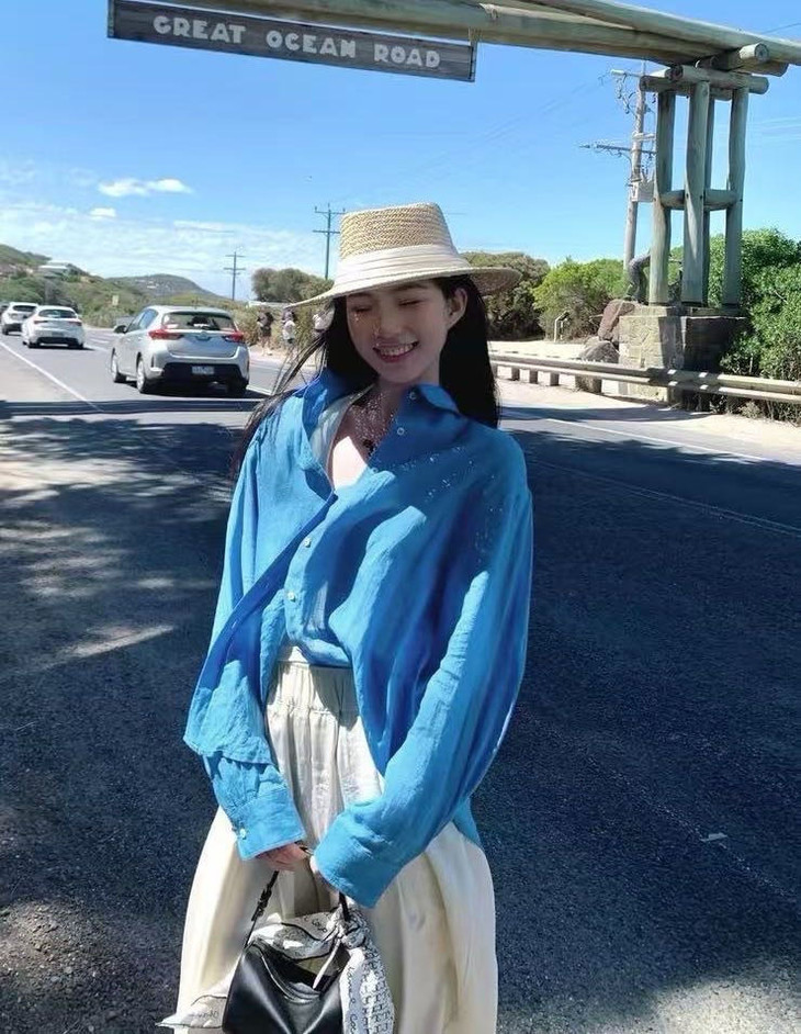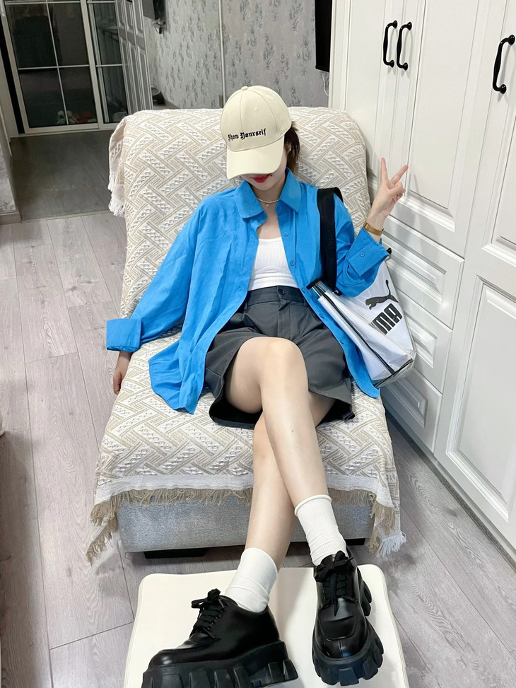 夏日显白神器湖蓝色衬衫春夏到了我还蛮喜欢出这种显白鲜亮的颜色真的是简洁大方到极致散发出干净、纯粹的气质!!