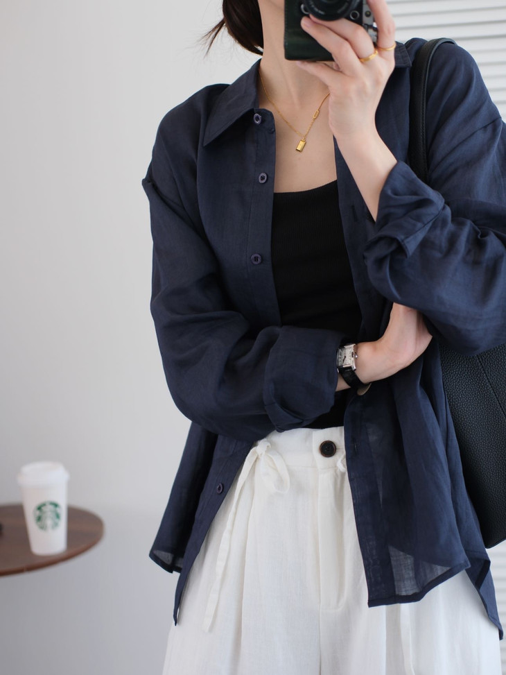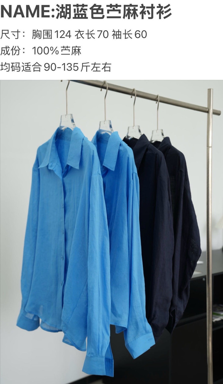 【苎麻100%衬衫】会呼吸的苎麻🍃夏日衬衫控之神!!湖蓝色+藏蓝色,让你在炎炎夏日中焕发出✨焕发出别样精彩~