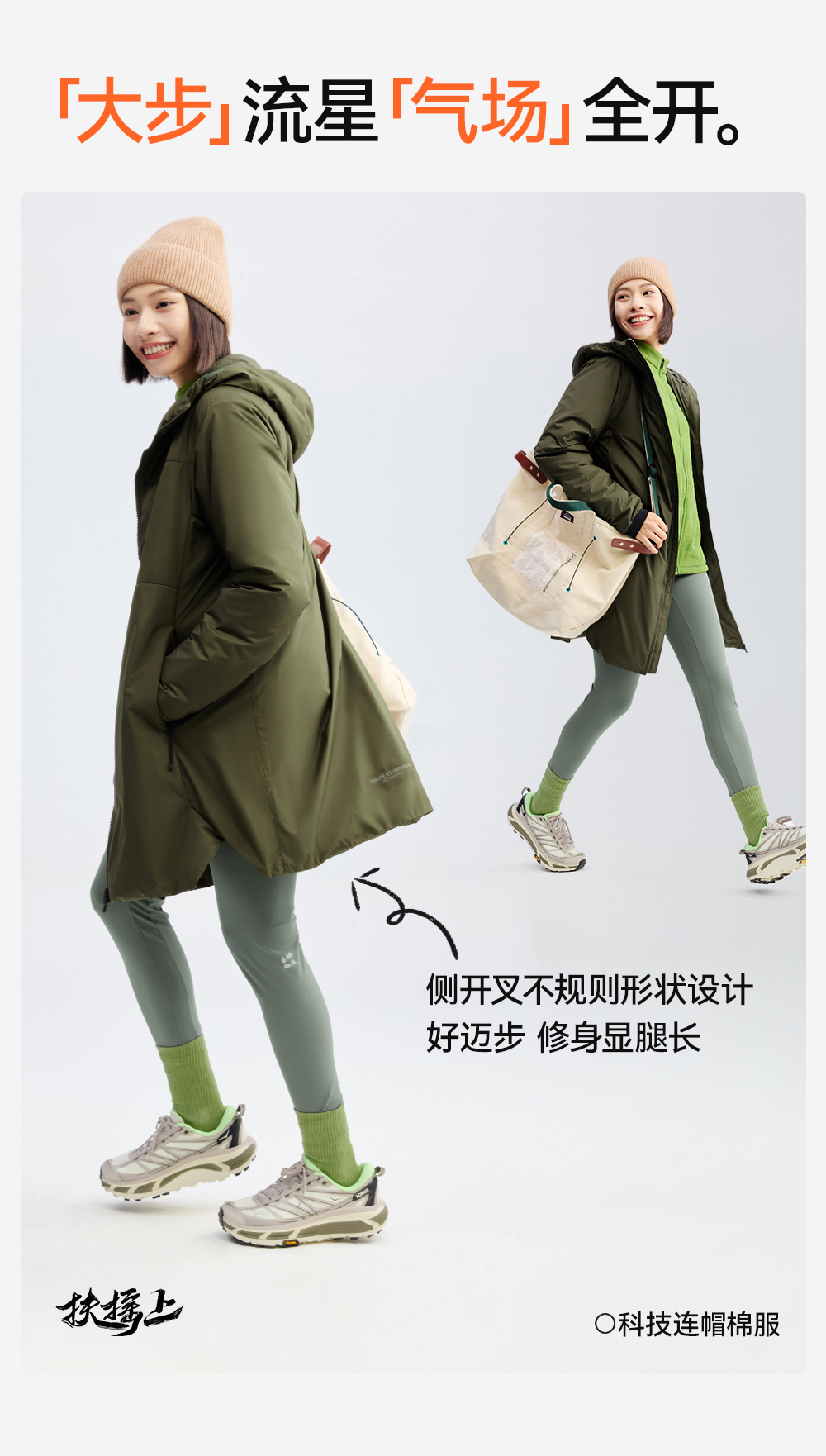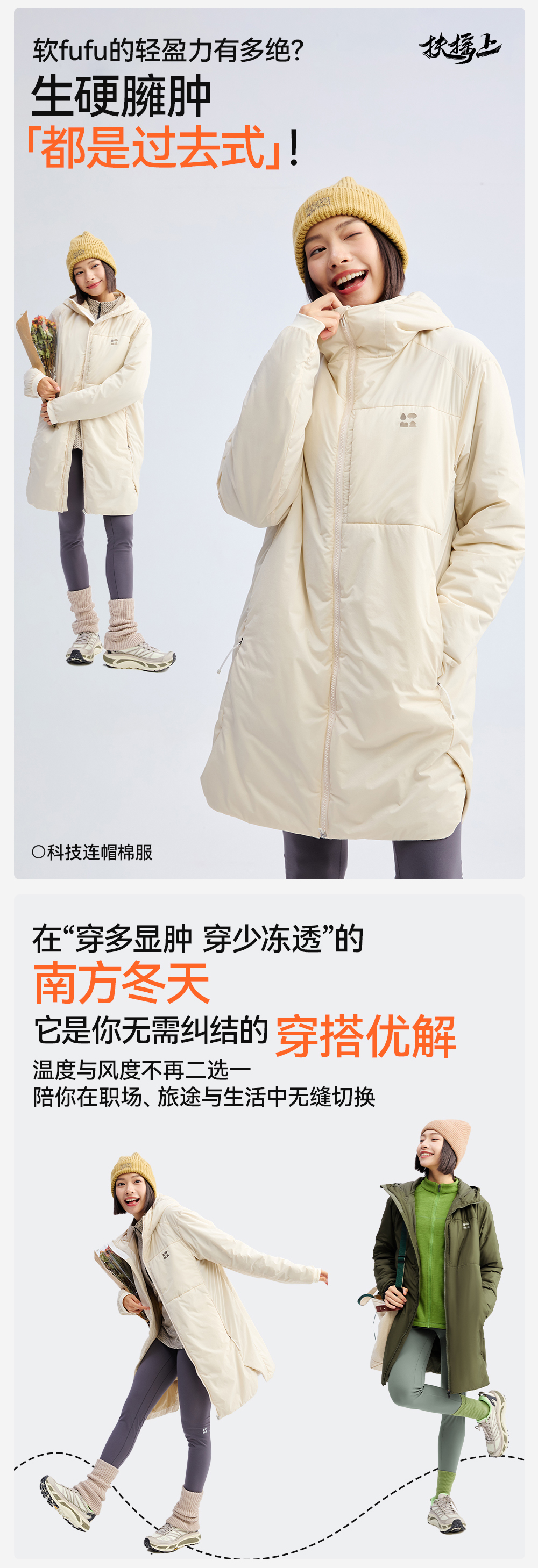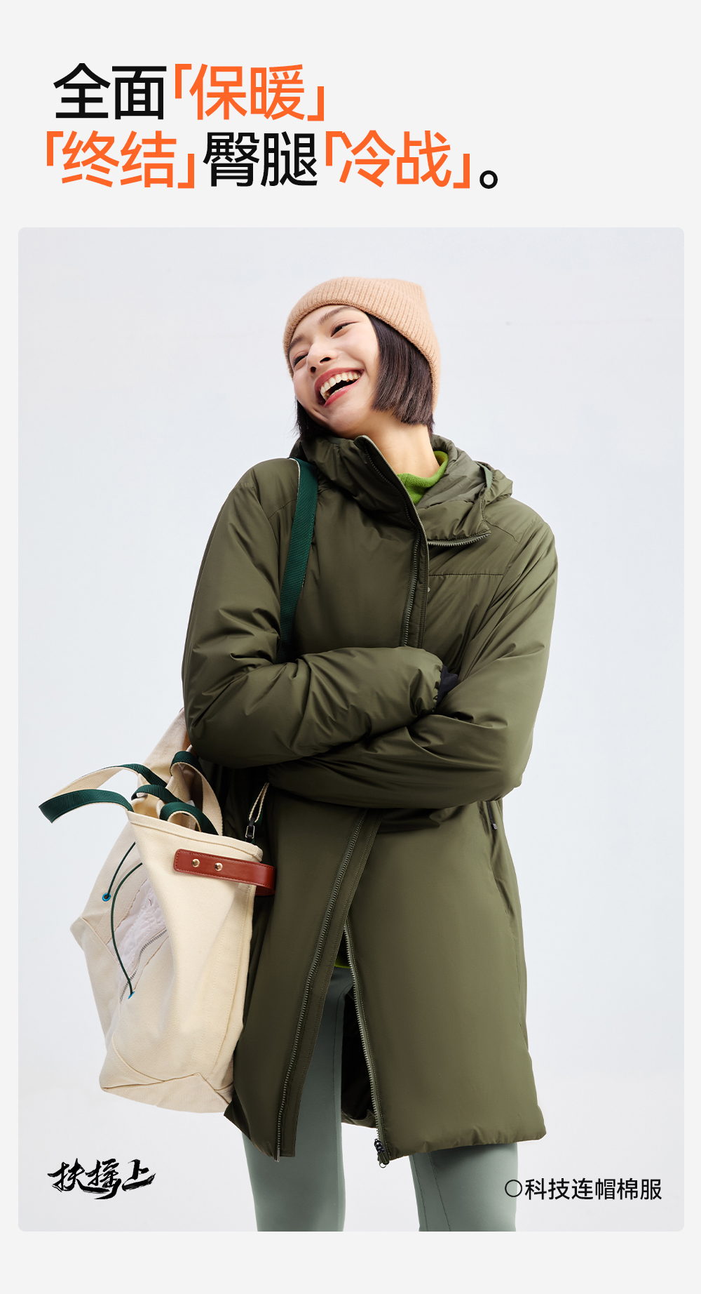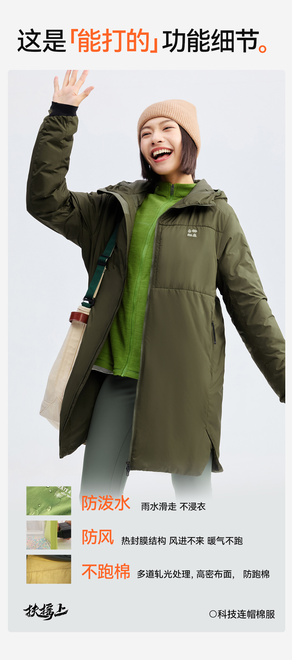 【女式中长款棉服】森林棠25秋冬新款扶摇上保暖长款侧开叉连帽科技棉服60842501【森林棠11月专场】