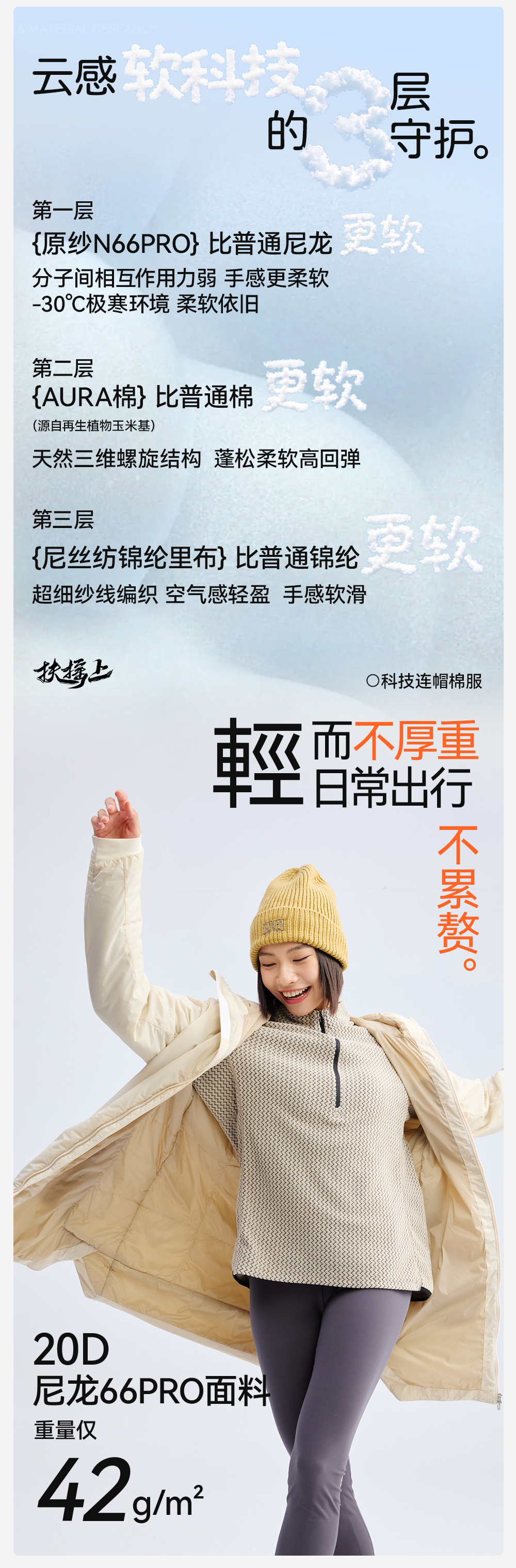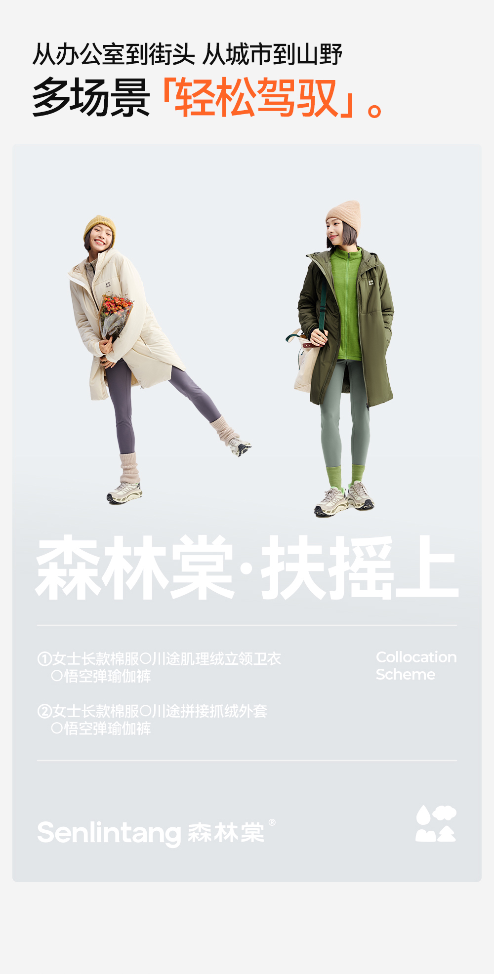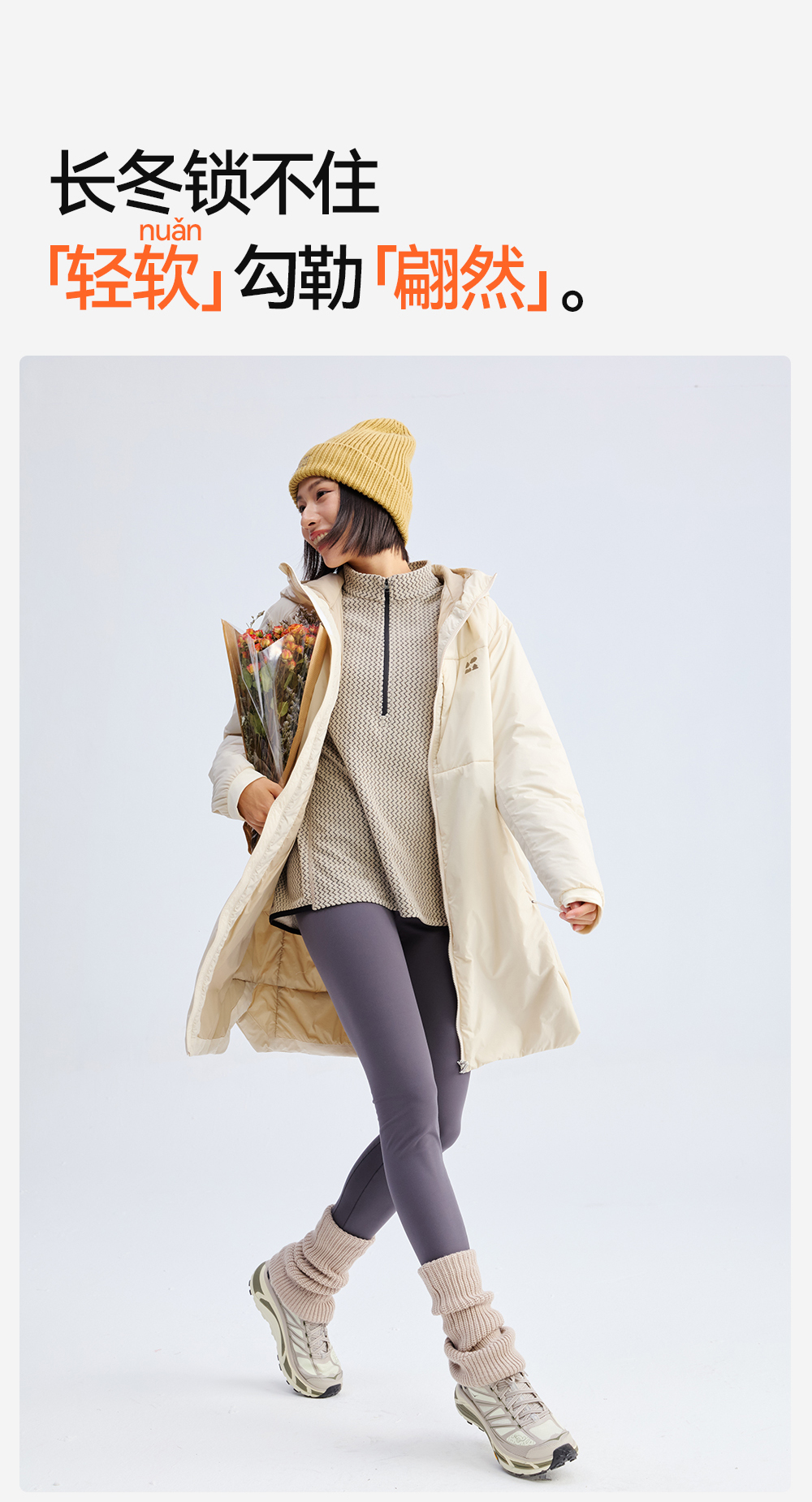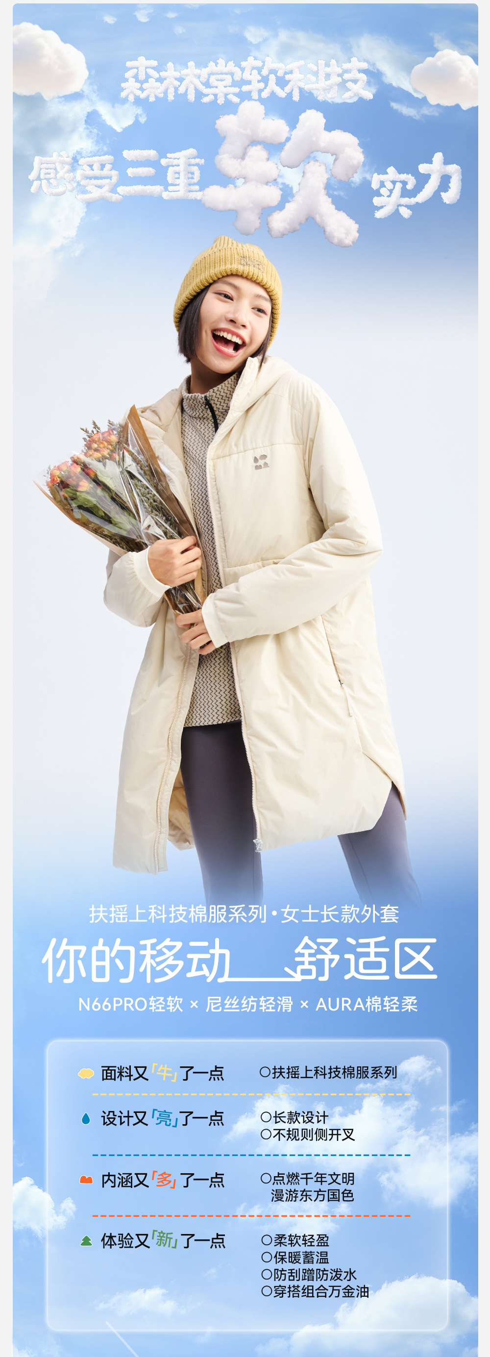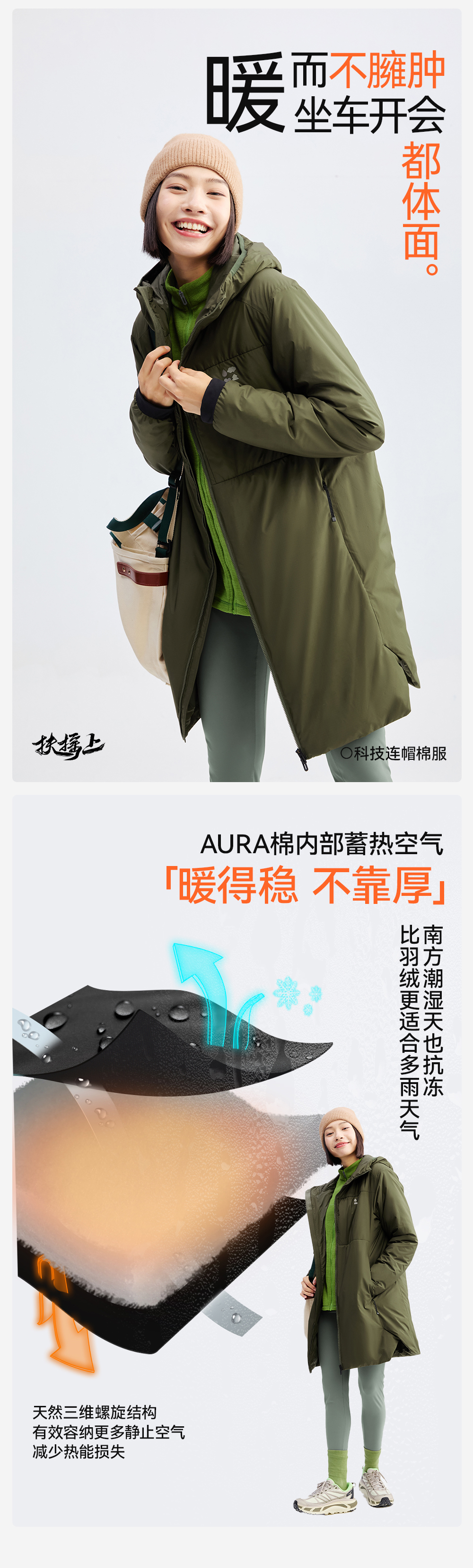 【女式中长款棉服】森林棠25秋冬新款扶摇上保暖长款侧开叉连帽科技棉服60842501【森林棠11月专场】