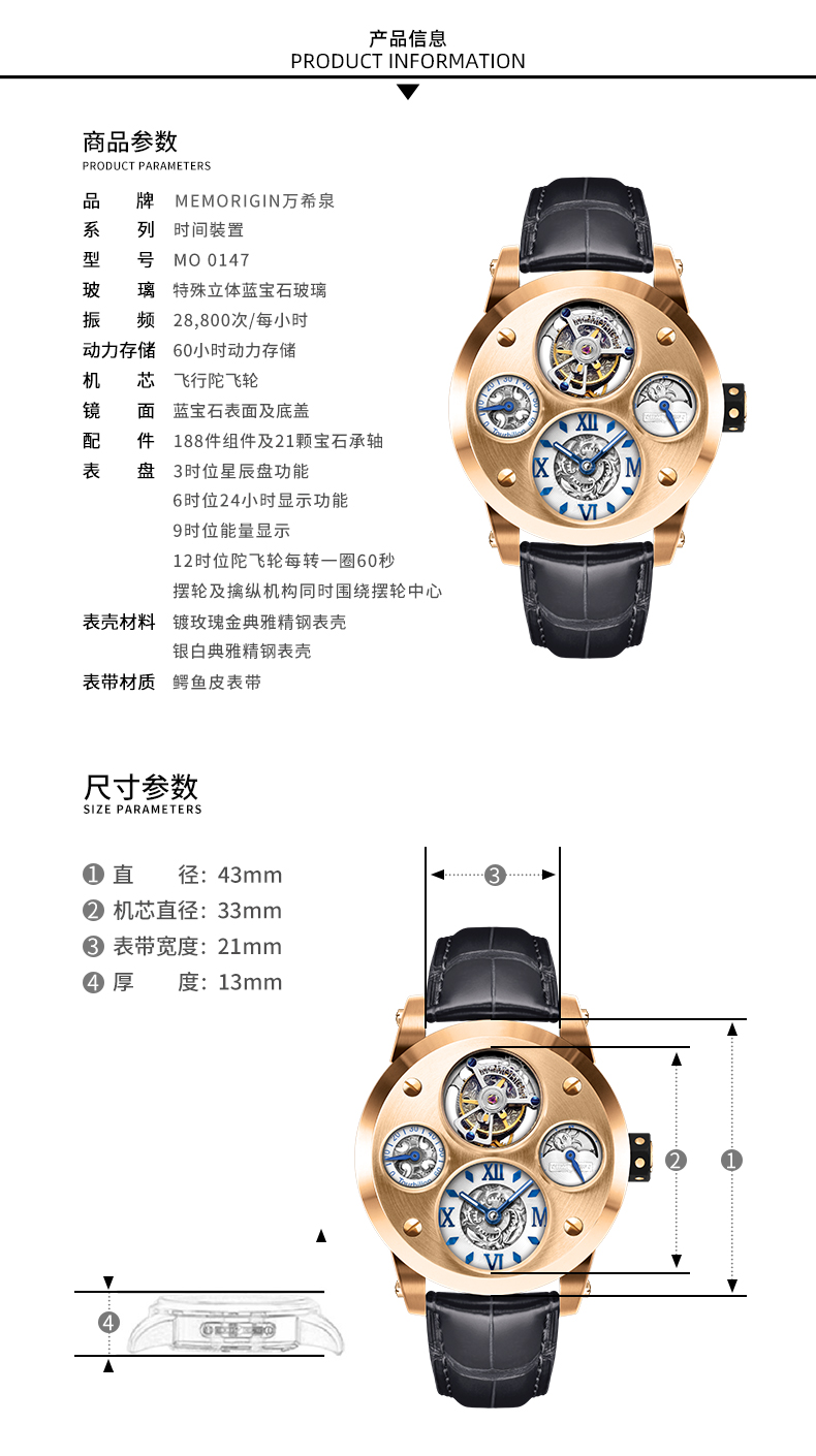 MEMORIGIN万希泉雷颂德设计时间裝置陀飞轮真皮腕表男款机械手表