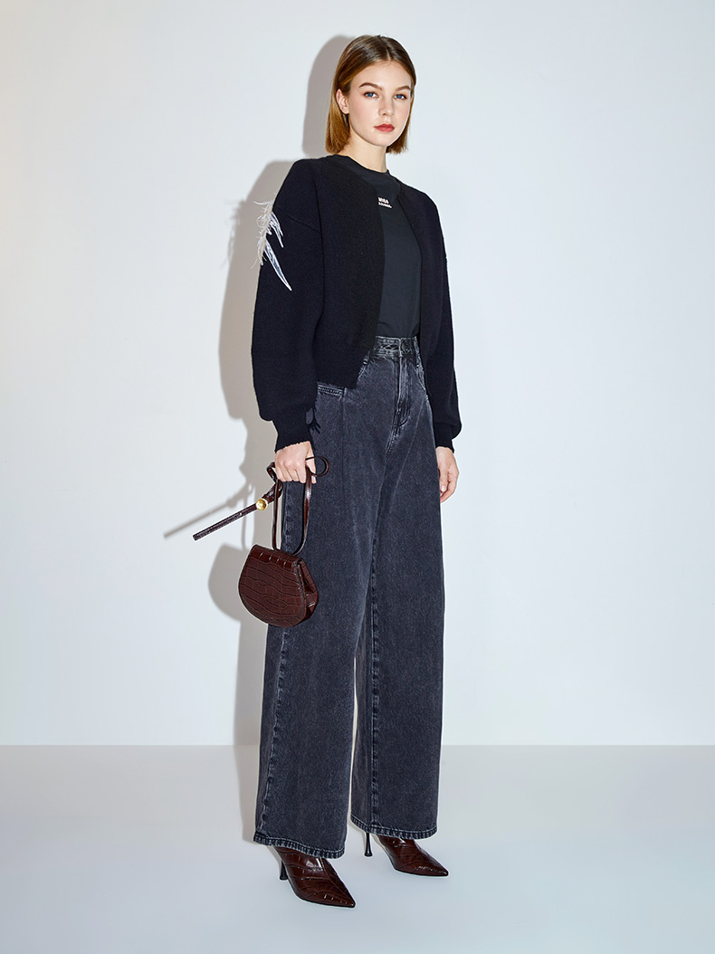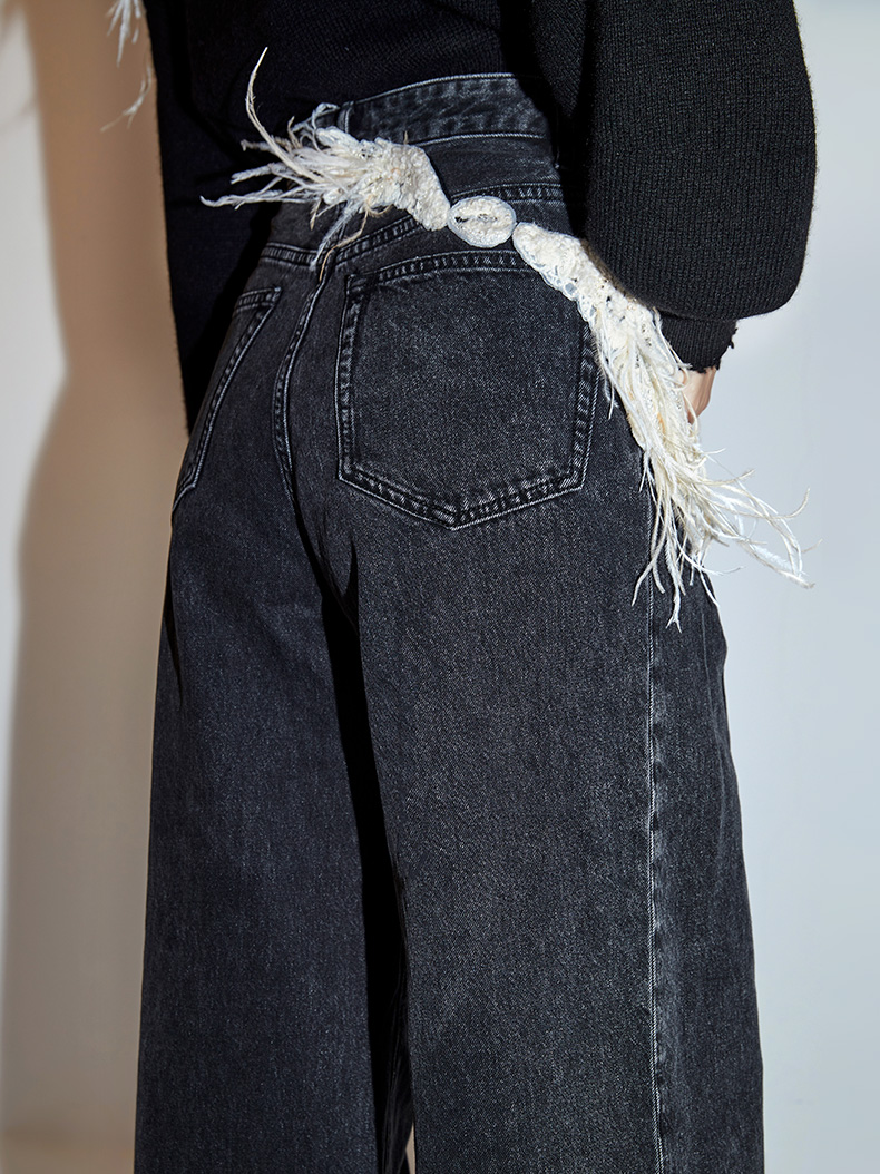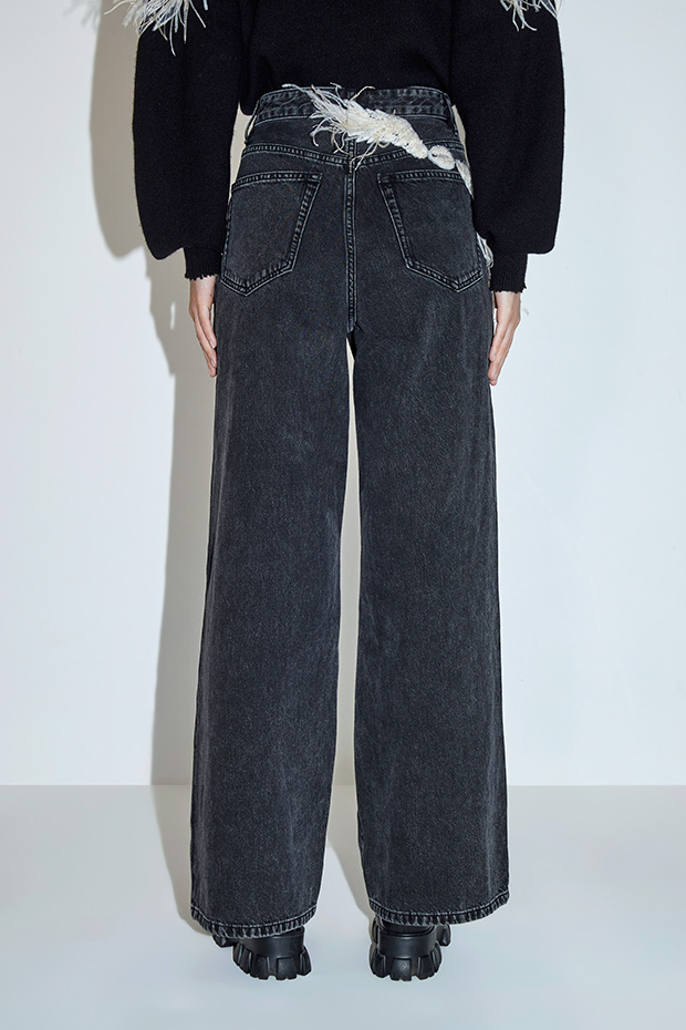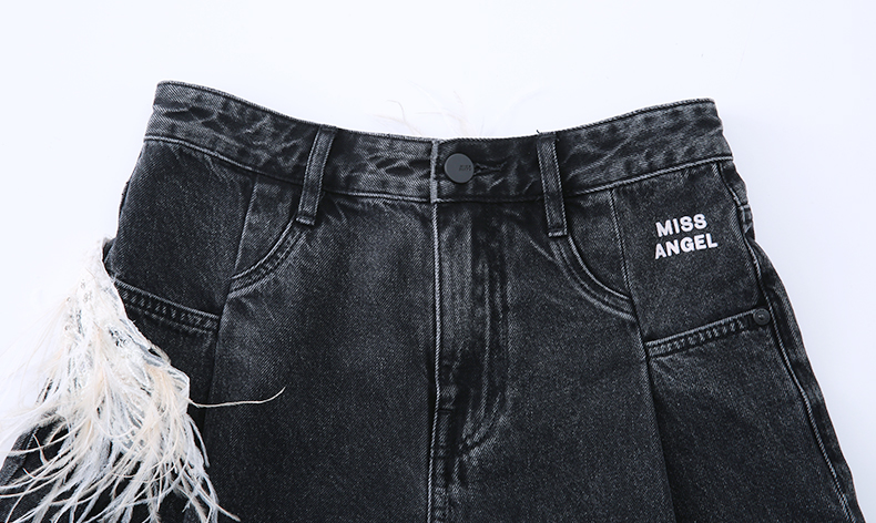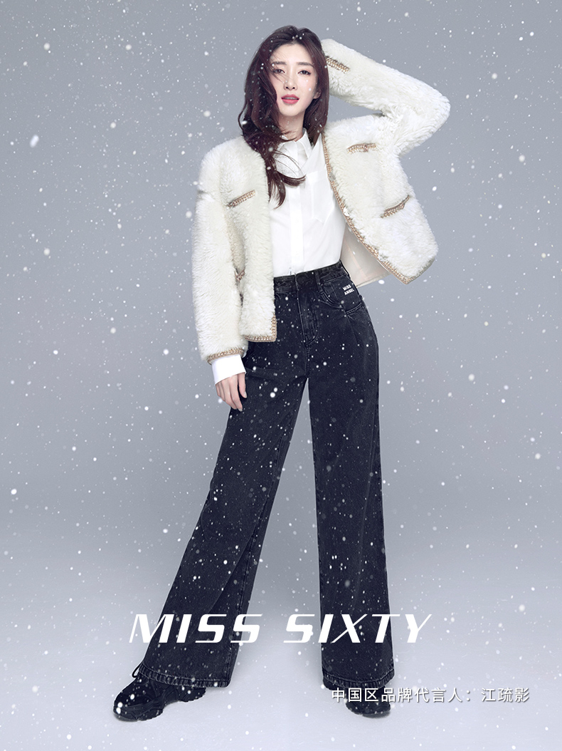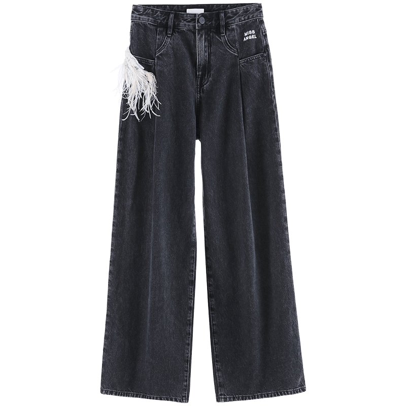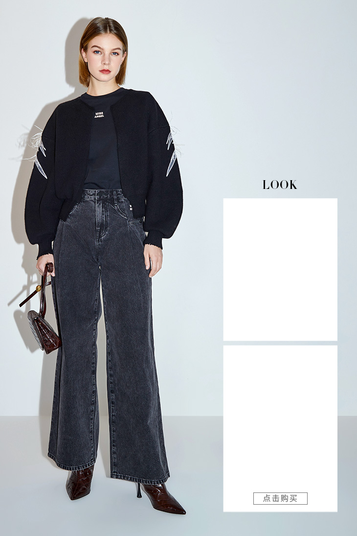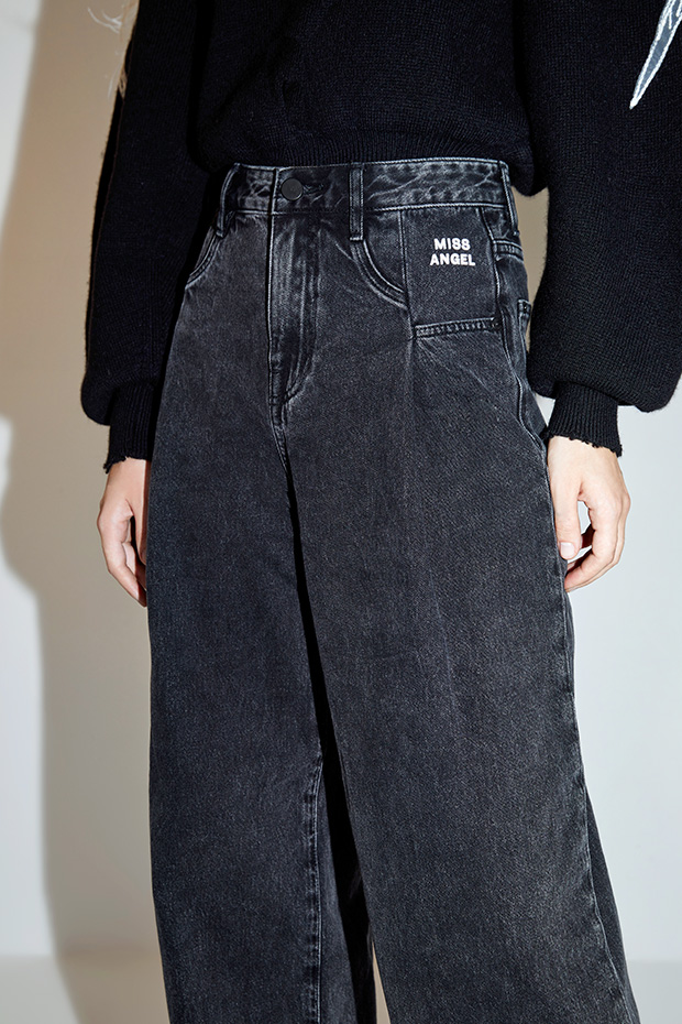 【江疏影同款】Miss Sixty2020冬季新款天使系列重工纯棉黑色高腰直筒牛仔裤604JJ5370000
