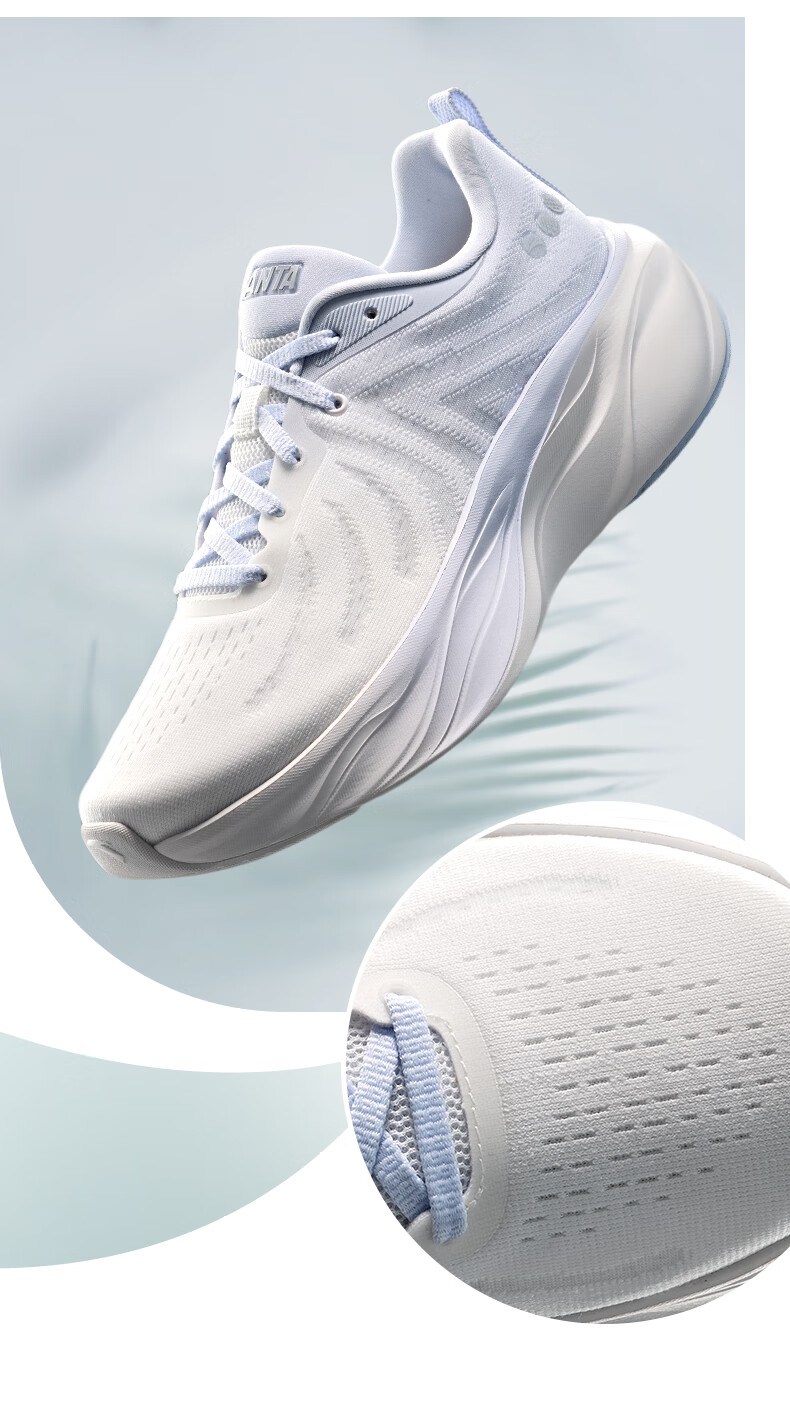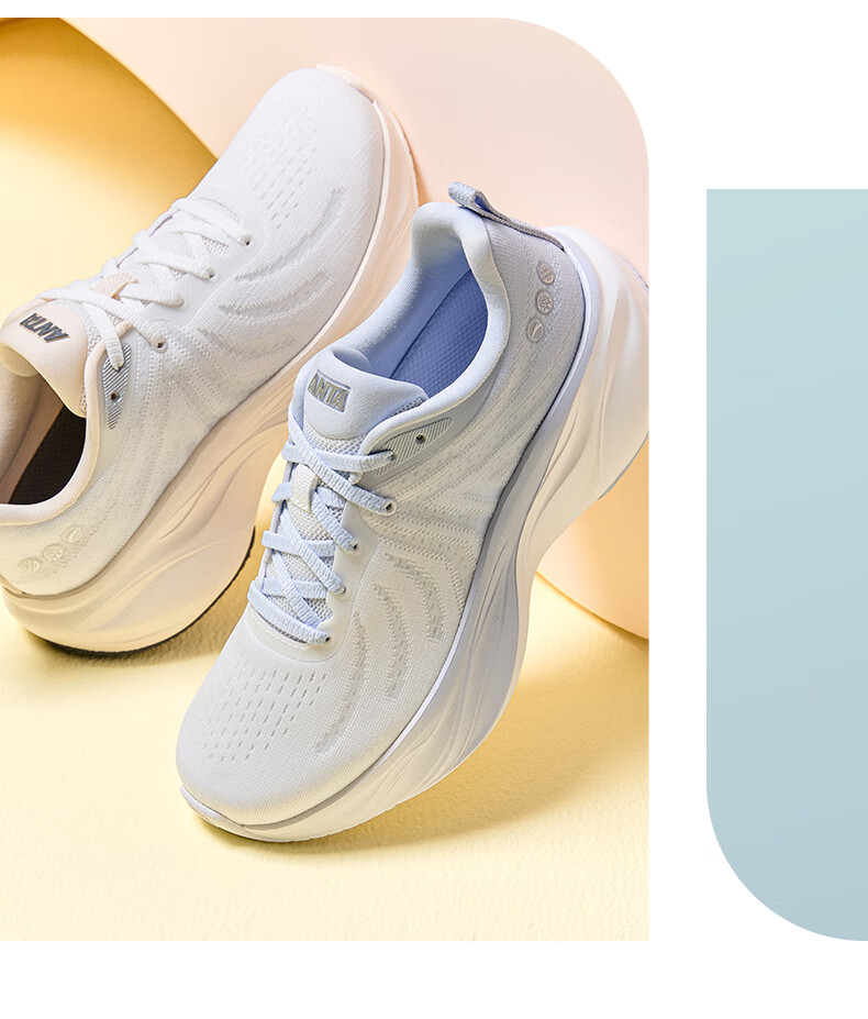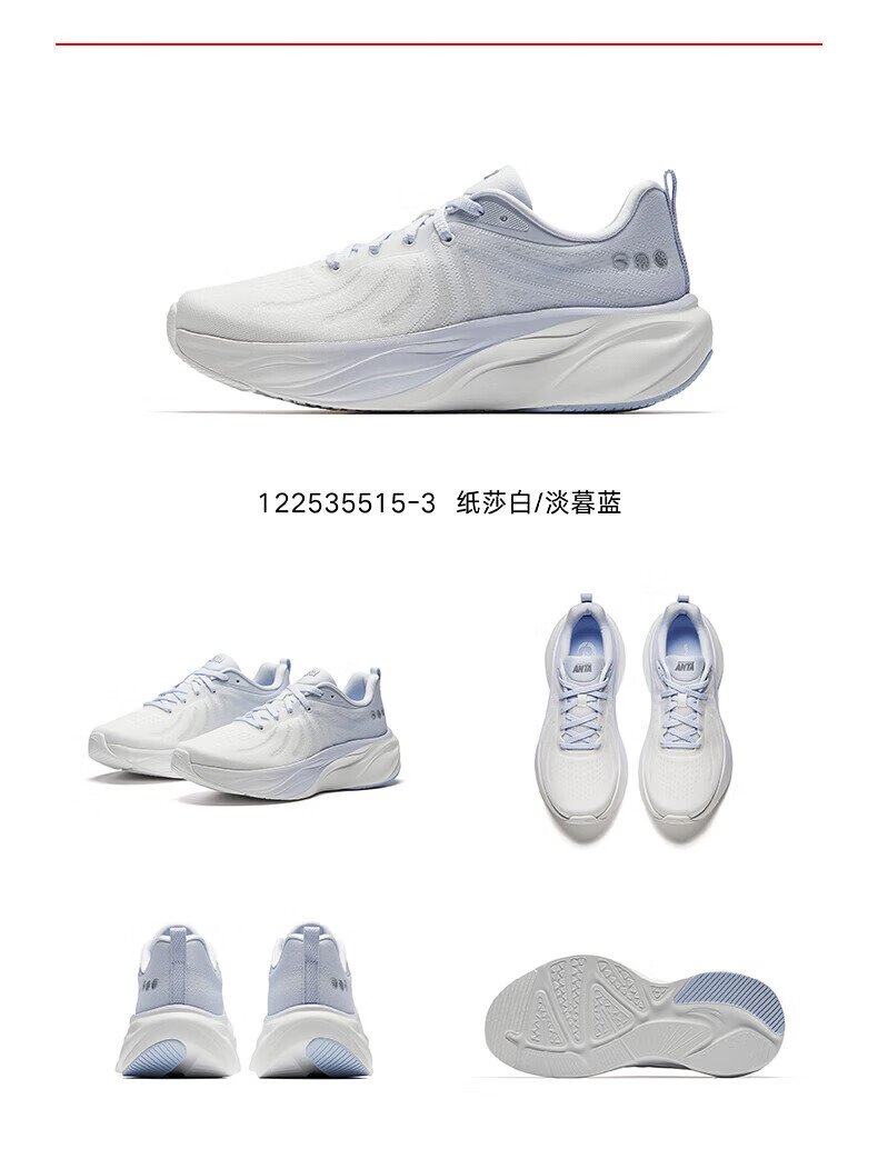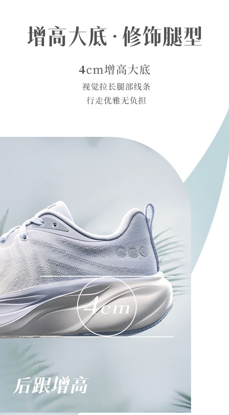 安踏叶子丨跑步鞋女子缓震回弹运动鞋厚底增高轻便跳绳鞋女122535515 纸莎白/淡暮蓝-3