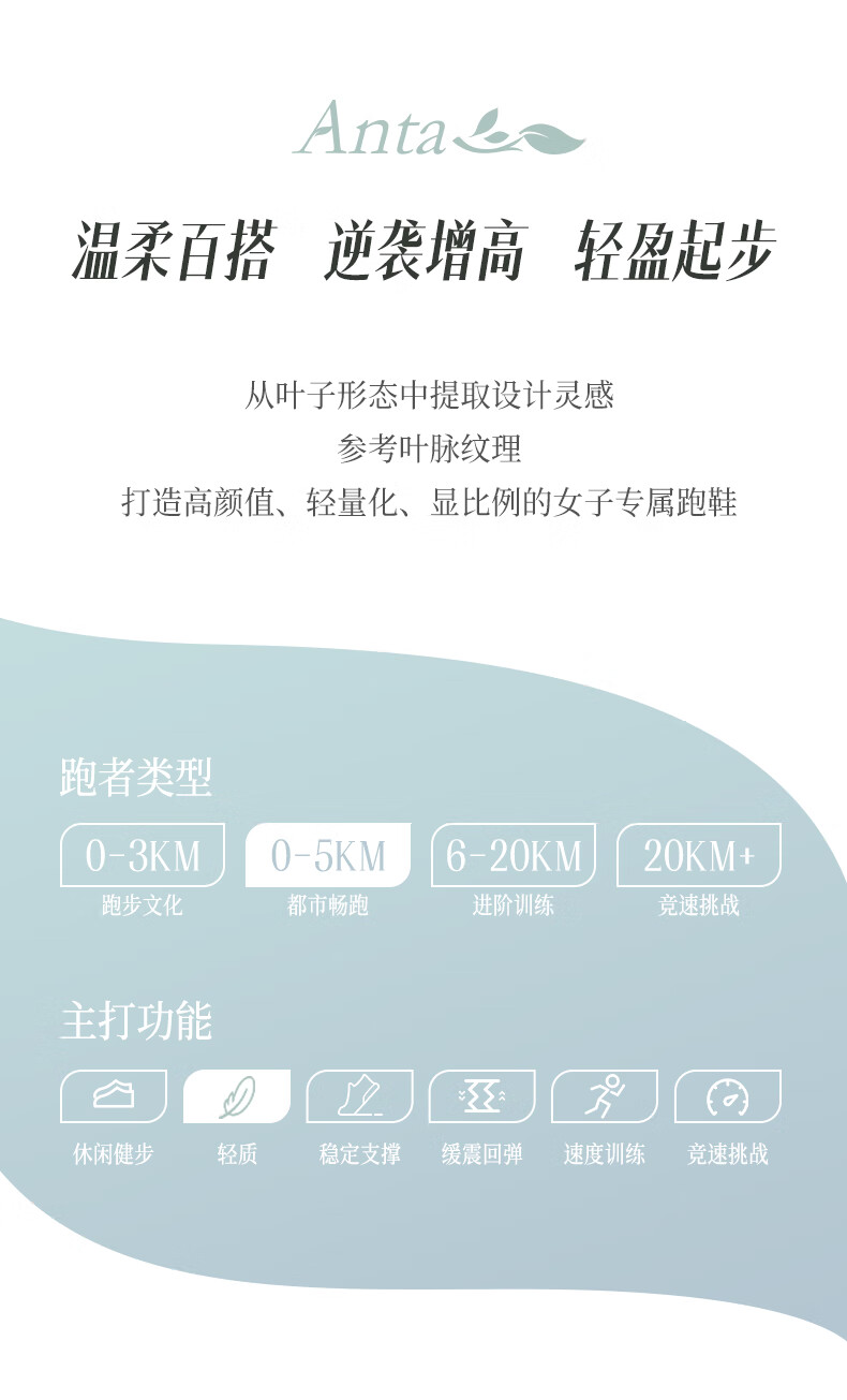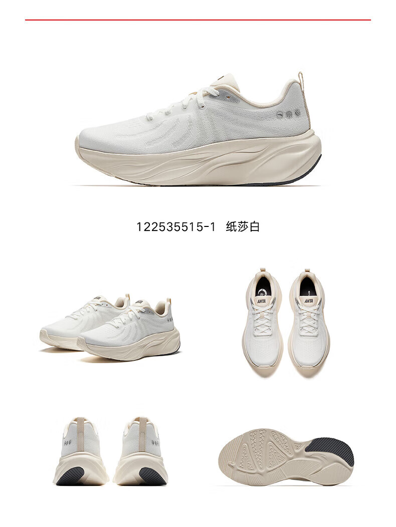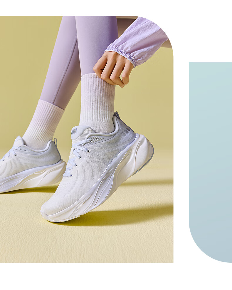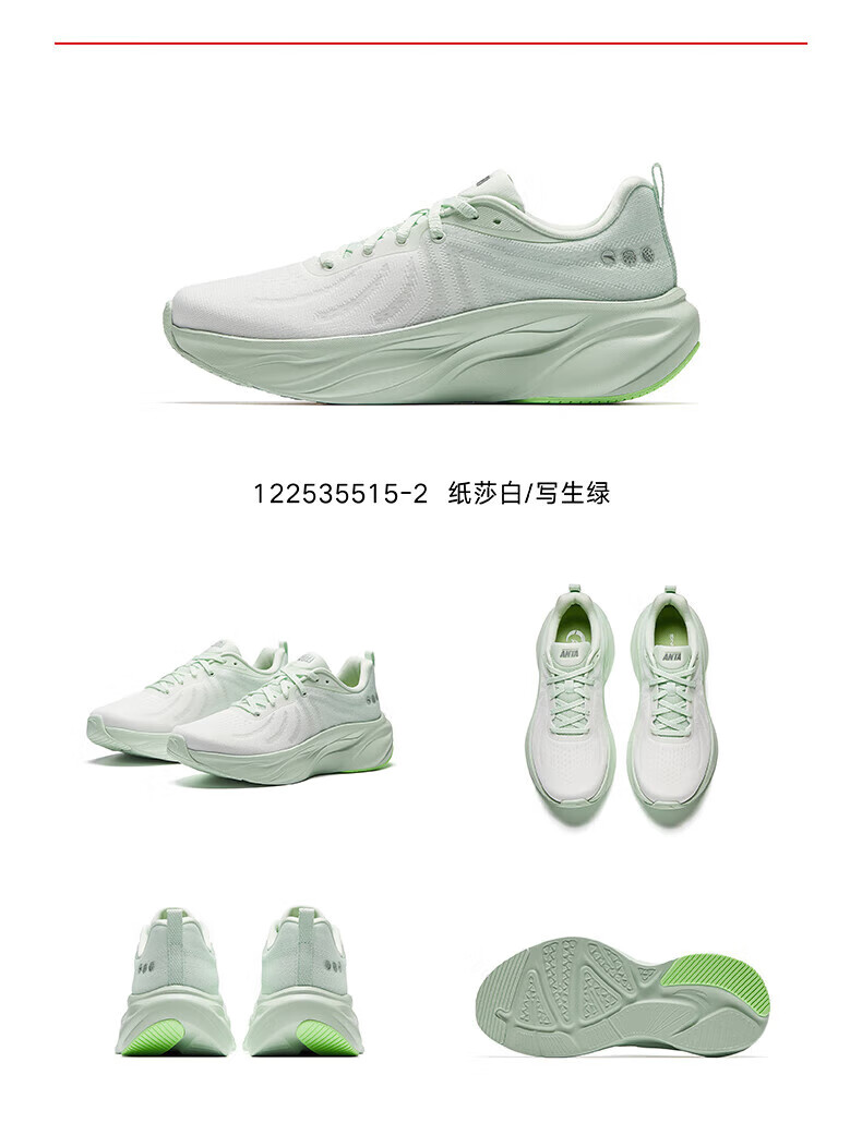 安踏叶子丨跑步鞋女子缓震回弹运动鞋厚底增高轻便跳绳鞋女122535515 纸莎白/淡暮蓝-3