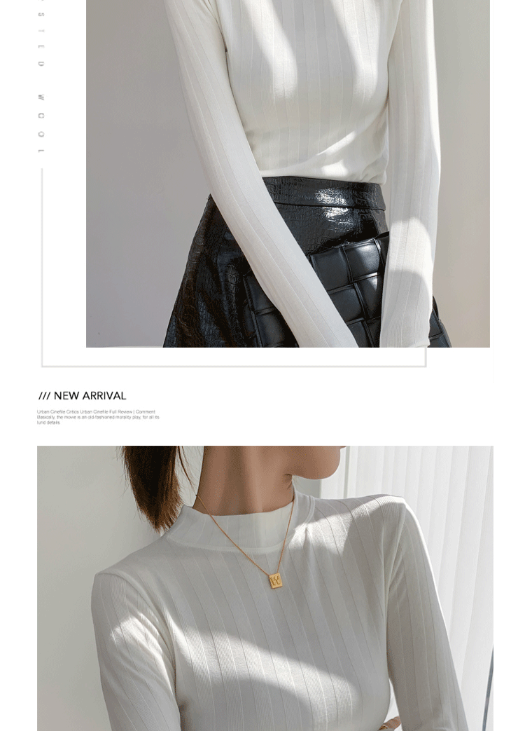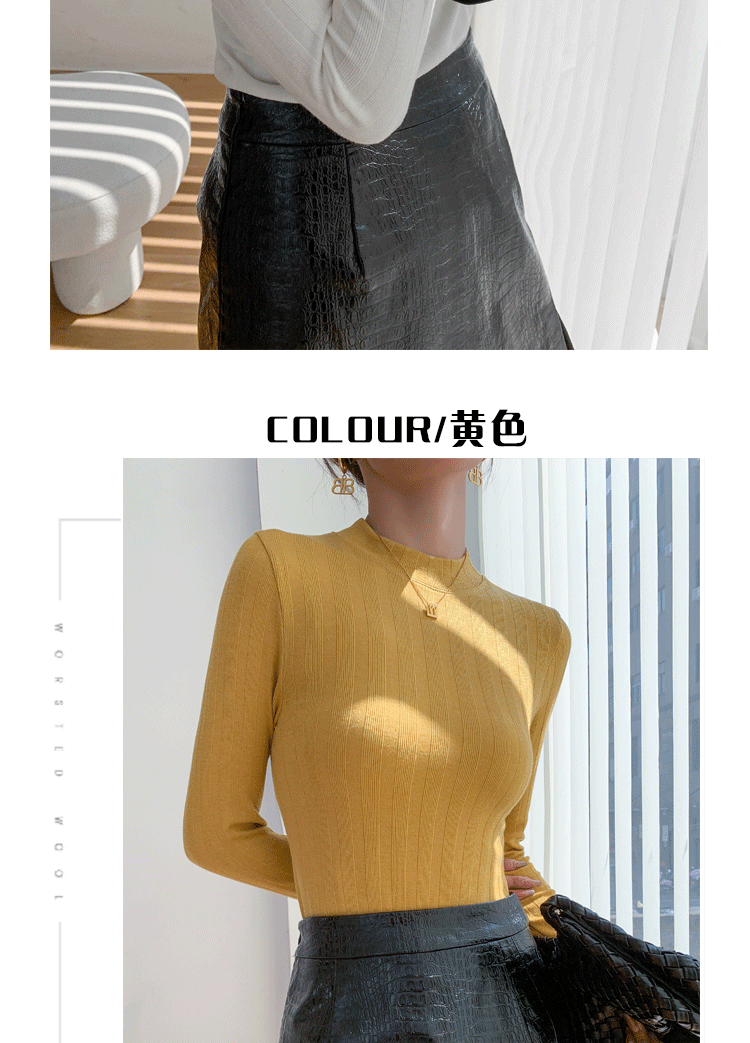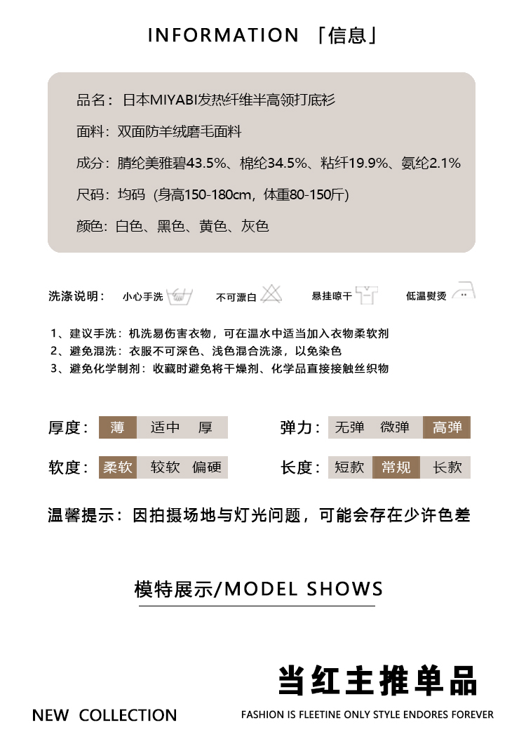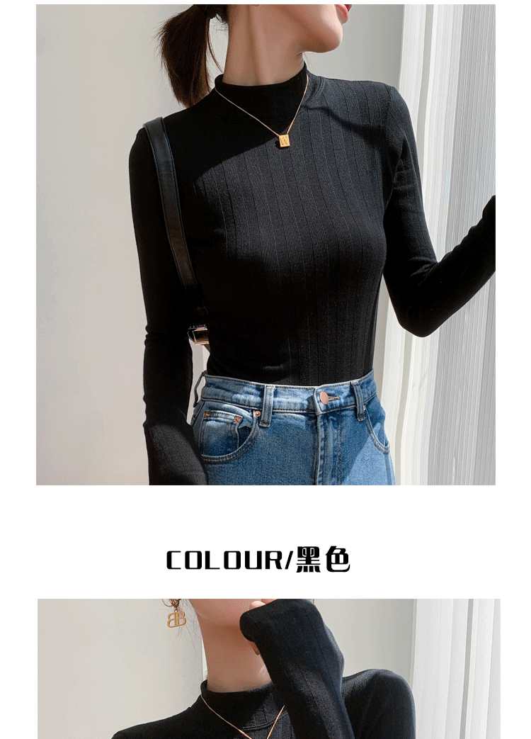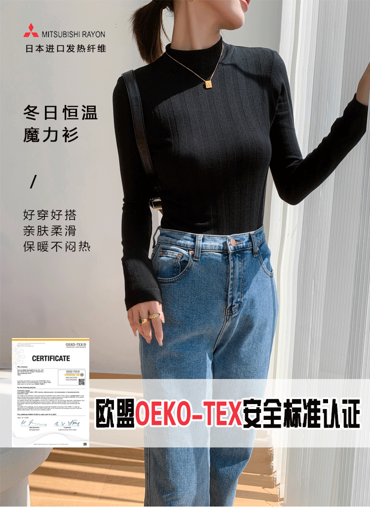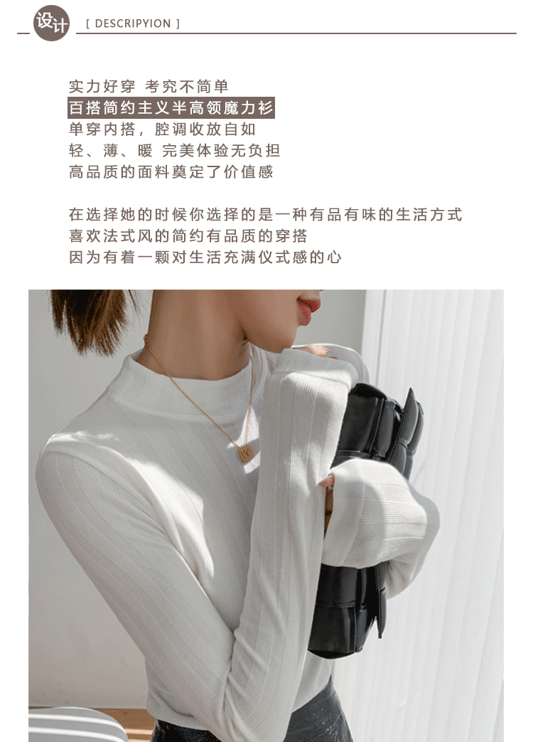 MIYABI发热纤维条纹款半高领女打底衫2023春秋新款小众设计外穿时尚百搭针织衫