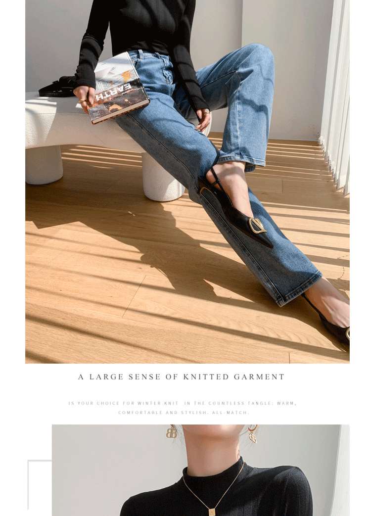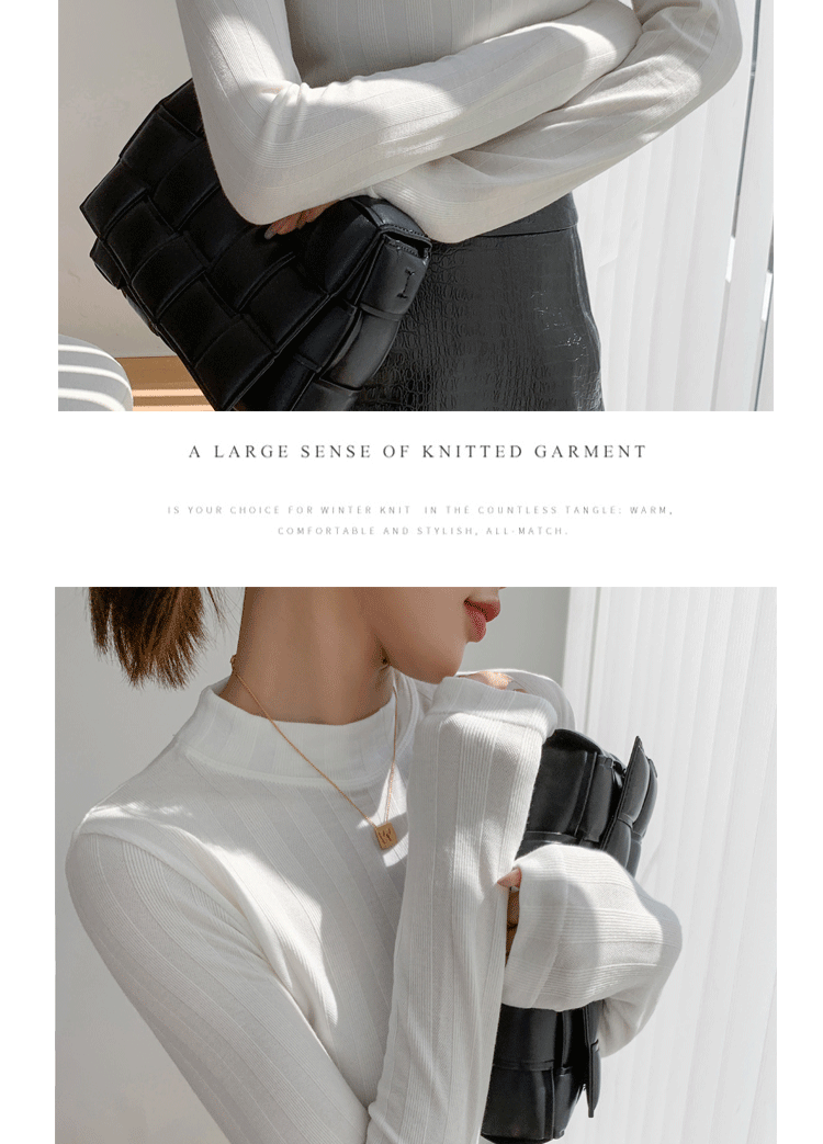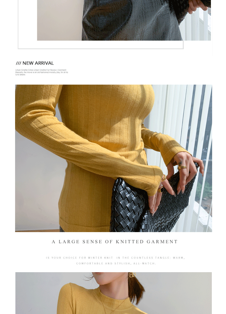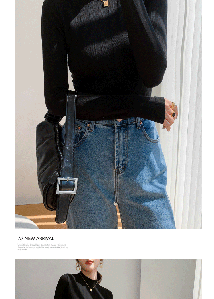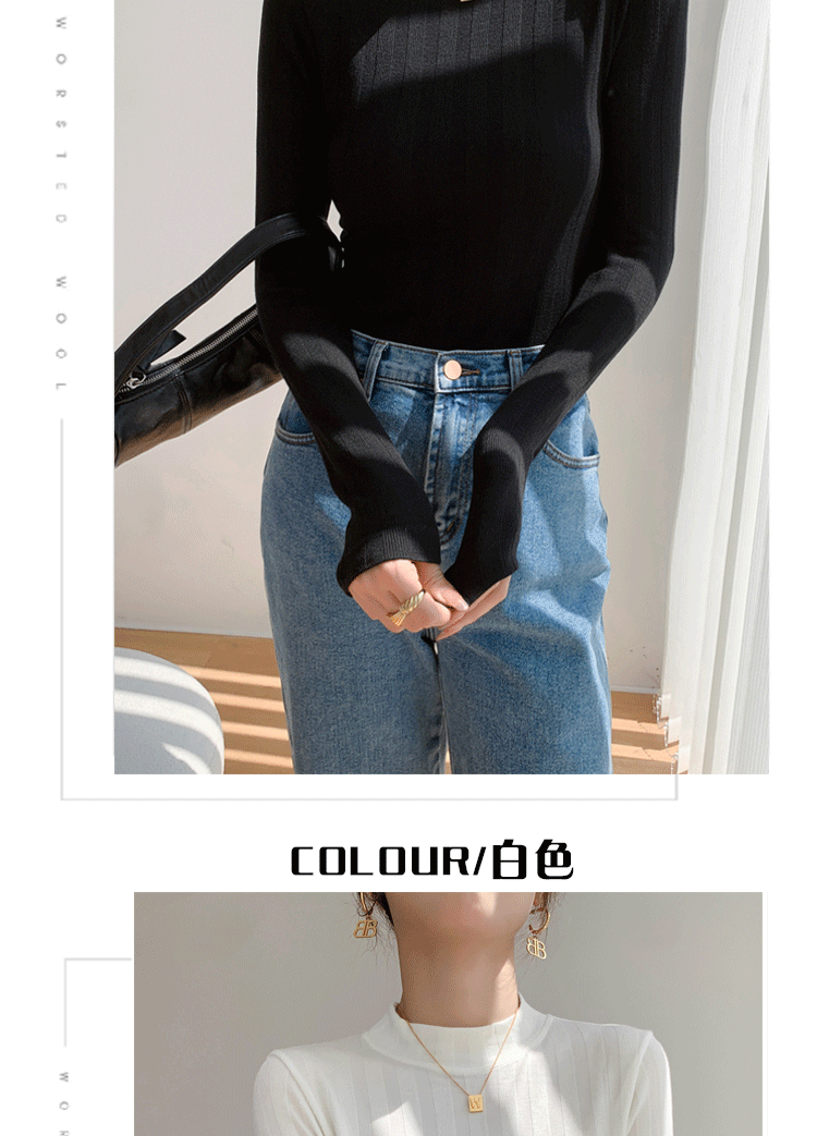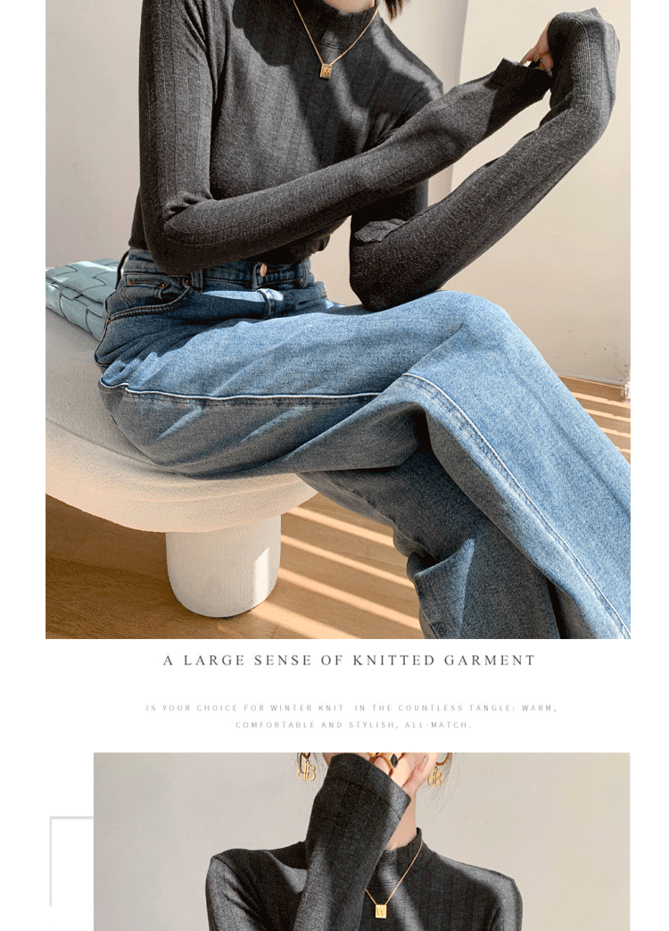 MIYABI发热纤维条纹款半高领女打底衫2023春秋新款小众设计外穿时尚百搭针织衫