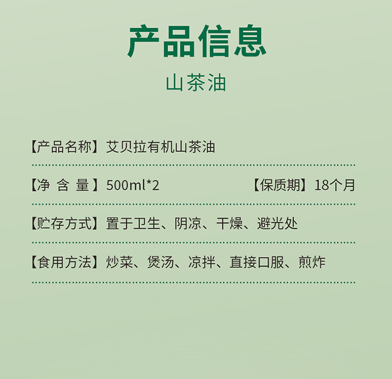 艾贝拉有机山茶油礼盒 500ml*2瓶【包邮直发】