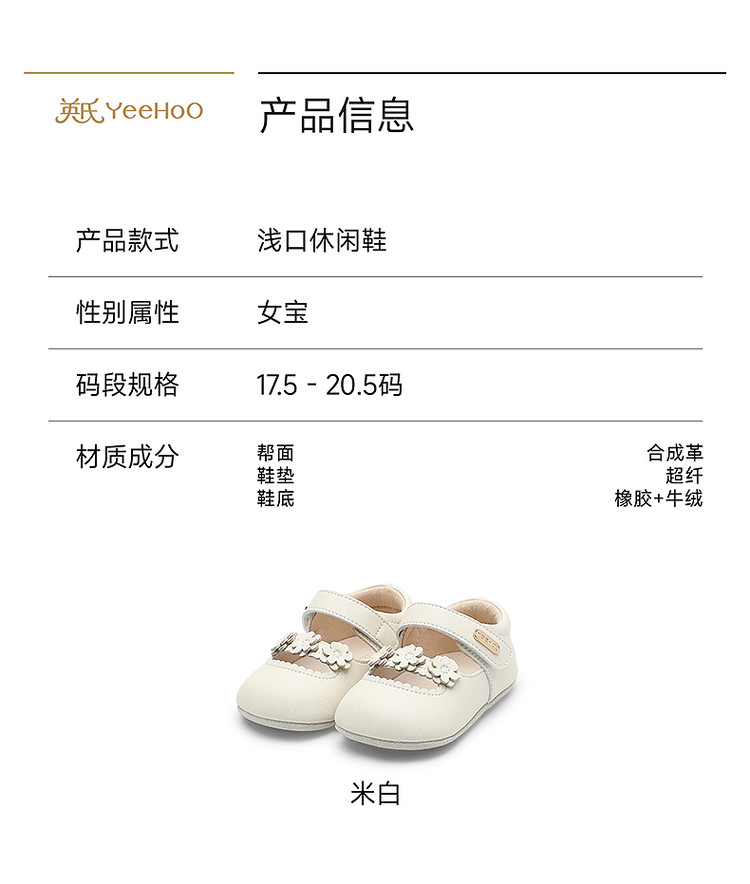 英氏童鞋步前鞋子女宝宝公主休闲鞋春夏新款百搭可爱YFXHJ1S007A