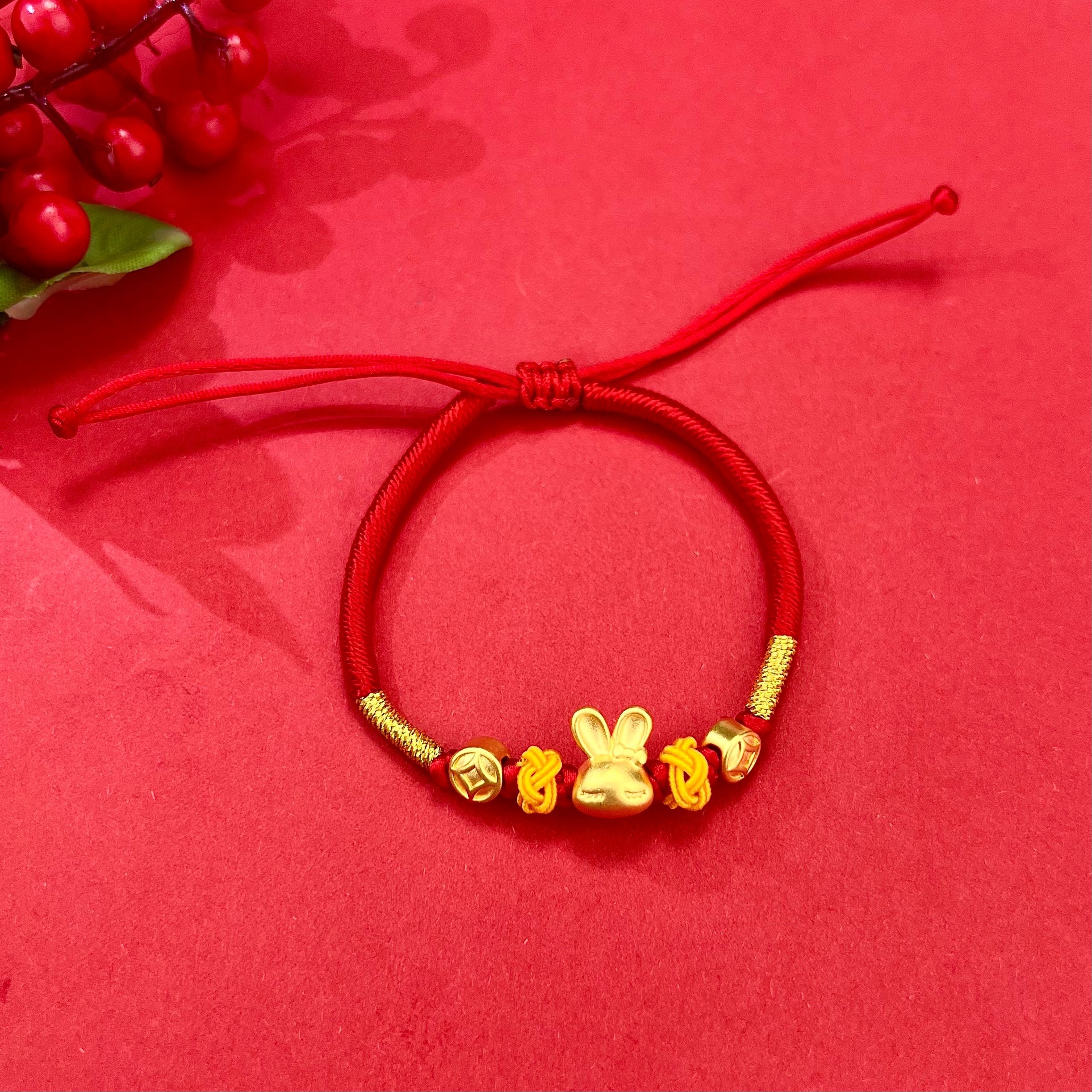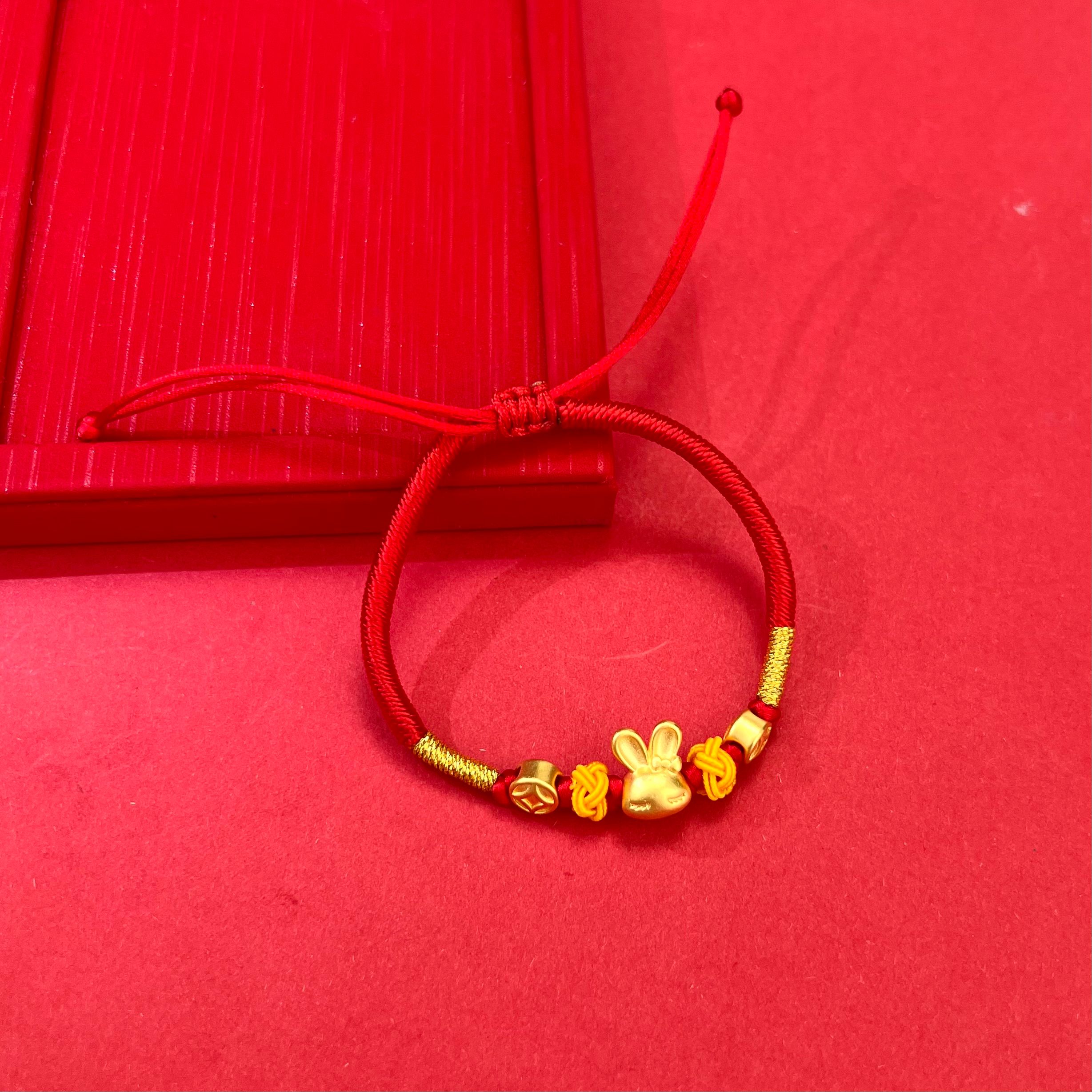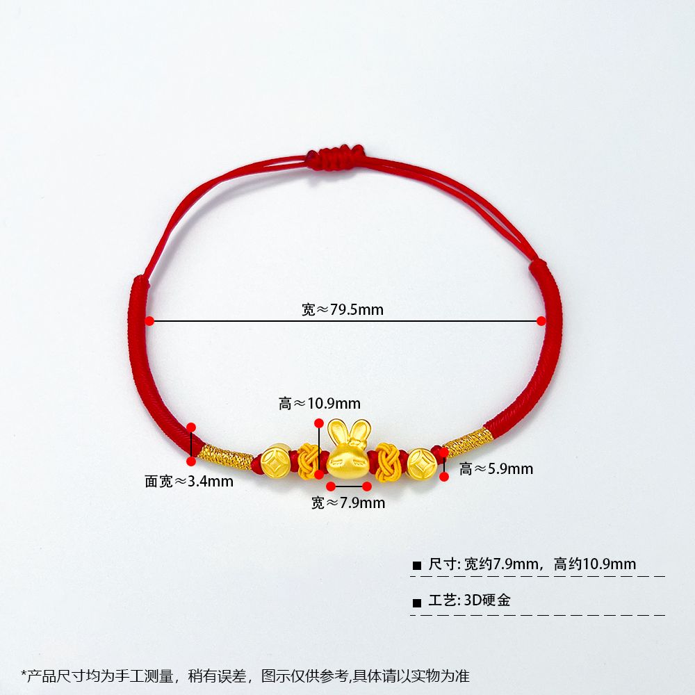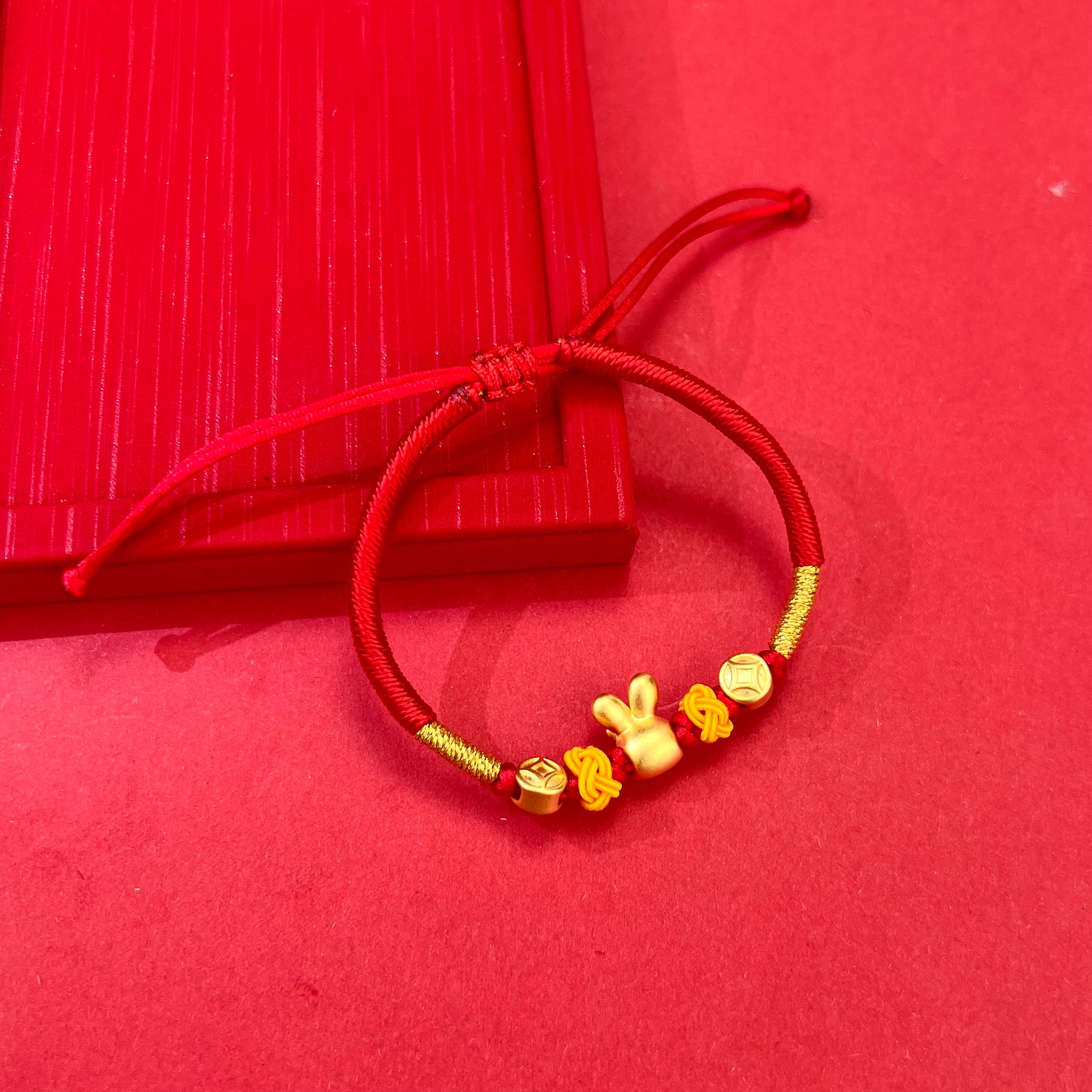 【限时7.5折】【定价黄金】足金 #儿童/宝宝 3D硬金兔年生肖有钱兔金币兔子红绳调节米菲兔成品手串(宝宝、大人都适戴)(AA3DSC00151-2)(预售产品下单后不退款不退货不换货不补差价)