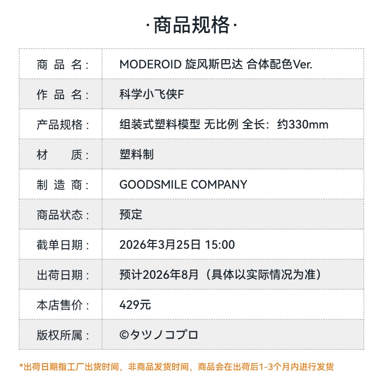 【GSC预售定金】MODEROID 旋风斯巴达 合体配色Ver. 科学小飞侠F