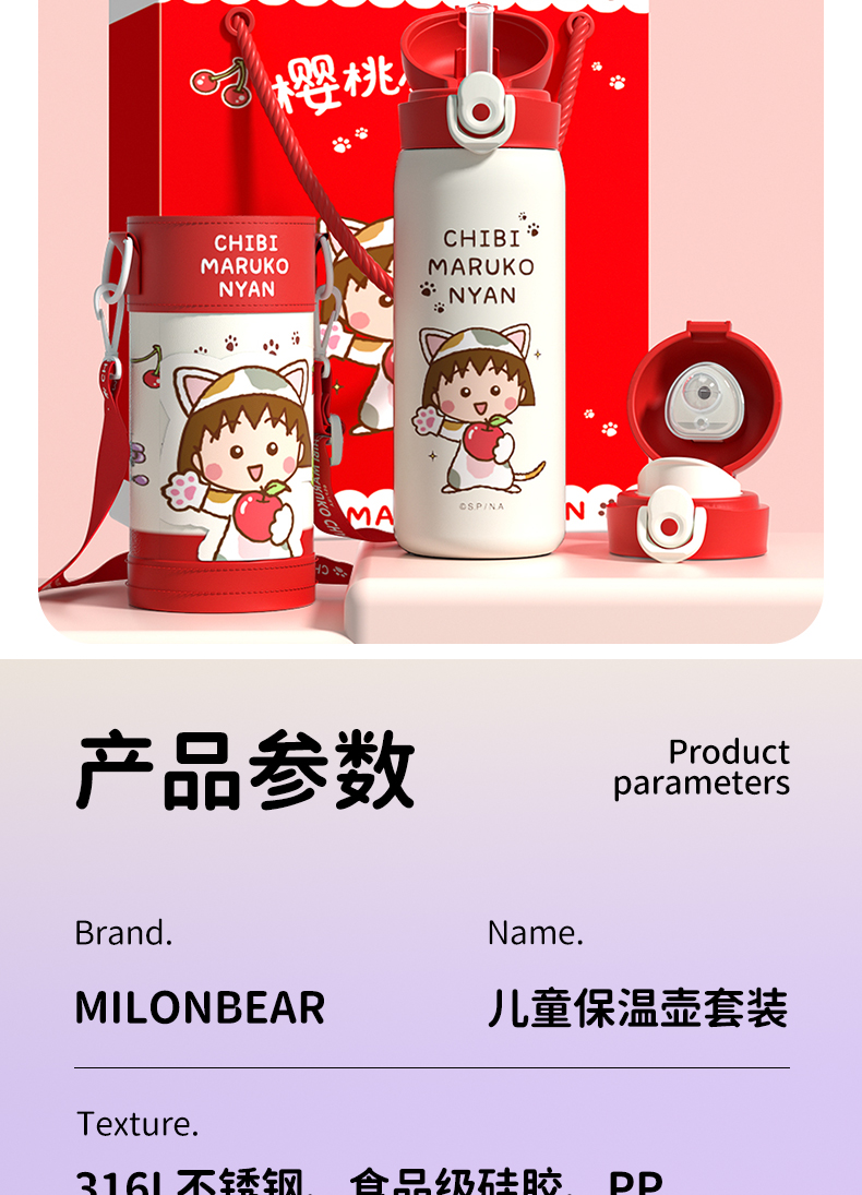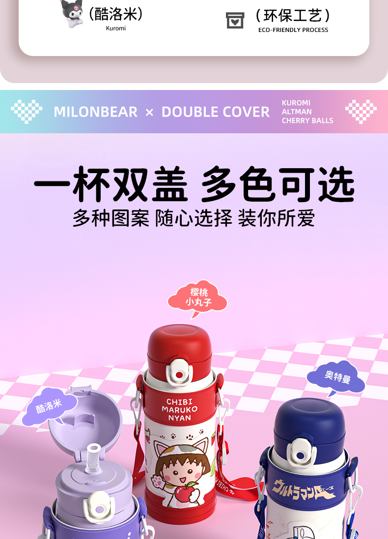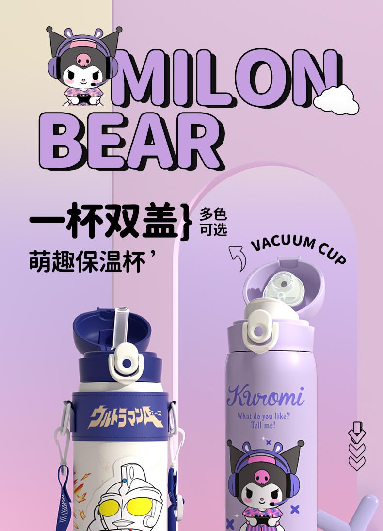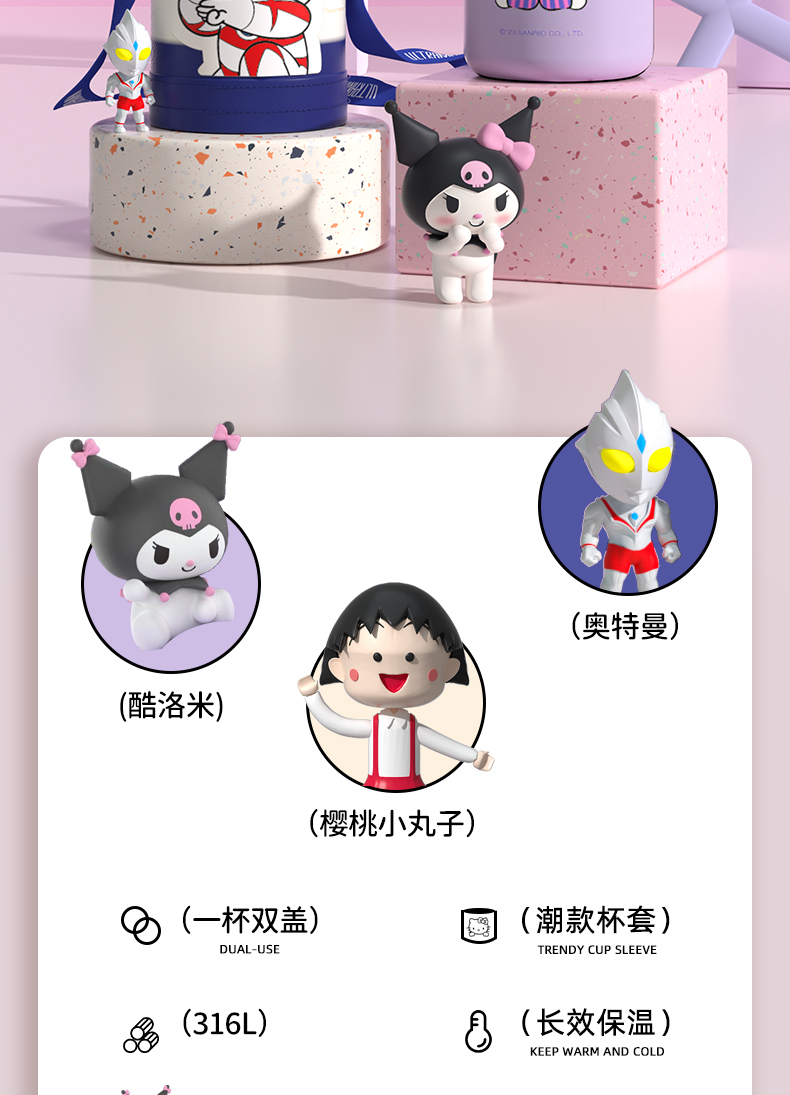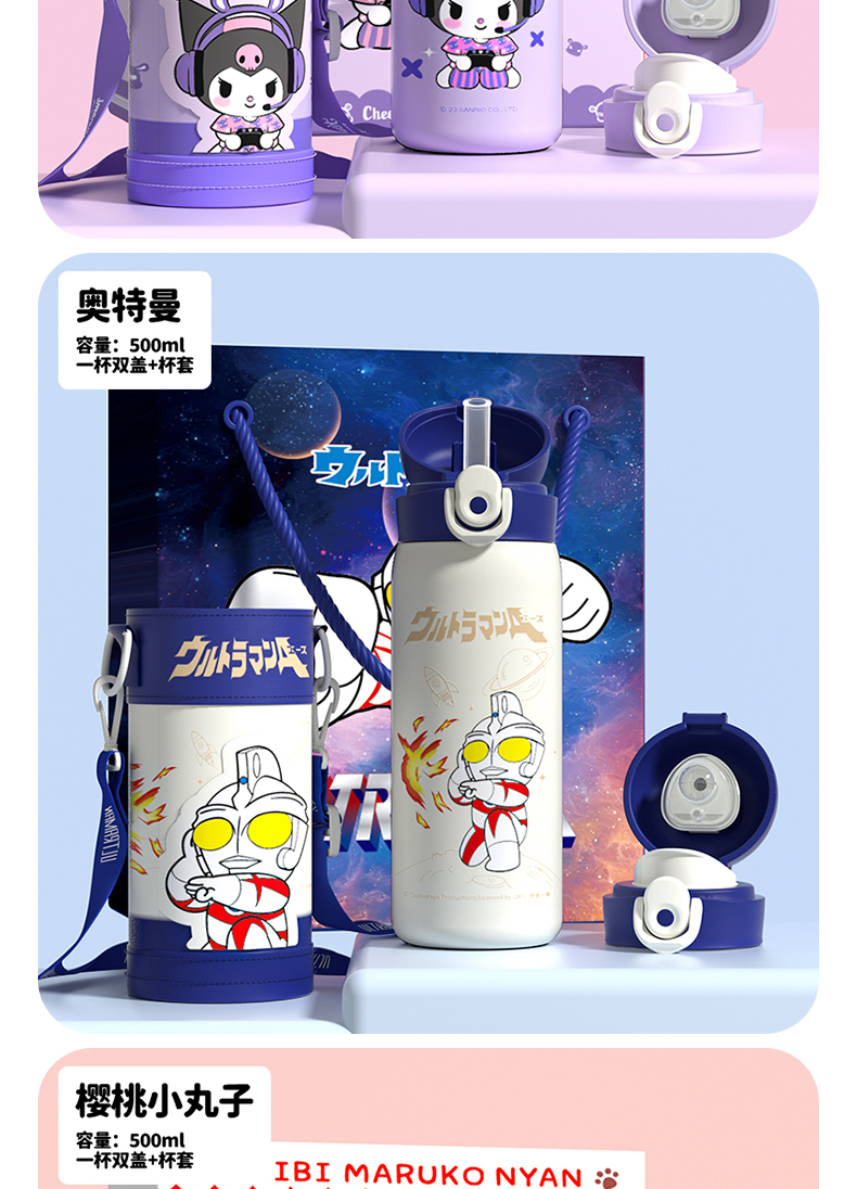 米仑熊奥特曼樱桃小丸子库洛米新款双盖保温杯礼盒ZJ