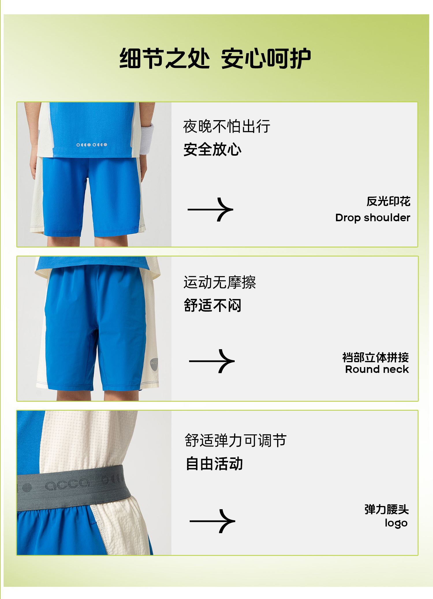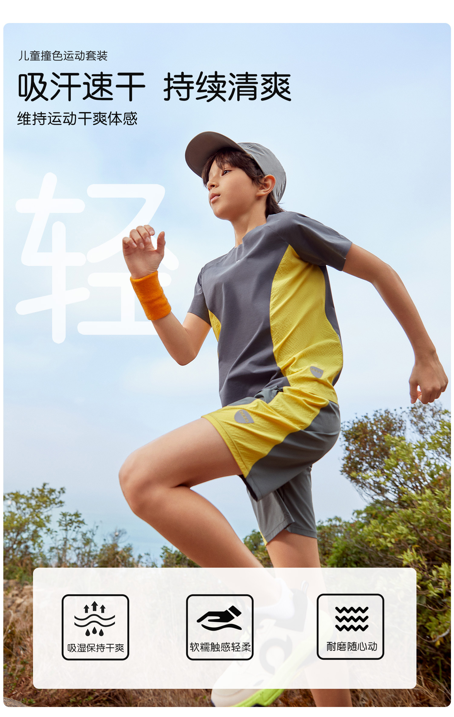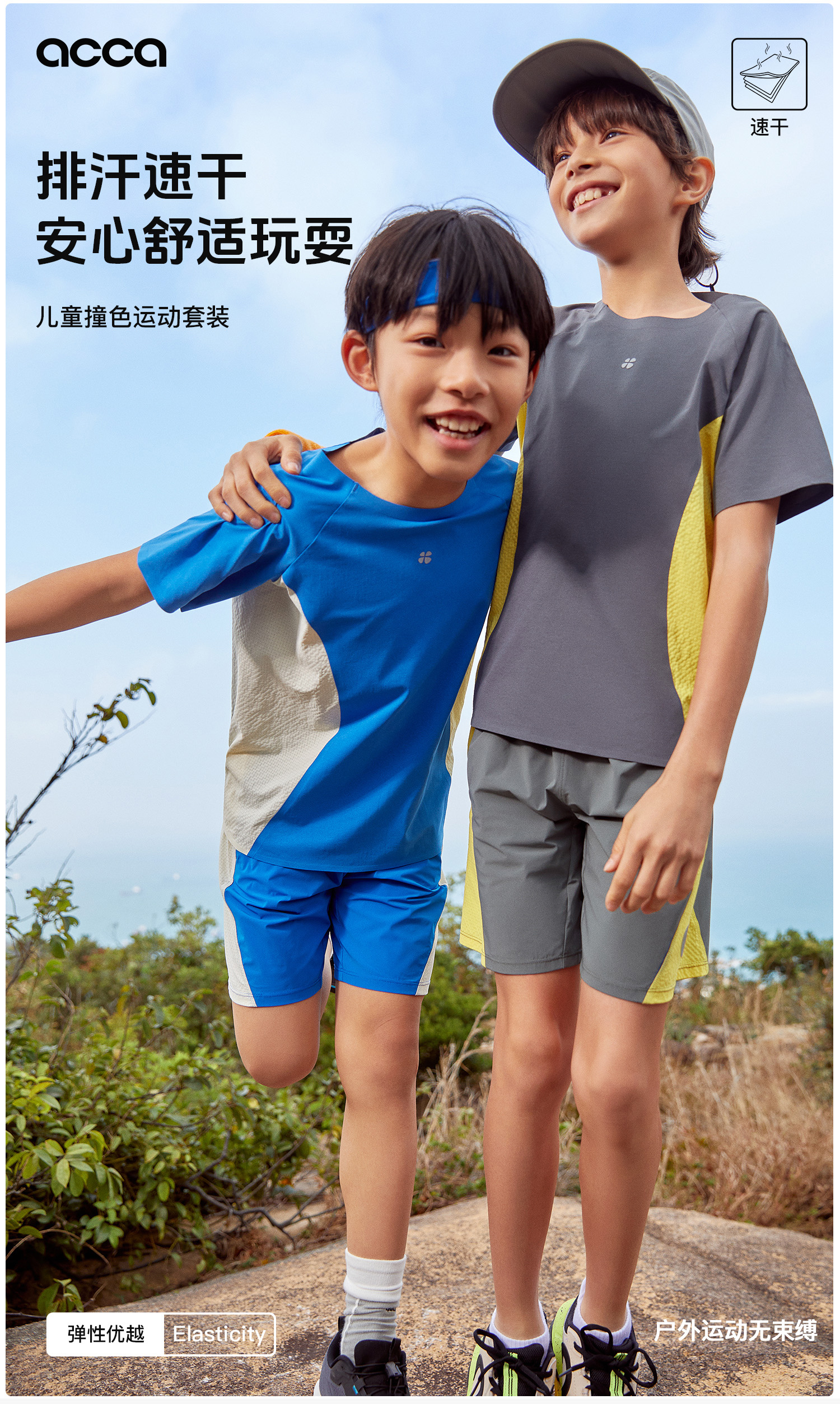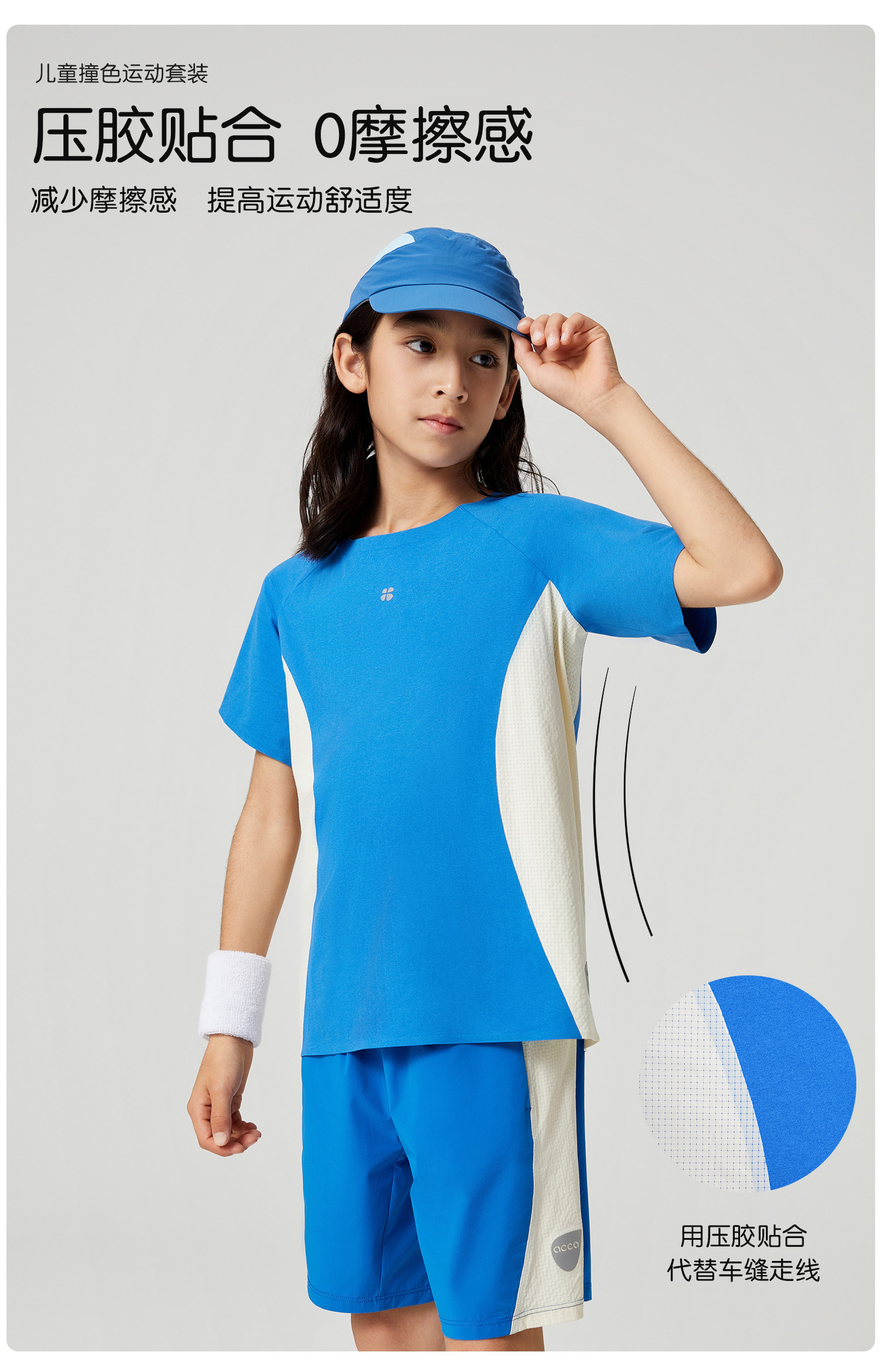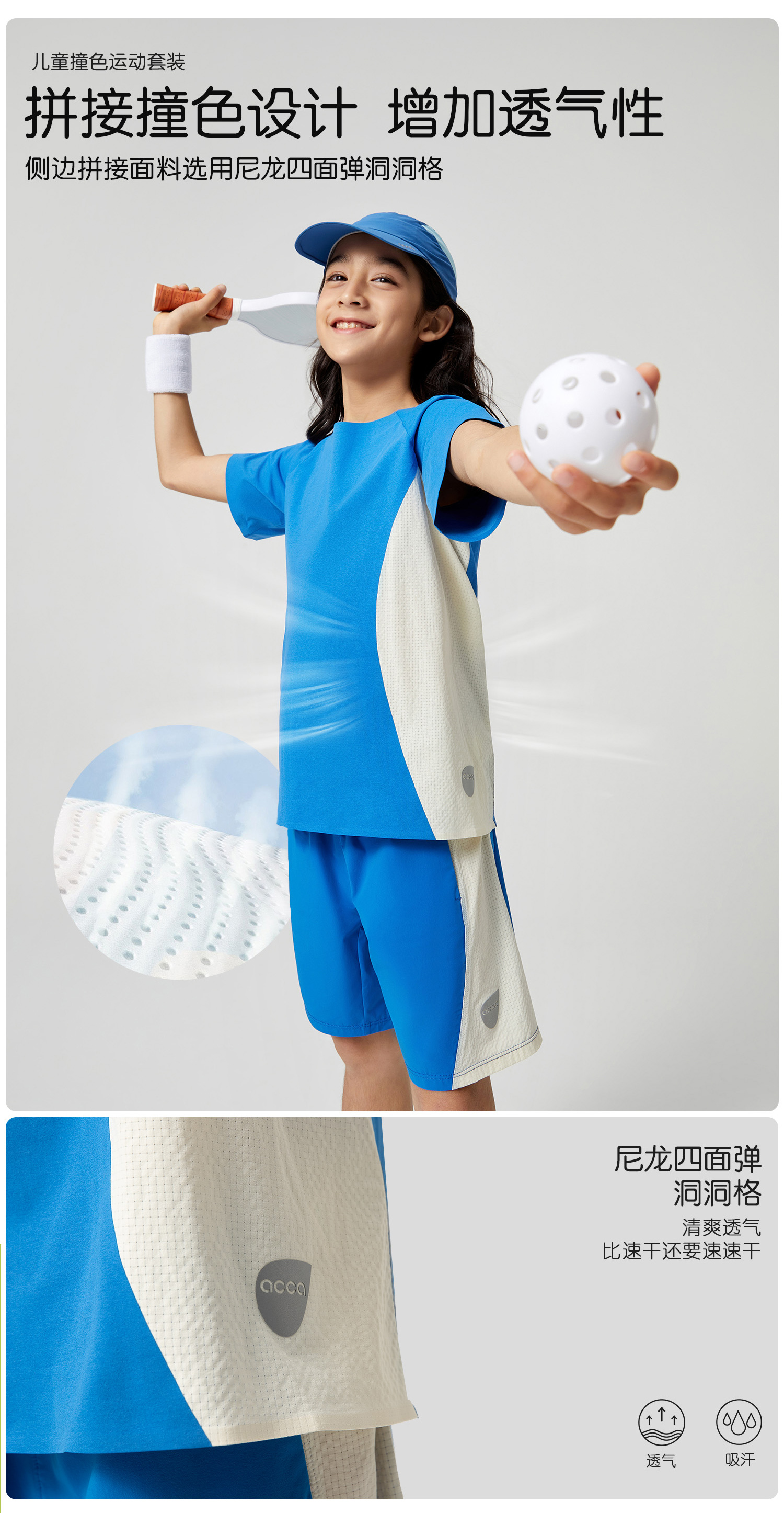 acca儿童撞色运动男女2024夏季新款速干透气全压胶吸湿排汗