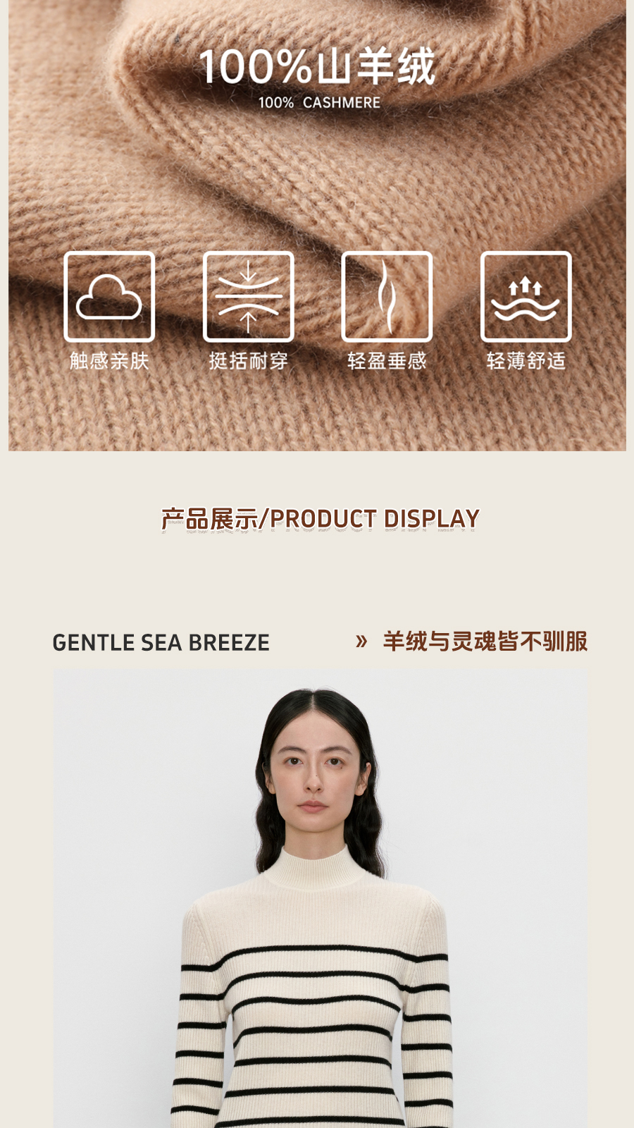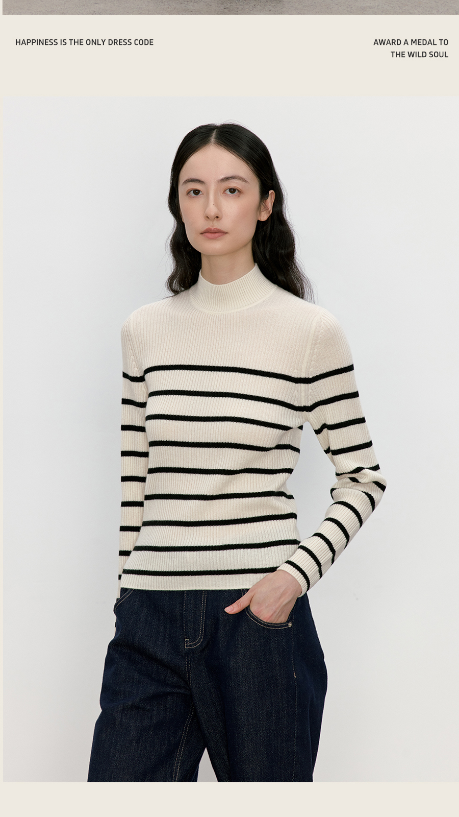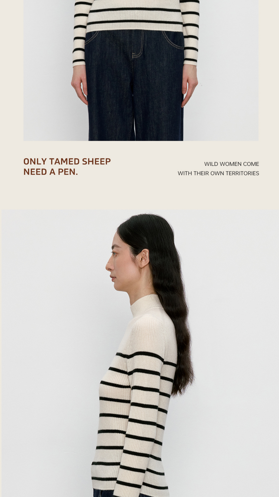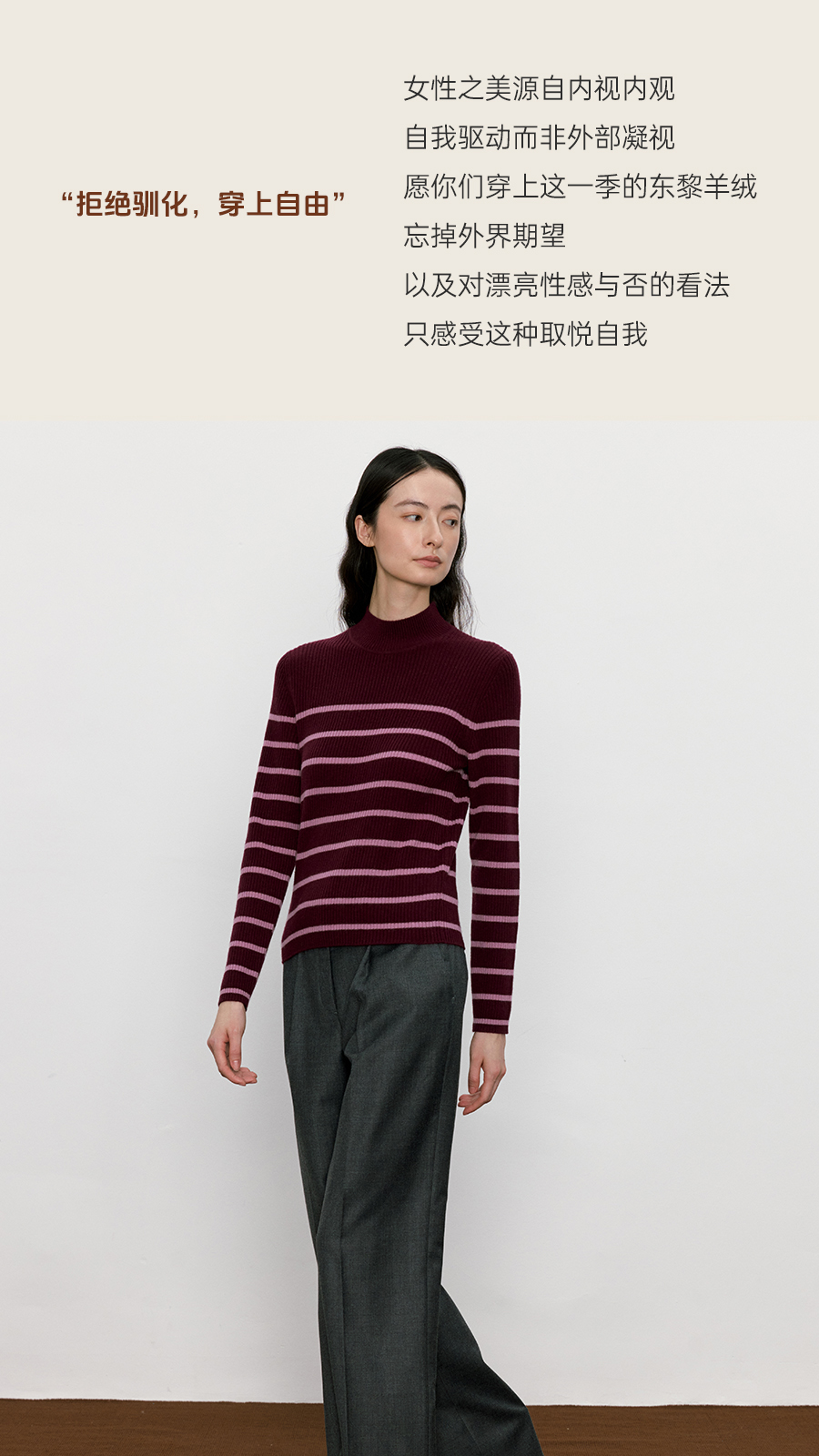 东黎 • 我不被驯化 山羊绒女士秋季半高领打道套衫 5359