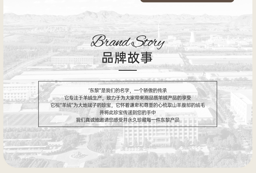 东黎羊绒是赤峰东荣集团自主品牌,自有牧场/羊绒制品全产业链优势,实现了羊绒从“牧场”到“商场”的华丽转变。