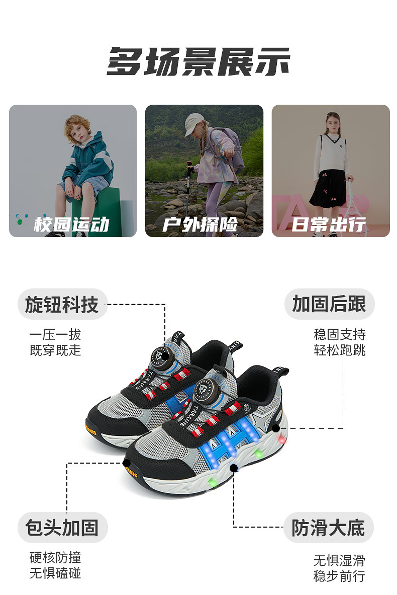 泰兰尼斯儿童运动鞋春季新款男童跑步鞋柔软舒适女童休闲鞋户外鞋T01X6A8604
