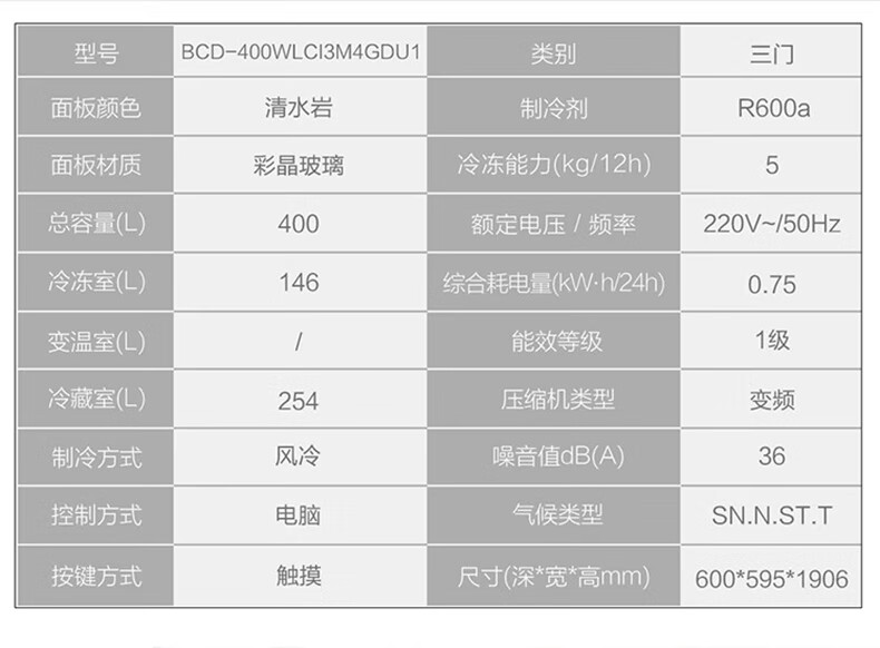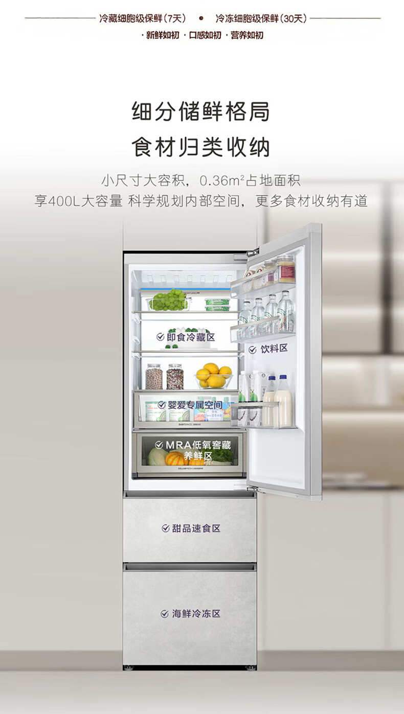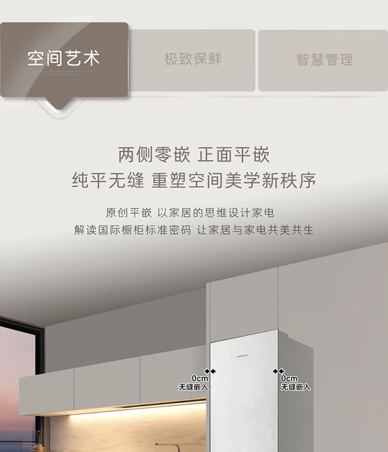卡萨帝(Casarte)_原石冰箱400升_60CM超薄平嵌入式三开门冰箱_拼装组合_风冷无霜_一级变频节能致境_双系统_BCD-400WLCI3M4GDU1