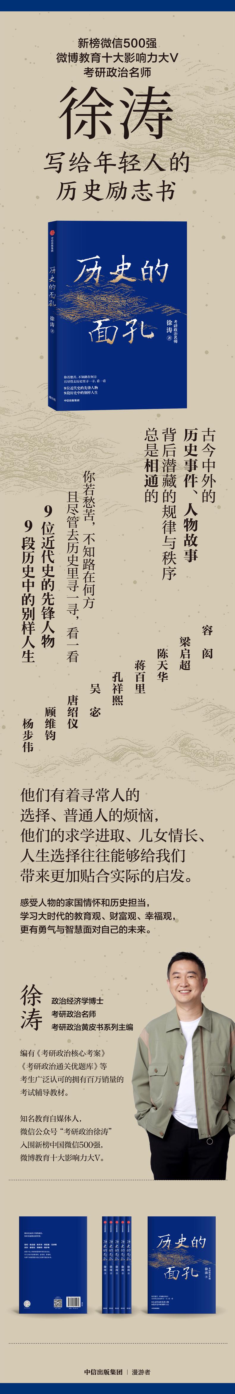 中国近代历史是一段苦难史,也是一段中国人民不断探索的历史。“求新求变”贯穿着整个时空,这里面涌现了很多思想、很多方案、很多人生选择。在我们经历的历史通识教育中,给与浓墨重彩描写的都是一线历史大咖,其实还有很多重要人物,他们在历史发展进程中发挥了重要作用。更关键的是,他们有着寻常人的选择,普通人的烦恼,他们的求学进取、儿女情长、人生选择往往能够给我们带来更加贴合实际的启发。考研政治名师徐涛选择了9个近代历史中的代表人物,他们曾是历史新浪潮中入海的一滴滴水,他们也曾在教科书中被简化成零碎的知识点,在《历史的面孔》中,这些人物的面孔逐渐变得清晰。现代社会的学习和工作环境,要求我们有强大的决策能力和处理复杂事务的能力。没有什么“做人的道理”能够比一段鲜活的人生经历更能带给人思考和启发的。一起琢磨人物成败背后的底层逻辑,体会历史中的别样人生,感受考点之外的温度。