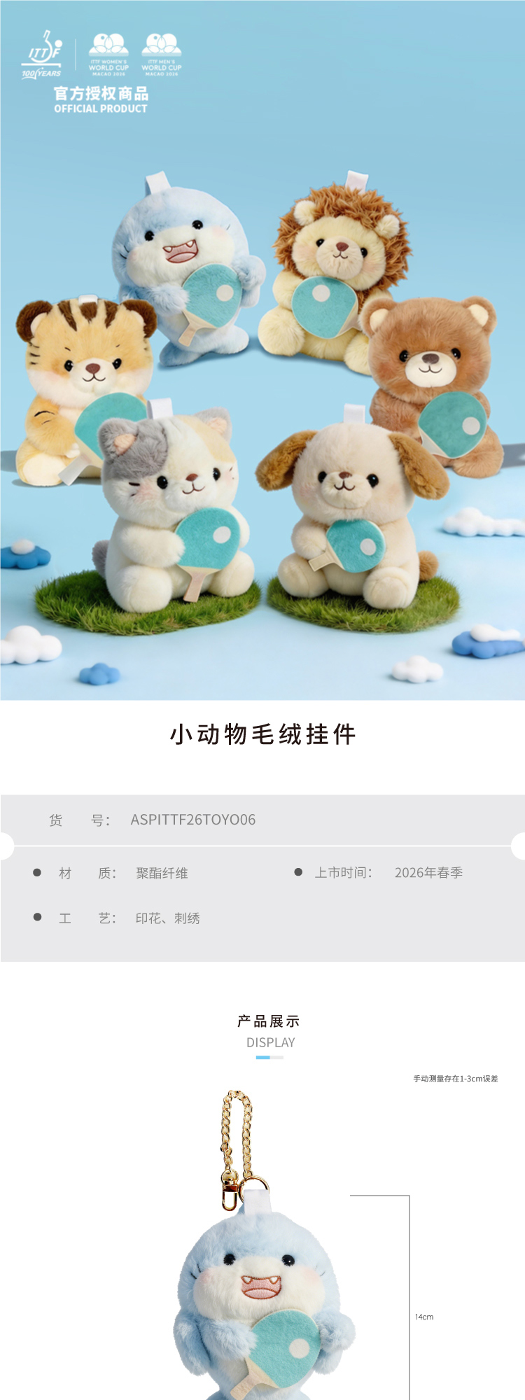 官方正版2026澳门世界杯 |卡通毛绒挂件可爱兵乓球球迷周边