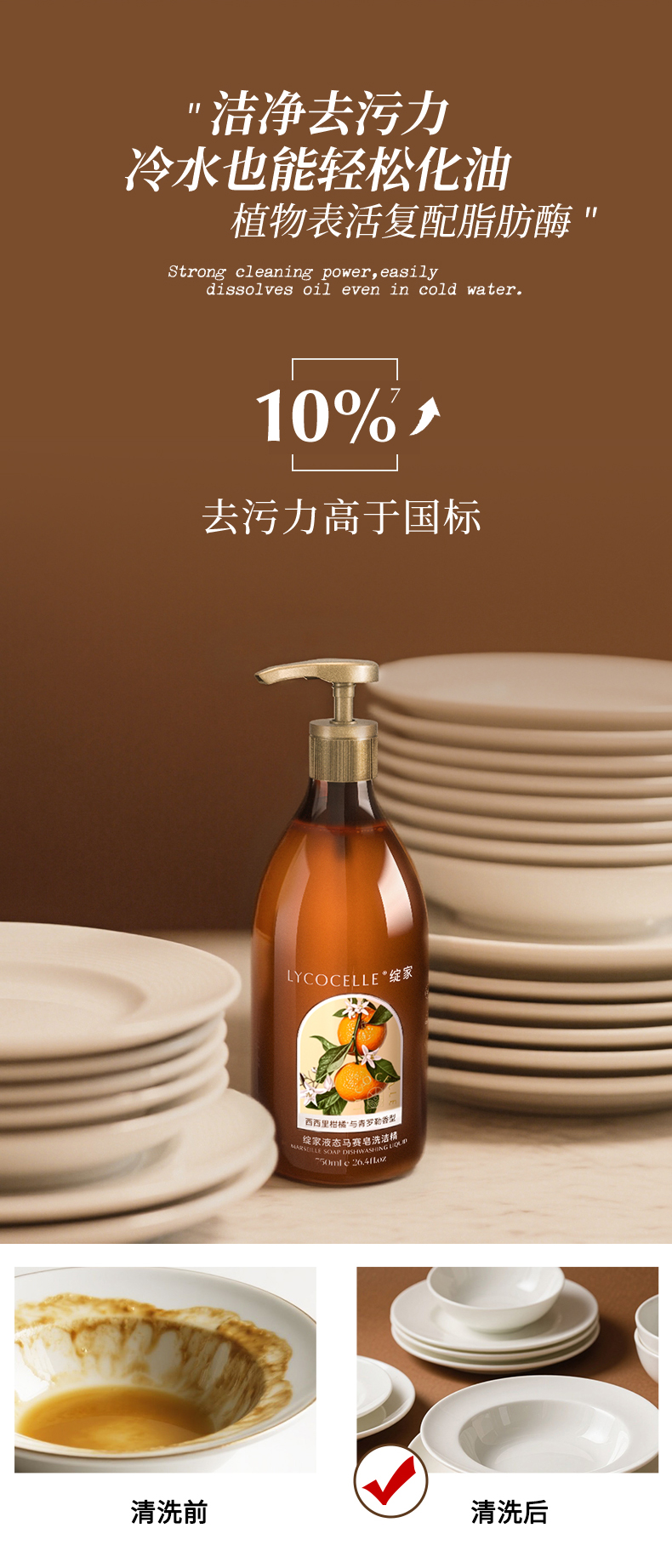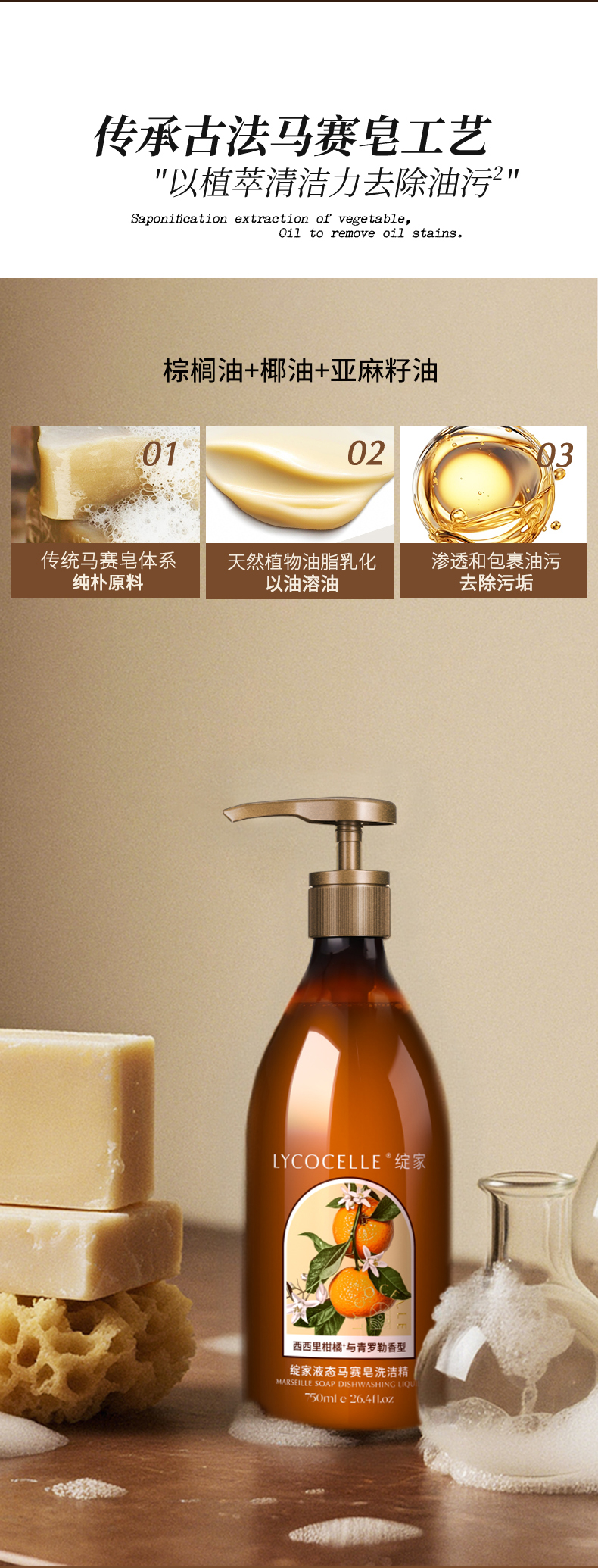 绽家液态马赛皂洗洁精750ml家用食品级洗碗液奶瓶果蔬清洁剂除菌去油污