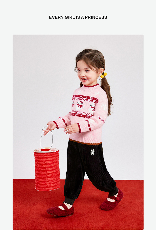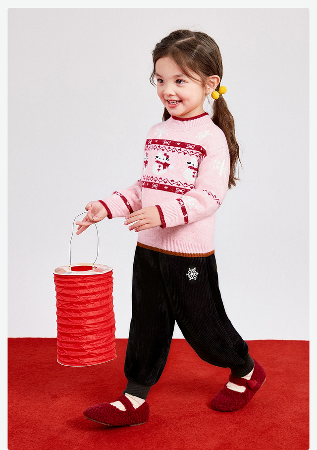 笛莎Deesha 童装女童裤子2025冬新款雪花装饰标束脚裤