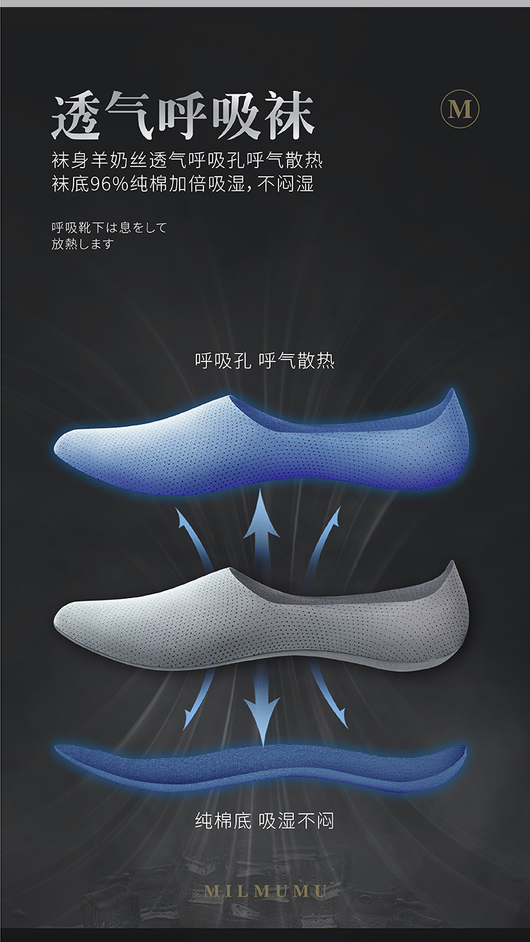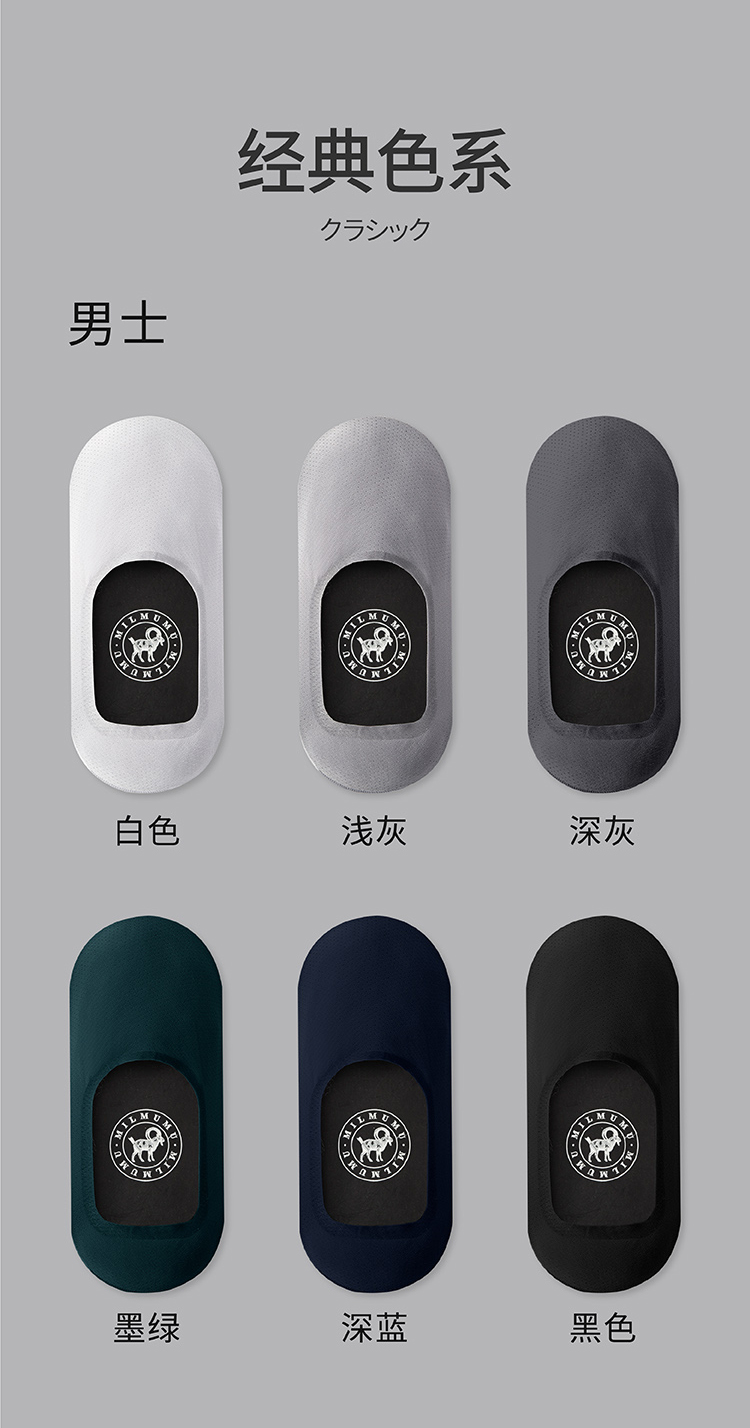 【透气干爽不闷汗 给“足”呼吸!】日本MILMUMU羊奶丝呼吸袜船袜 隐形袜 男女士夏天短袜 5双装盒装