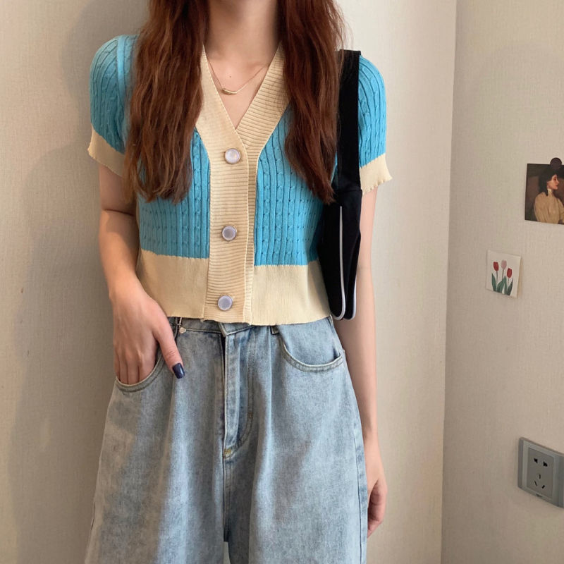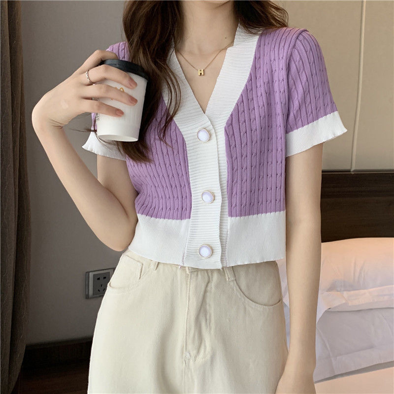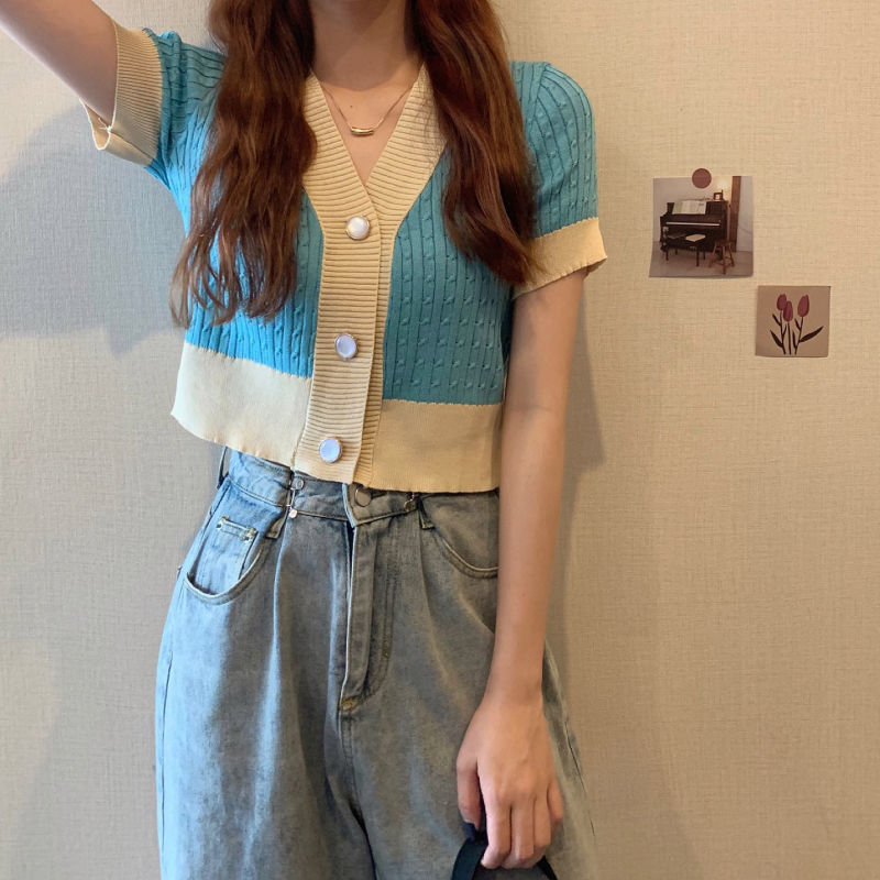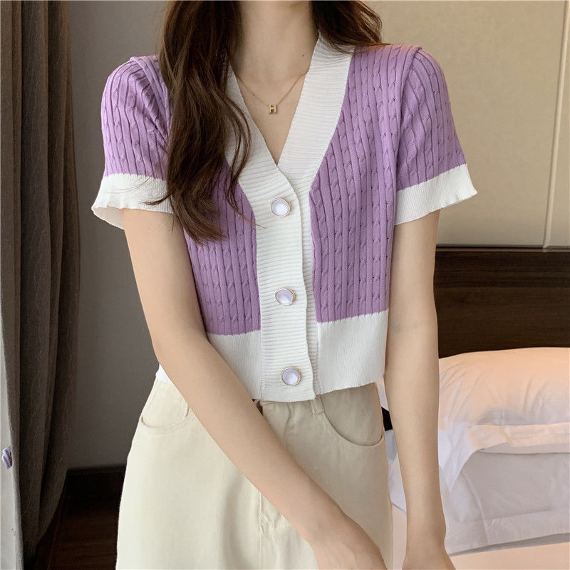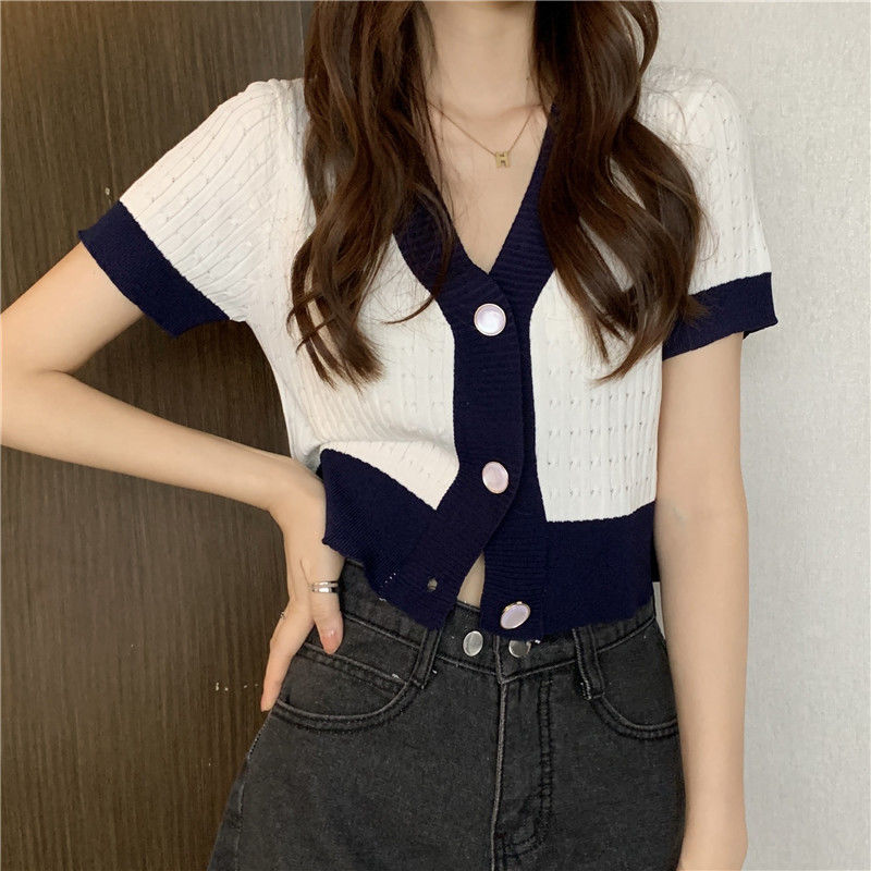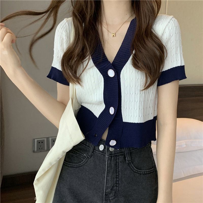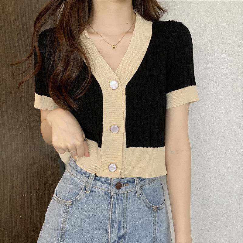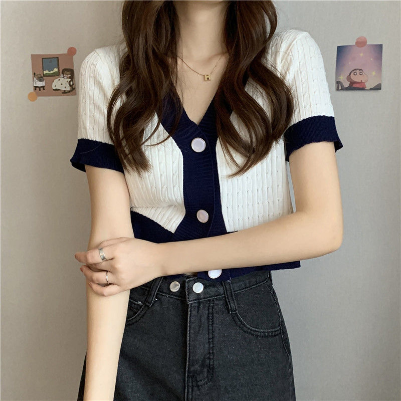 夏季2021年新款韩版气质百搭V领针织开衫温柔风上衣女爆款毛衣潮七夕情人节