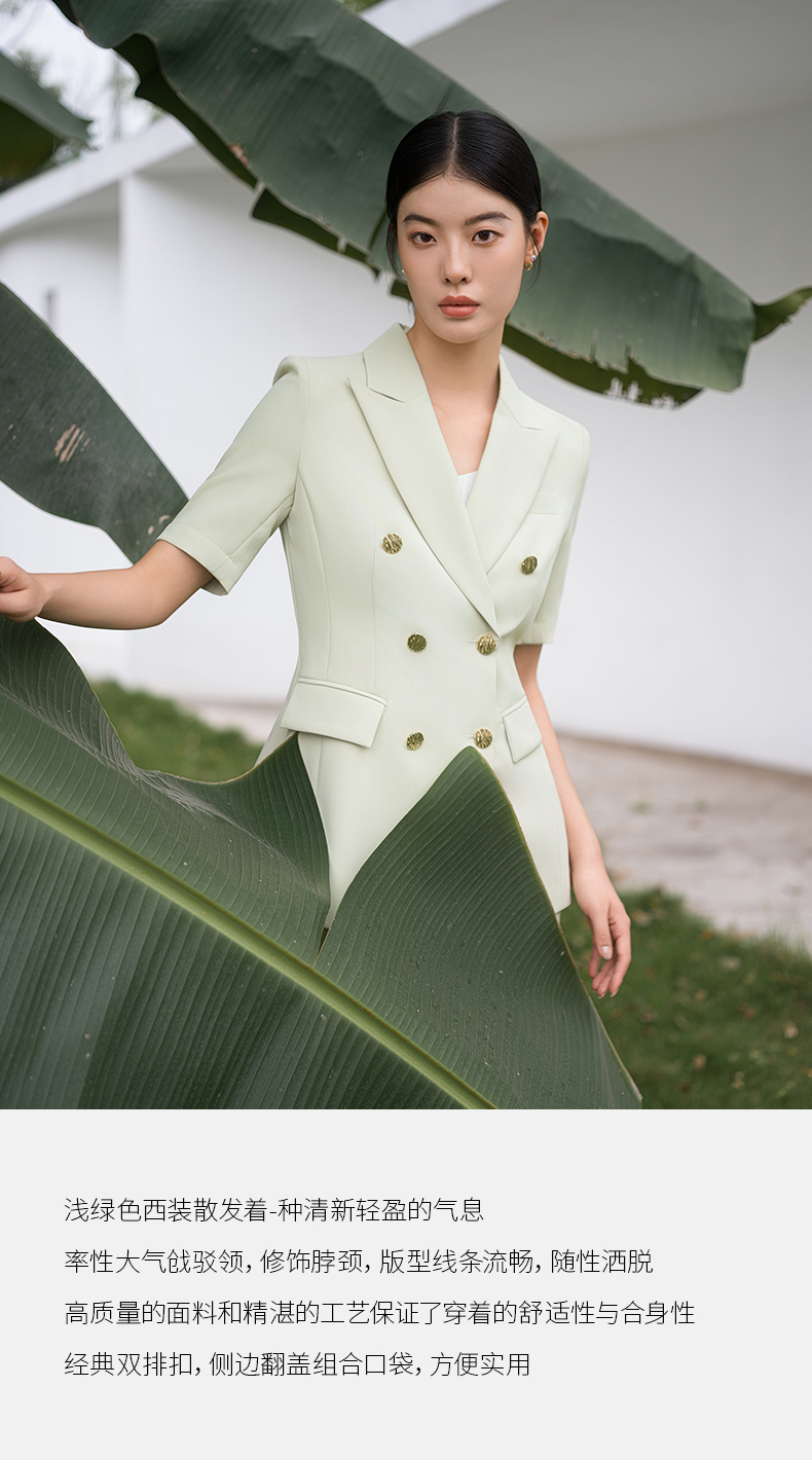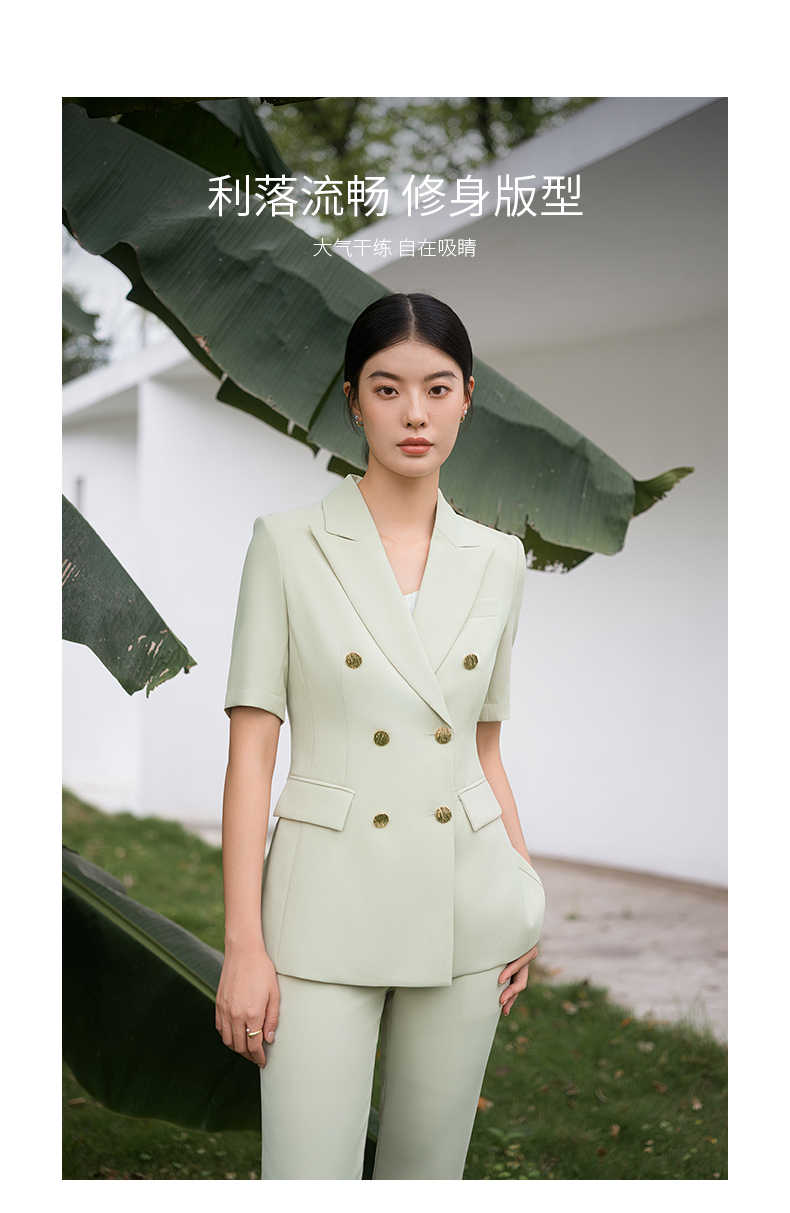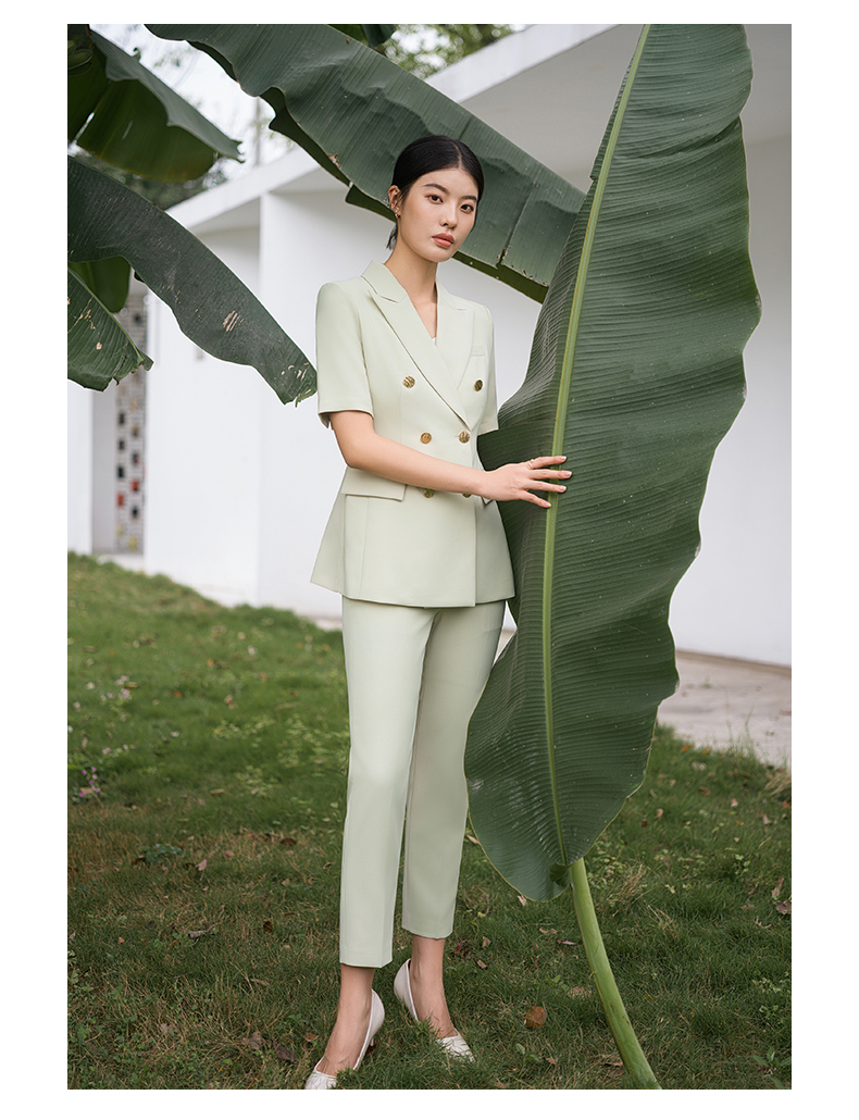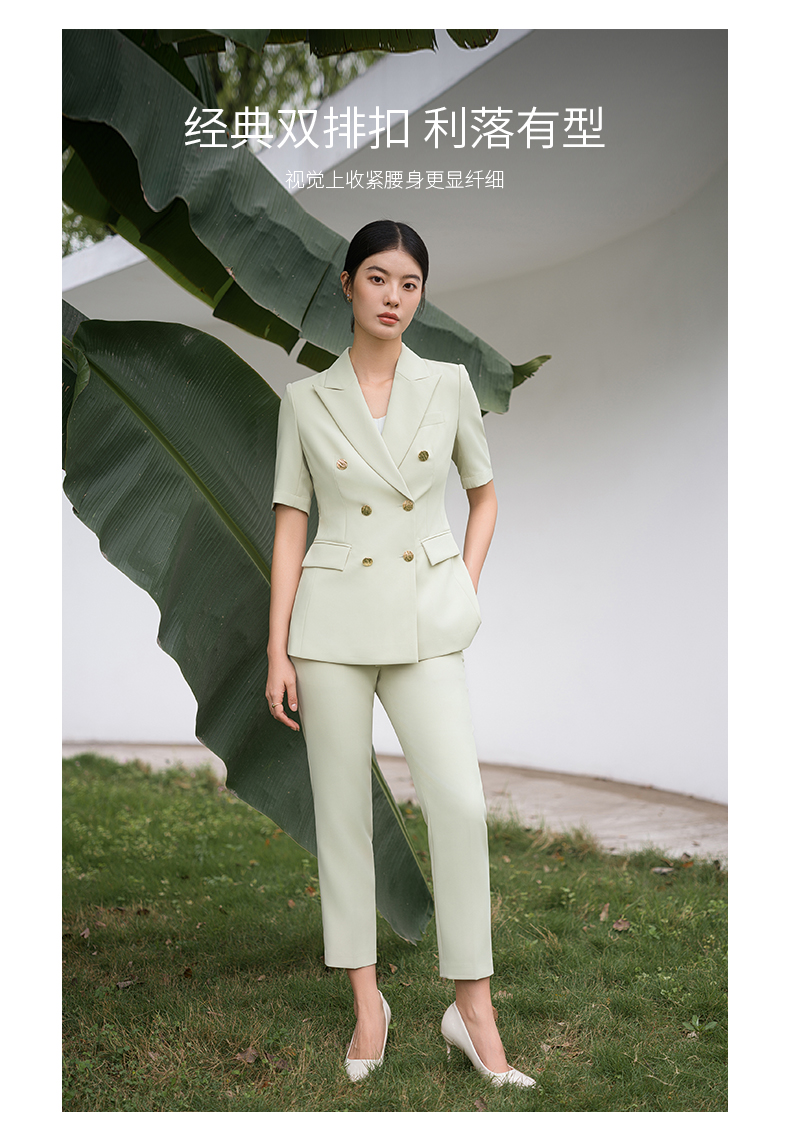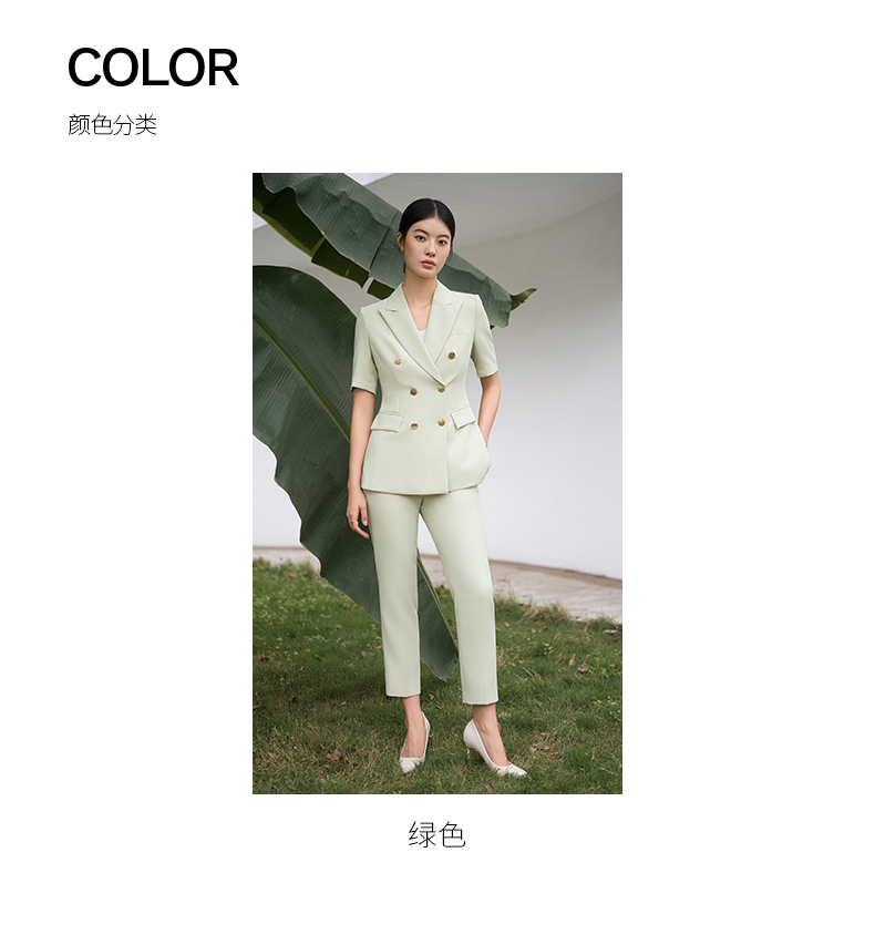IWY/绿色西装套装短袖西服外套气质设计高端职业正装夏季正式场合C13211+P13211