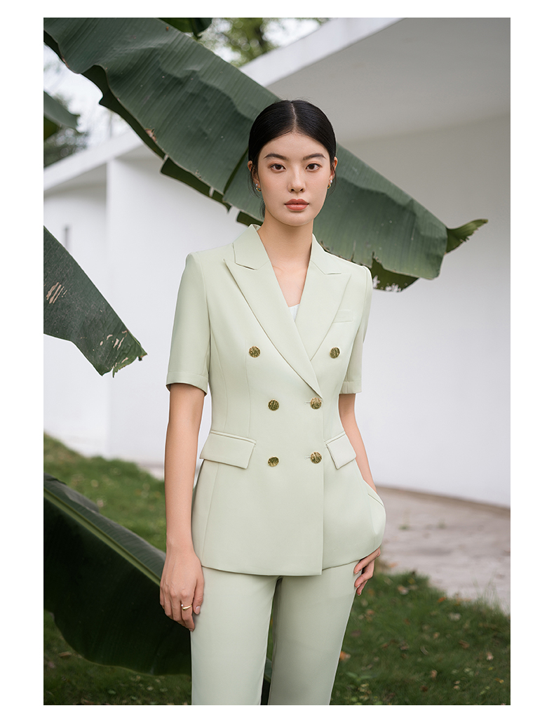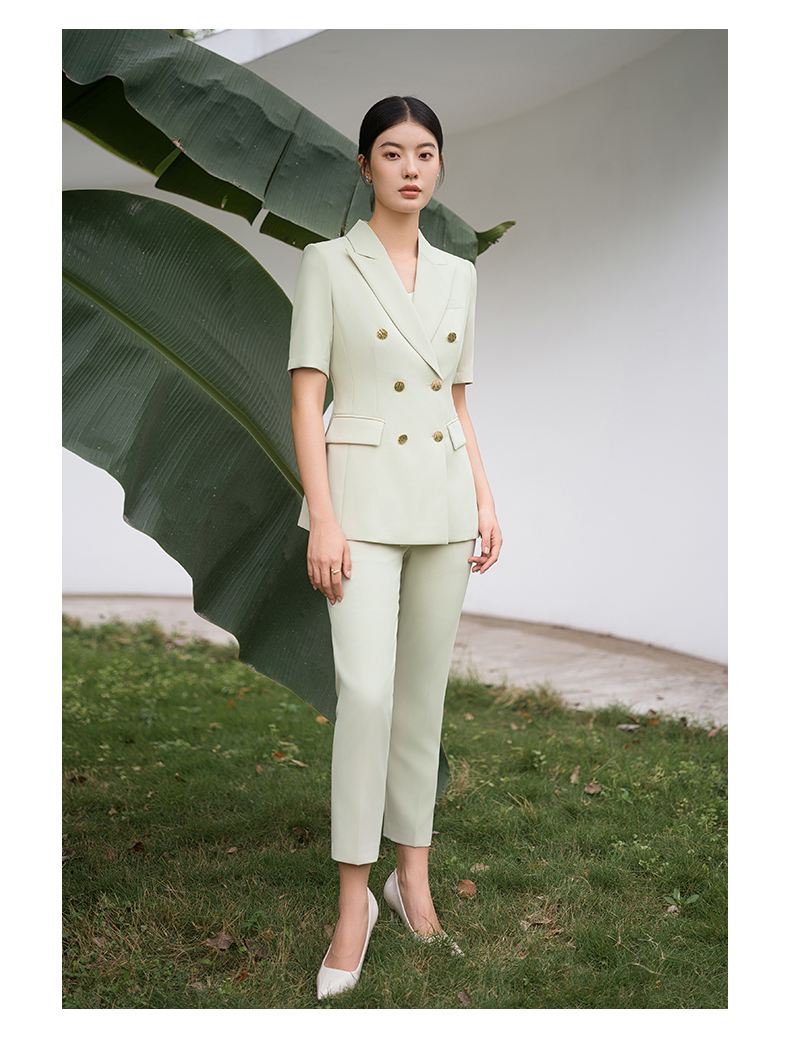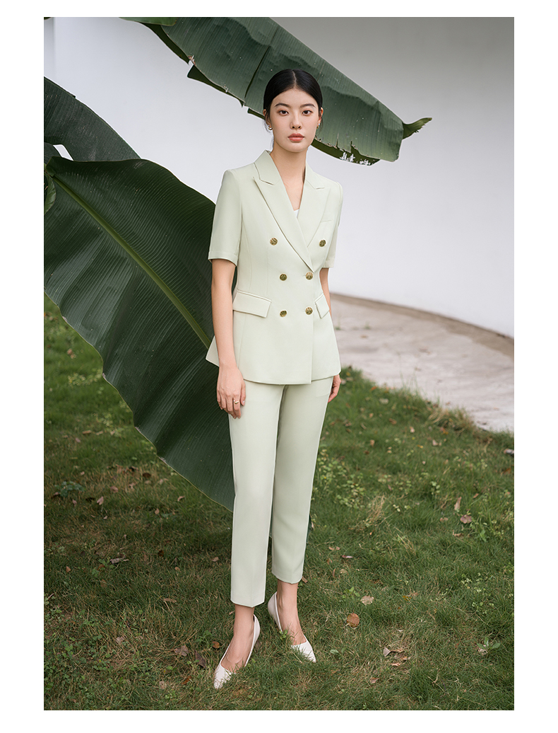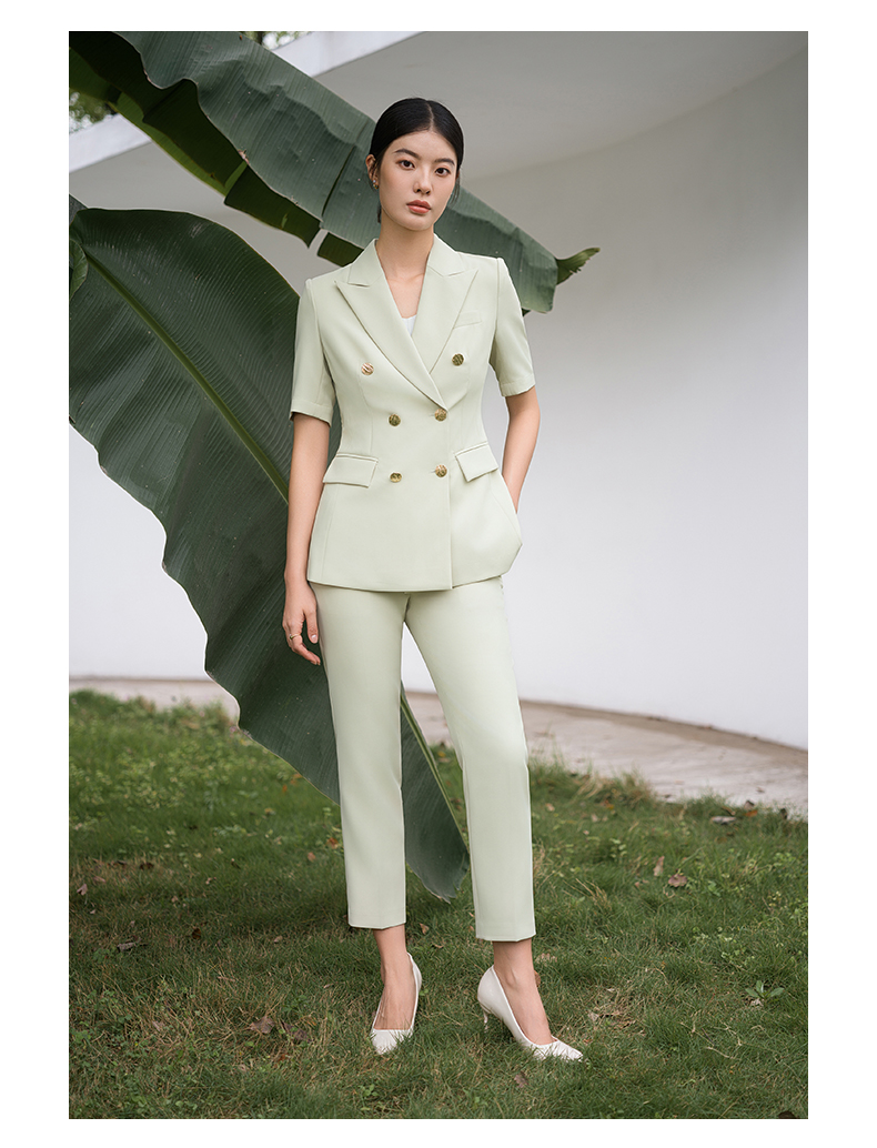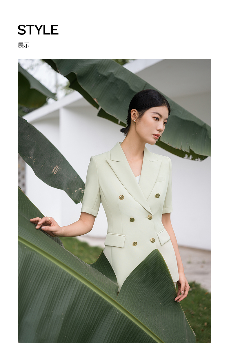 IWY/绿色西装套装短袖西服外套气质设计高端职业正装夏季正式场合C13211+P13211
