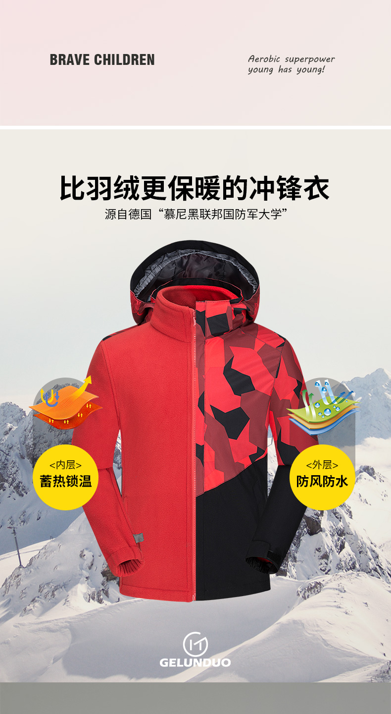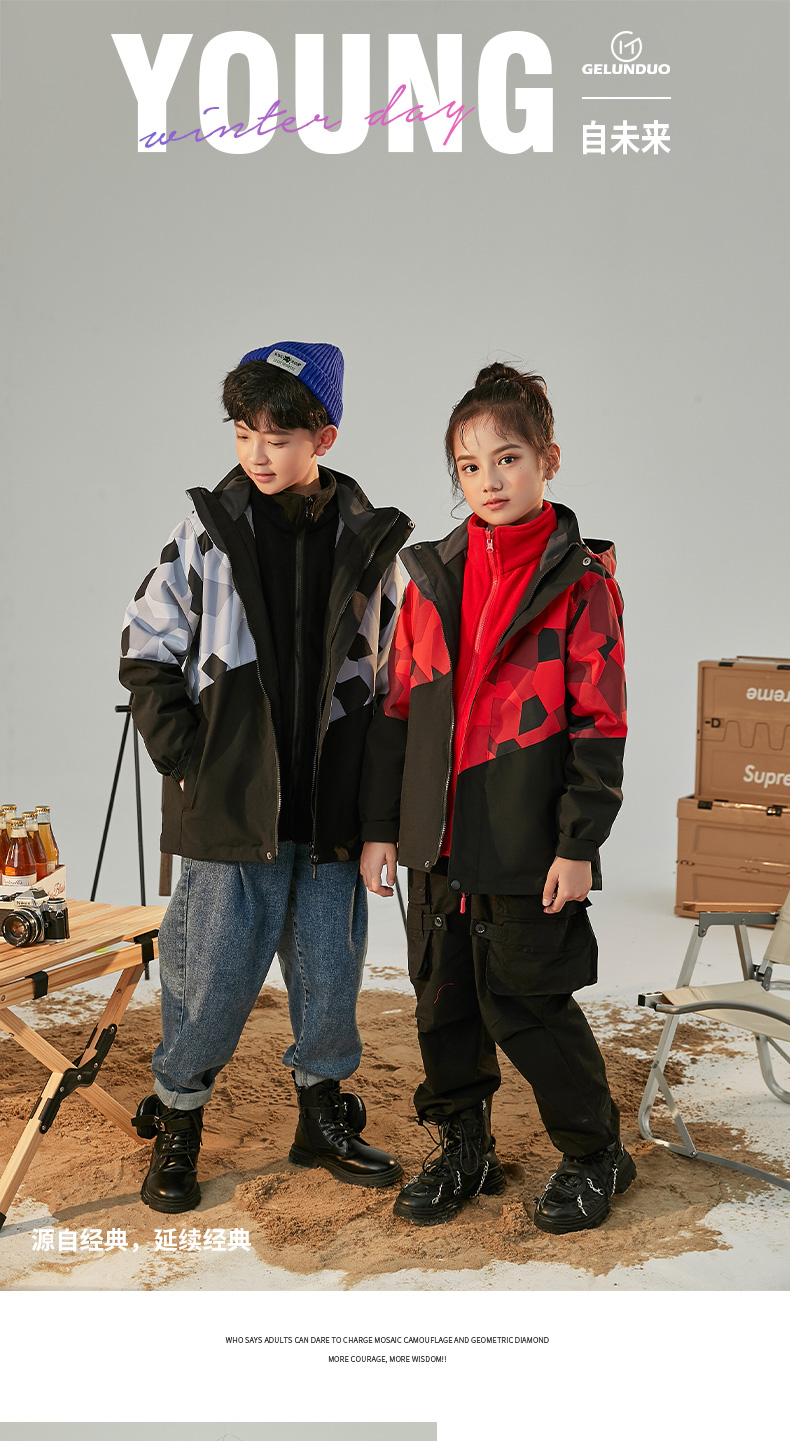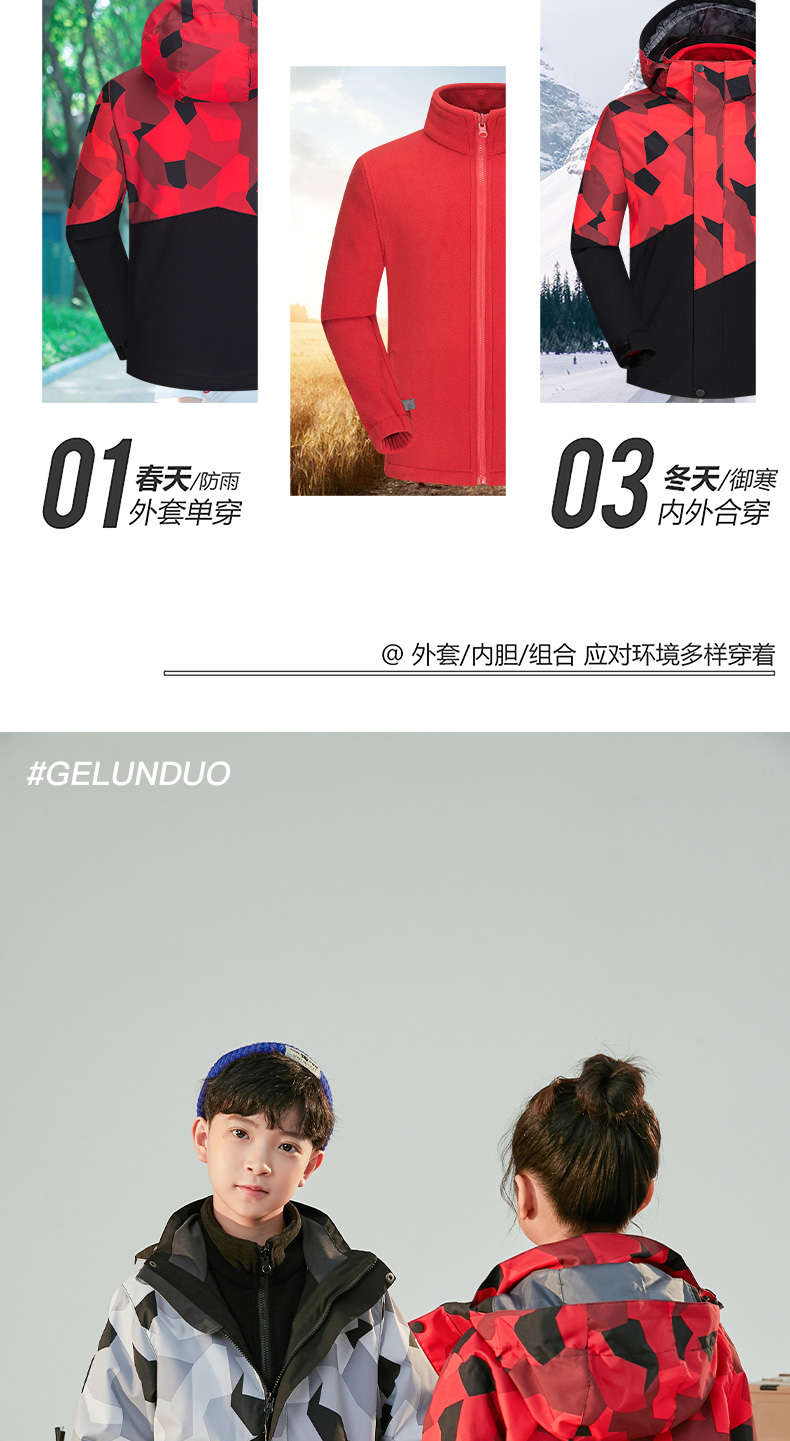 GELUNDUO歌伦多-“未来主义” 儿童迷彩三合一冲锋夹克 2811