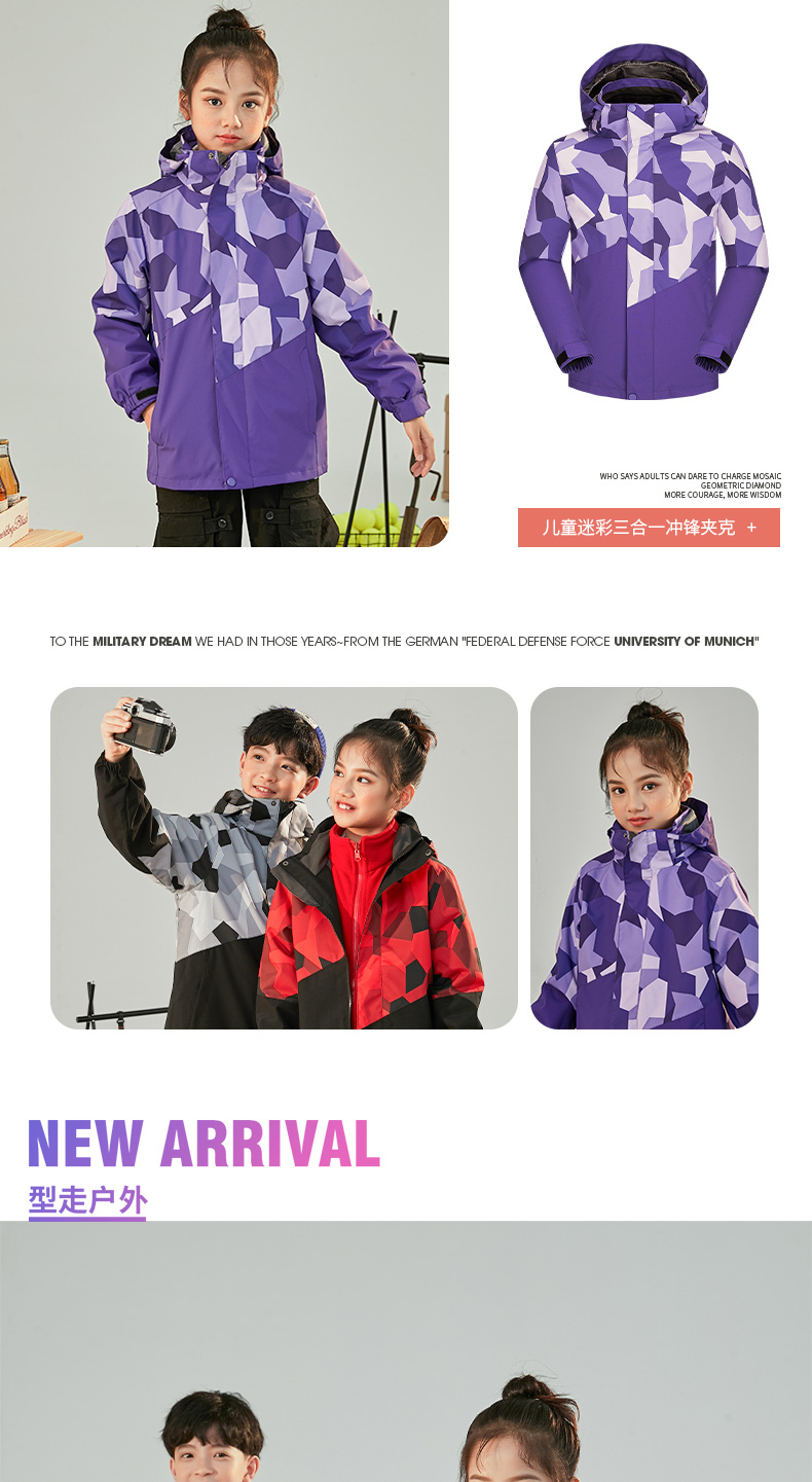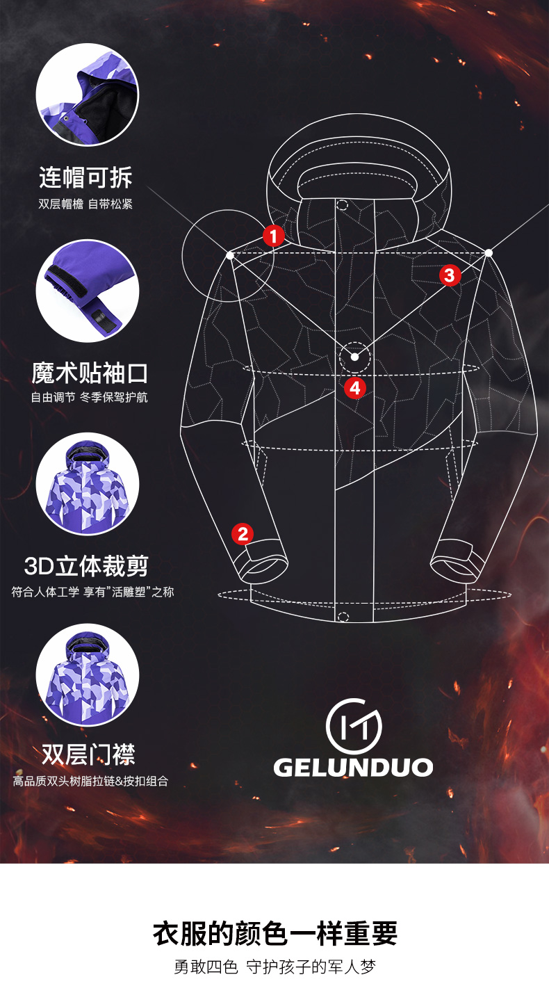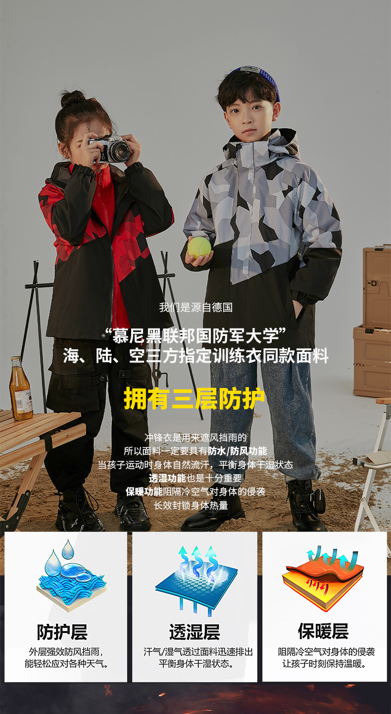 GELUNDUO歌伦多-“未来主义” 儿童迷彩三合一冲锋夹克 2811