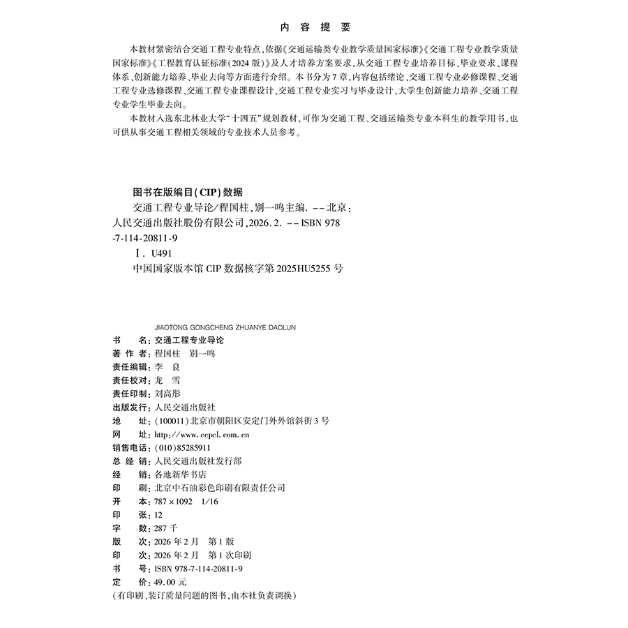 书名:交通工程专业导论