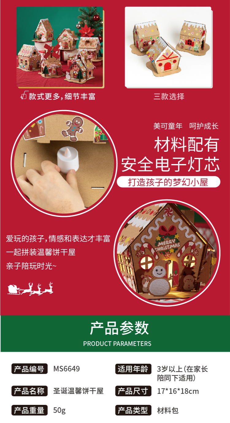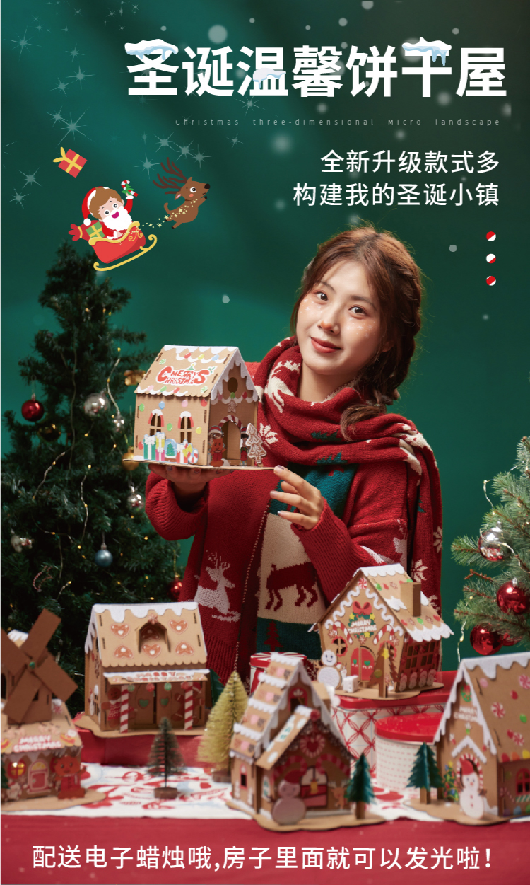 圣诞节礼物手工diy饼干屋幼儿园儿童创意制作材料包圣诞树装饰品